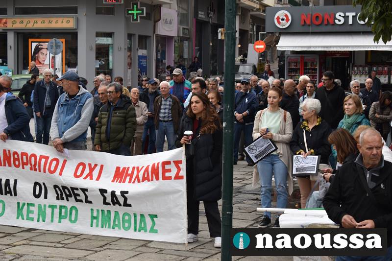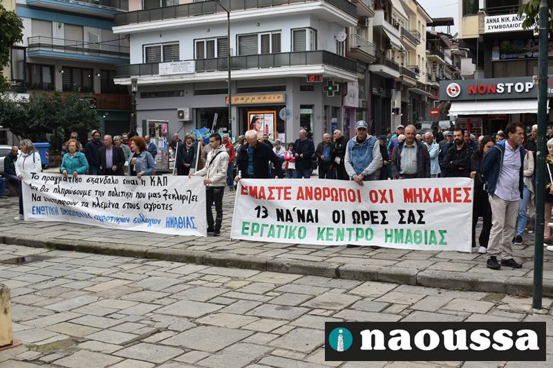 Η απεργιακή συγκέντρωση ξεκίνησε στις 10:30 στην κεντρική πλατεία της Νάουσας, με σύνθημα «Στα σκουπίδια το νομοσχέδιο για τη 13ωρη δουλειά – 7ωρο, 5ήμερο, 35ωρο με αυξήσεις στους μισθούς». Σωματεία, εργαζόμενοι και συνταξιούχοι ύψωσαν φωνή διαμαρτυρίας, καλώντας σε συνέχιση του αγώνα για σταθερό ωράριο, συλλογικές συμβάσεις και ουσιαστικές αυξήσεις.
