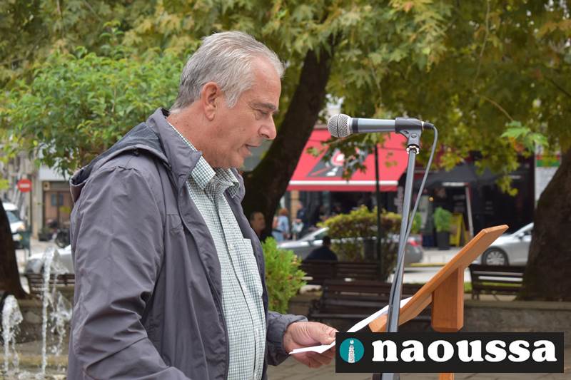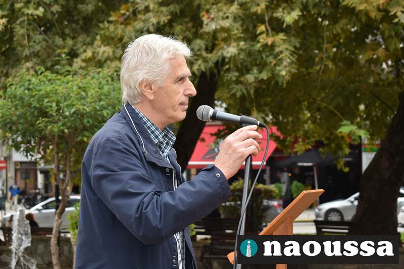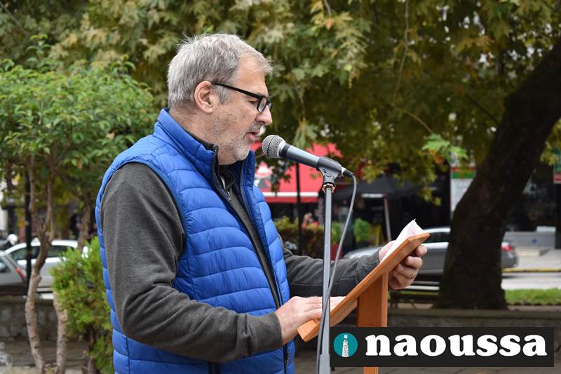 Την κεντρική ομιλία έκανε ο Δημήτρης Δίγκας, μέλος του Δ.Σ. του Εργατικού Κέντρου Ημαθίας και πρόεδρος του Συνδικάτου Τροφίμων – Ποτών Ημαθίας και Πέλλας.