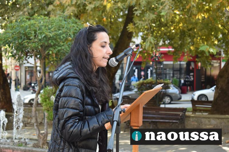Χαιρετισμό απηύθυνε η Ελισάνθη Κωστοπούλου, μέλος της προσωρινής διοίκησης του Σωματείου Επισιτισμού Τουρισμού Ημαθίας, ενώ την κεντρική ομιλία έκανε η Μαριάννα Παπαδοπούλου, πρόεδρος του Σωματείου Ιδιωτικών Υπαλλήλων Ημαθίας Πέλλας.