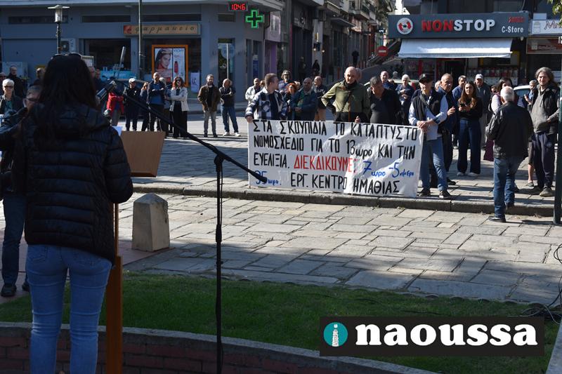 Απεργιακή συγκέντρωση πραγματοποιήθηκε το πρωί της Τρίτης στην κεντρική πλατεία της Νάουσας, με πρωτοβουλία του Εργατικού Κέντρου Ημαθίας «Γεώργιος Βούτυρας», στο πλαίσιο της πανελλαδικής κινητοποίησης ενάντια στο νέο εργασιακό νομοσχέδιο.