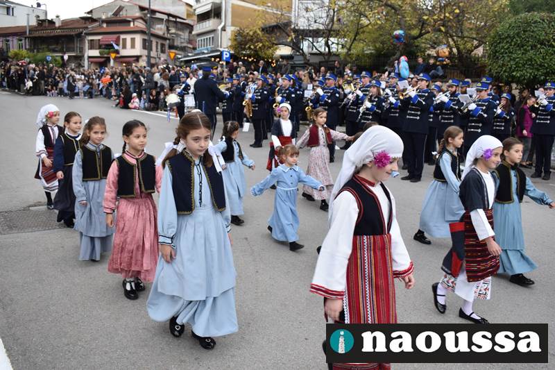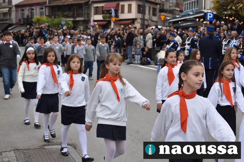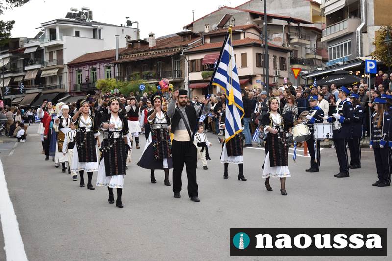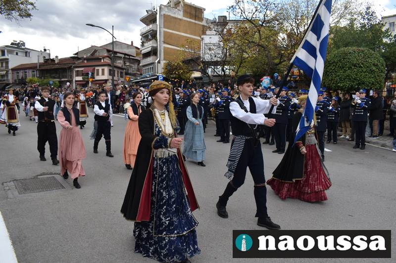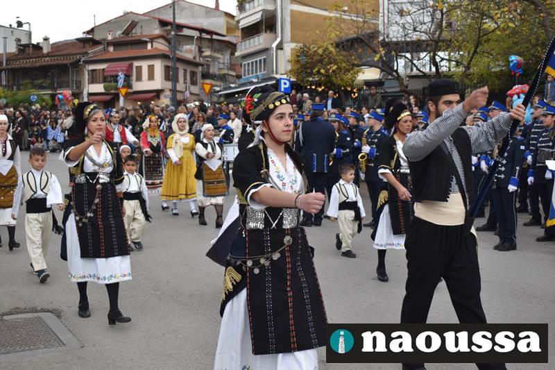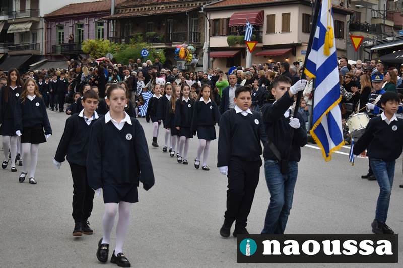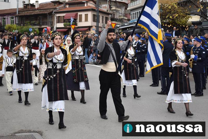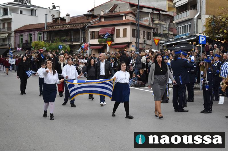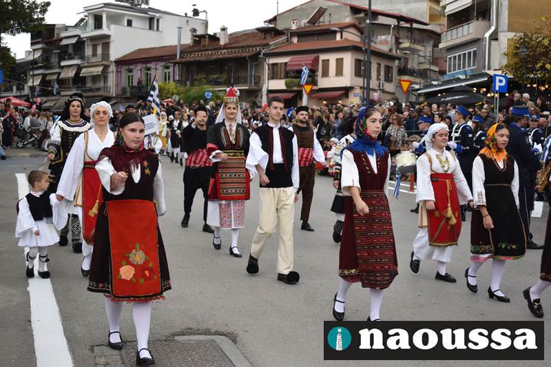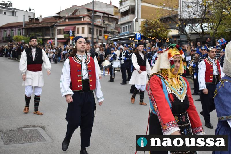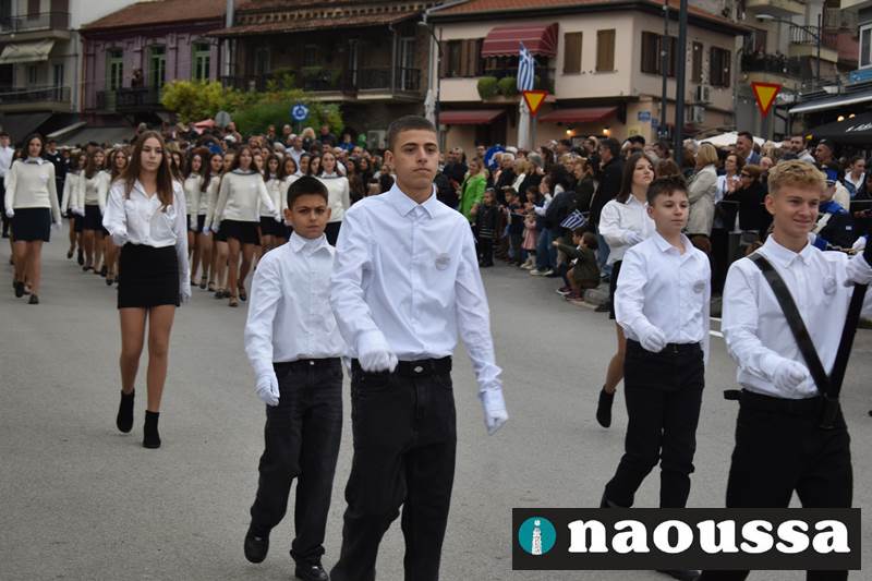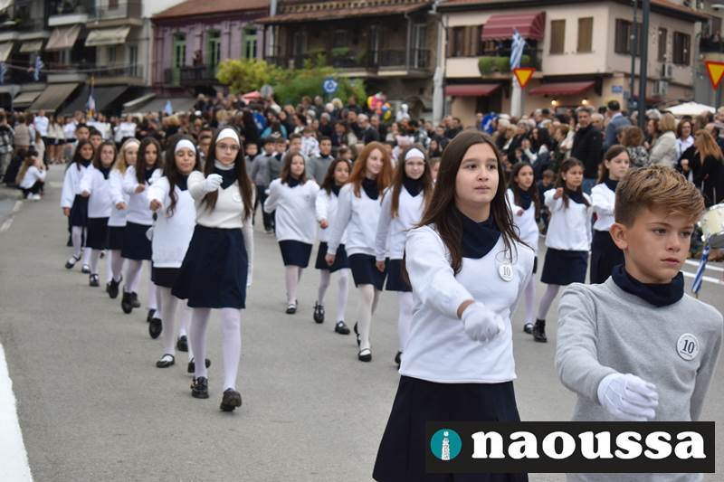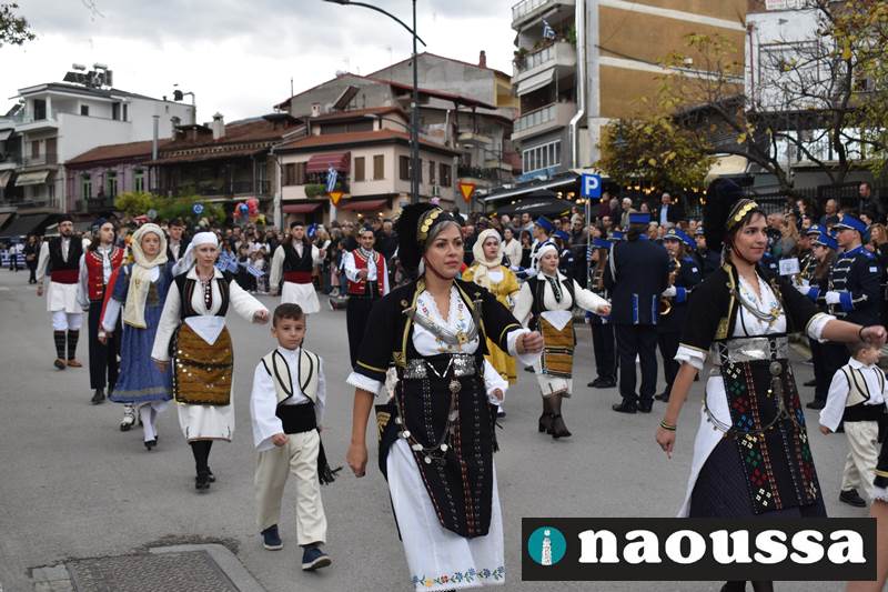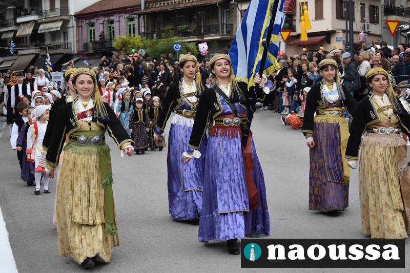 Μαθητές των δημοτικών, των γυμνασίων, των λυκείων αλλά και πολιτιστικοί σύλλογοι παρήλασαν καταχειροκροτούμενοι από τους κατοίκους της Νάουσας, τιμώντας τους ήρωες της 28ης Οκτωβρίου