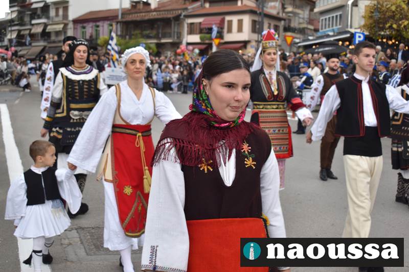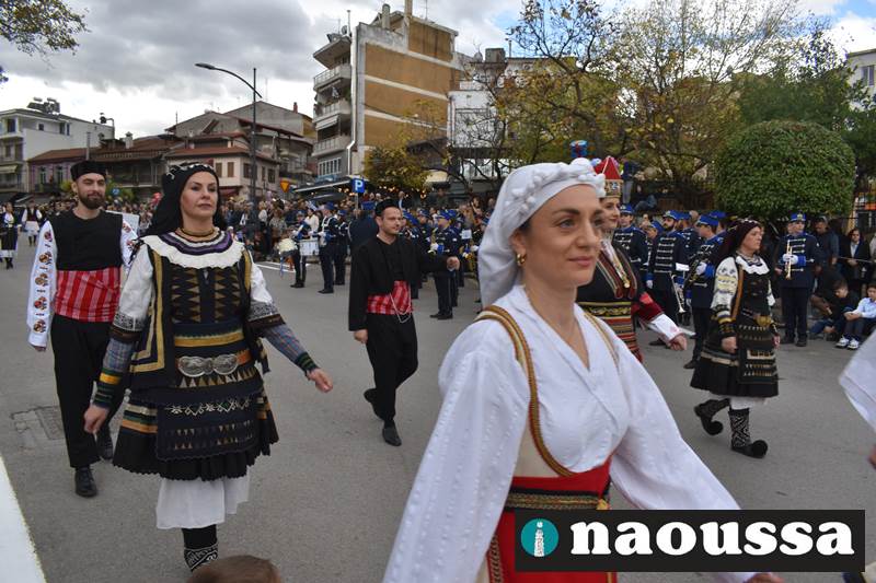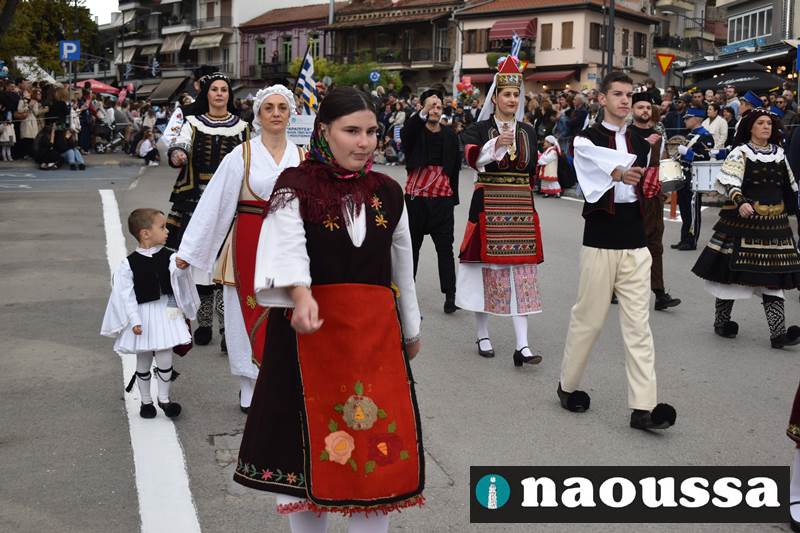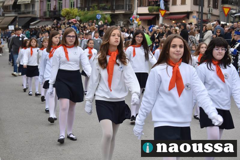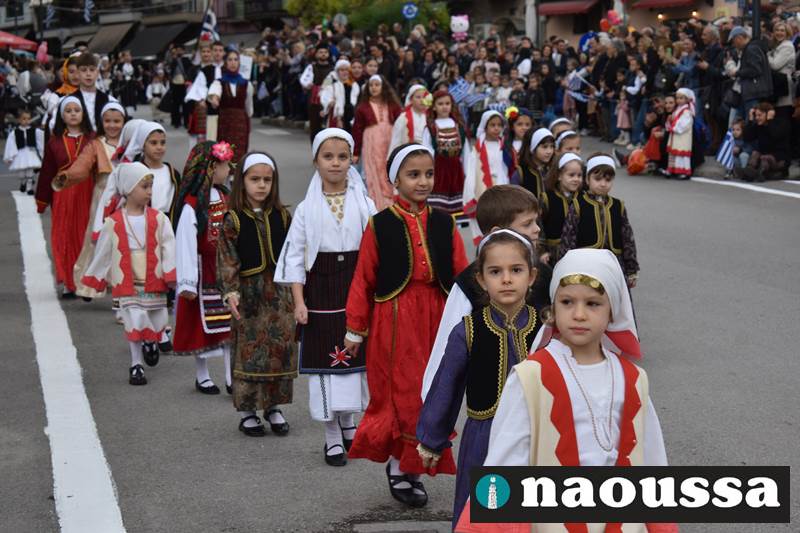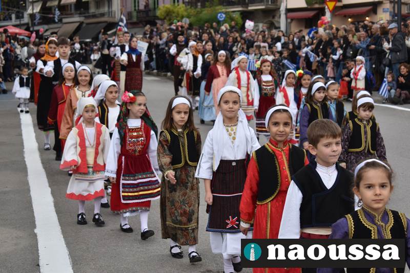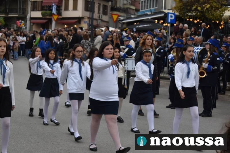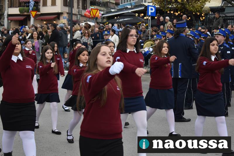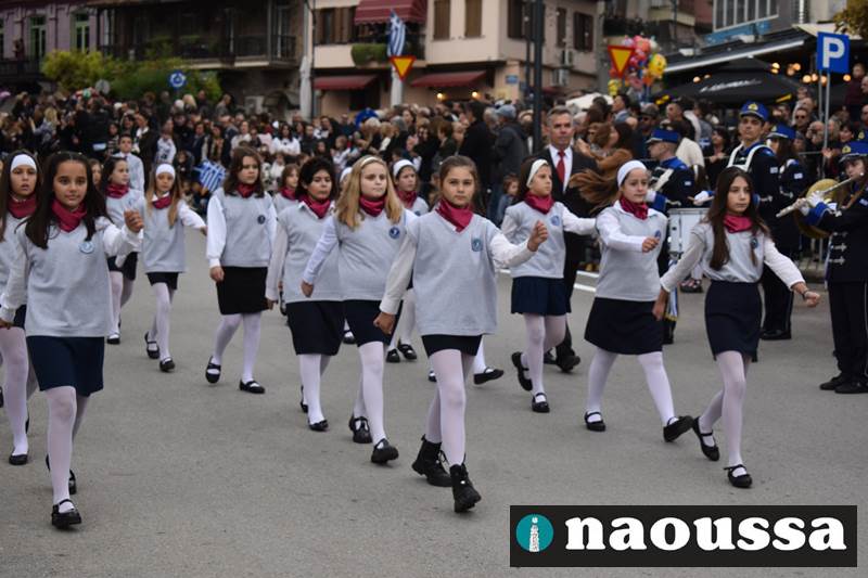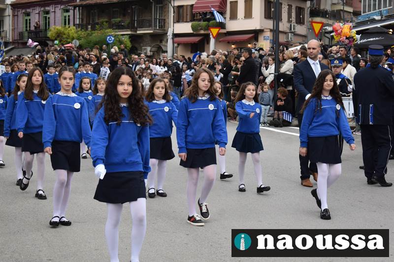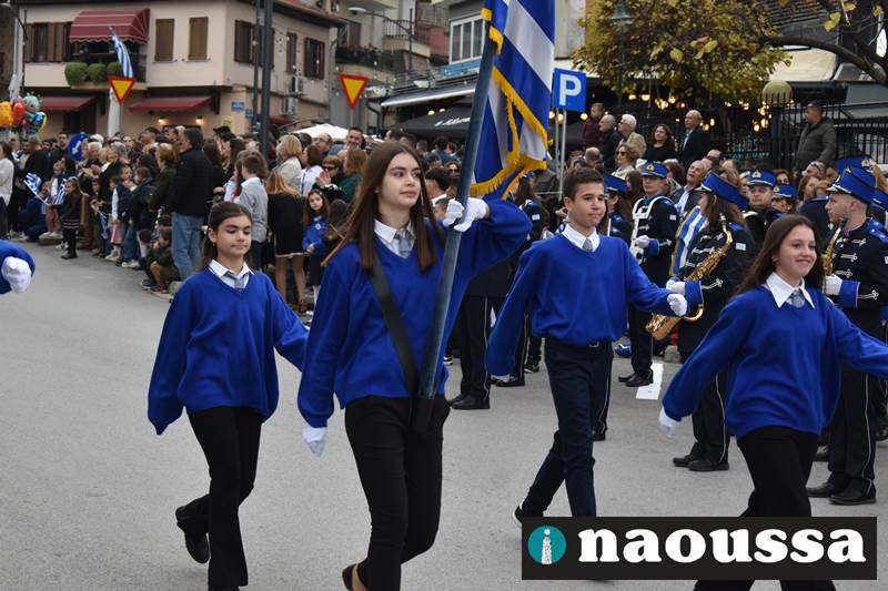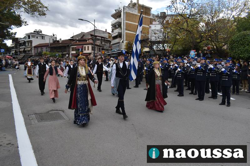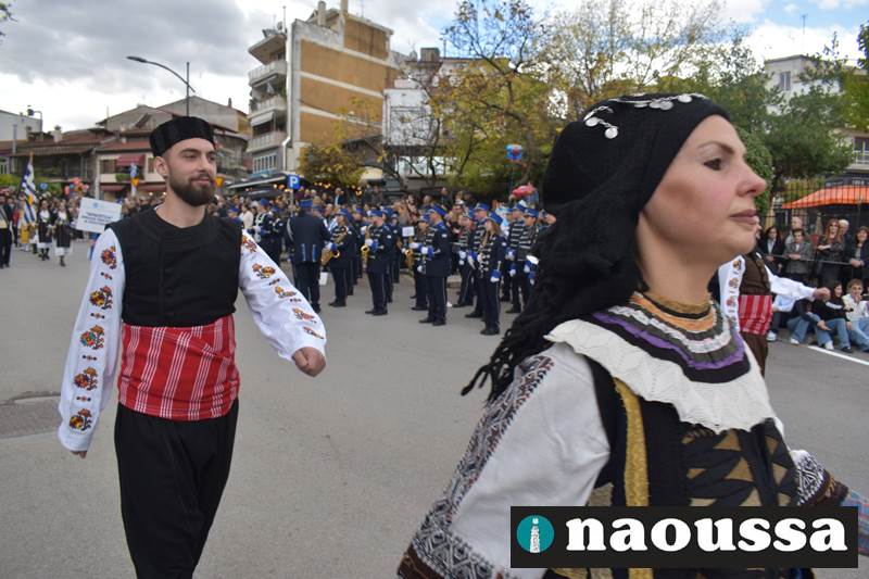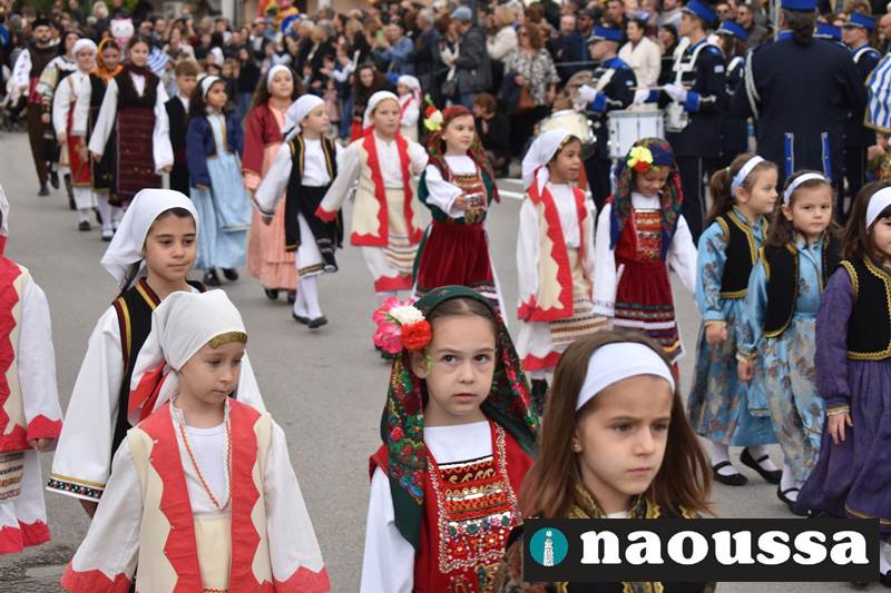 Μαθητές των δημοτικών, των γυμνασίων, των λυκείων αλλά και πολιτιστικοί σύλλογοι παρήλασαν καταχειροκροτούμενοι από τους κατοίκους της Νάουσας, τιμώντας τους ήρωες της 28ης Οκτωβρίου