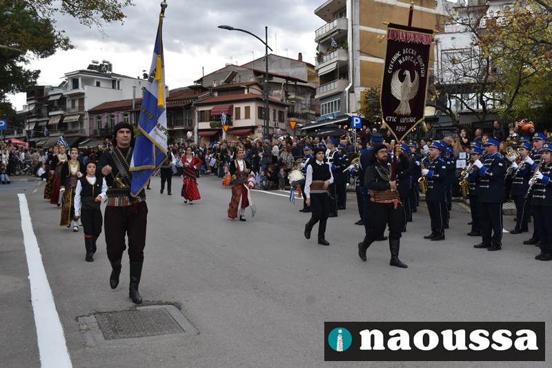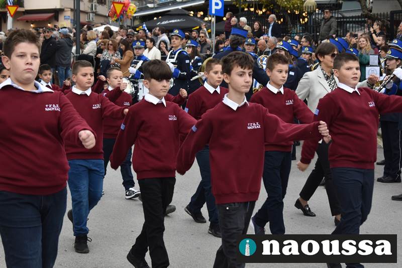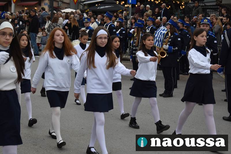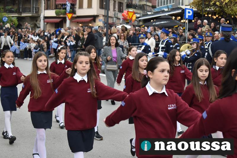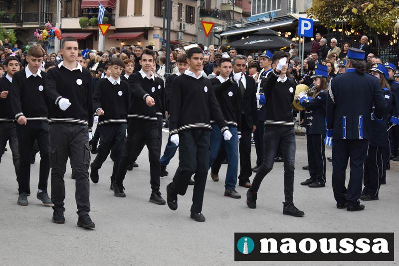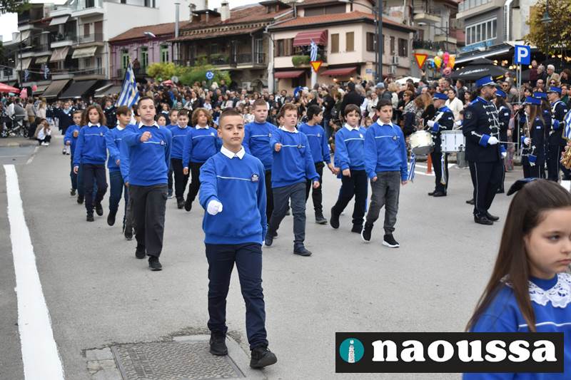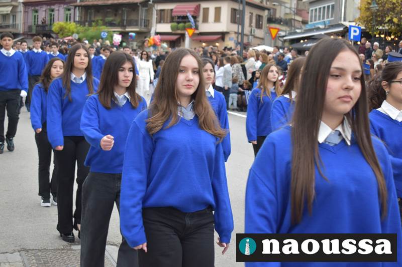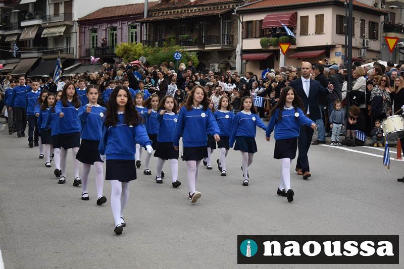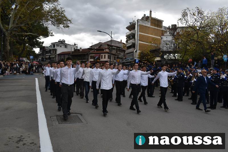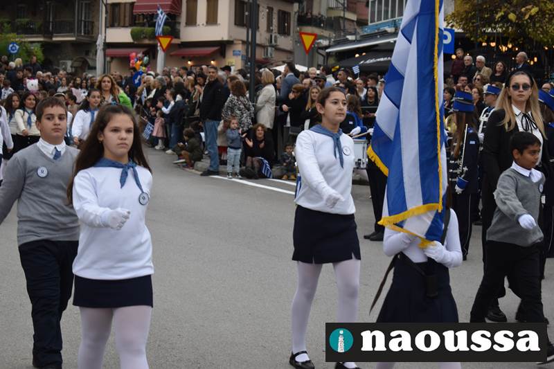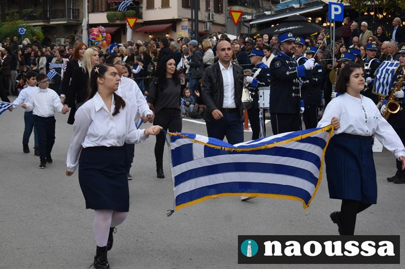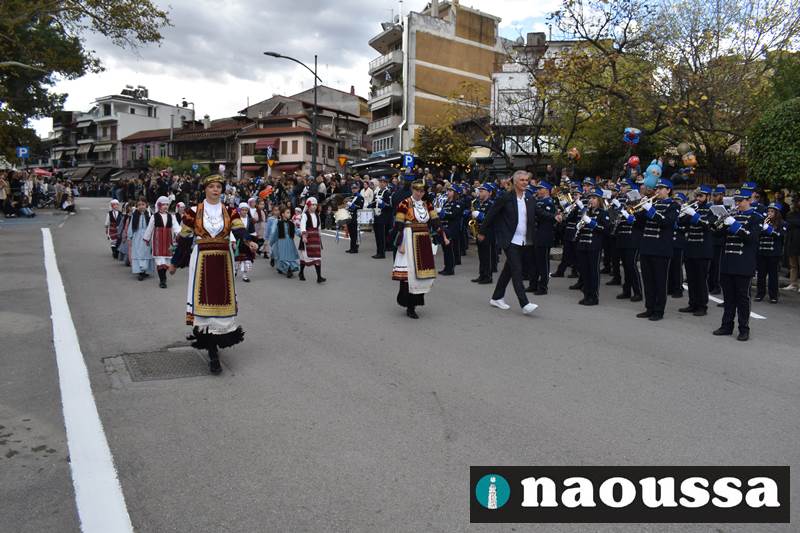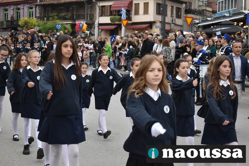 Μαθητές των δημοτικών, των γυμνασίων, των λυκείων αλλά και πολιτιστικοί σύλλογοι παρήλασαν καταχειροκροτούμενοι από τους κατοίκους της Νάουσας, τιμώντας τους ήρωες της 28ης Οκτωβρίου