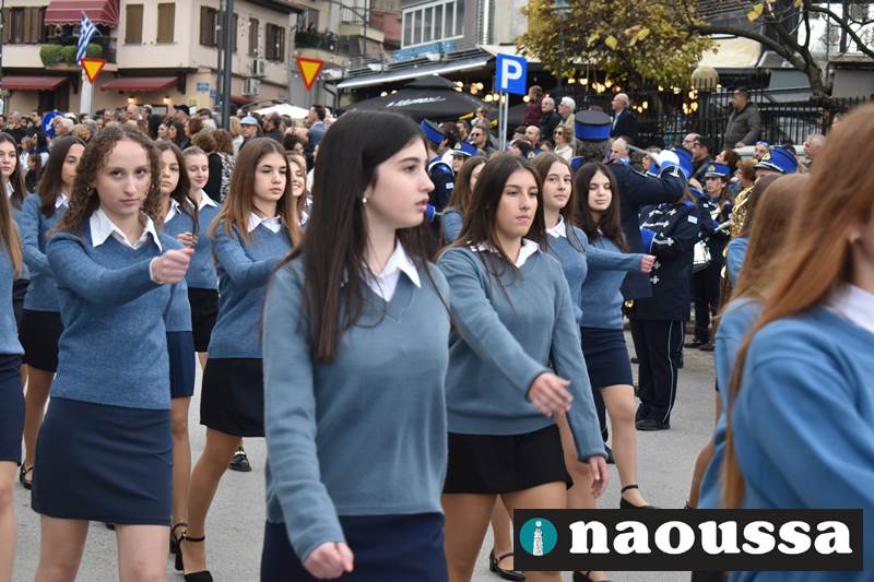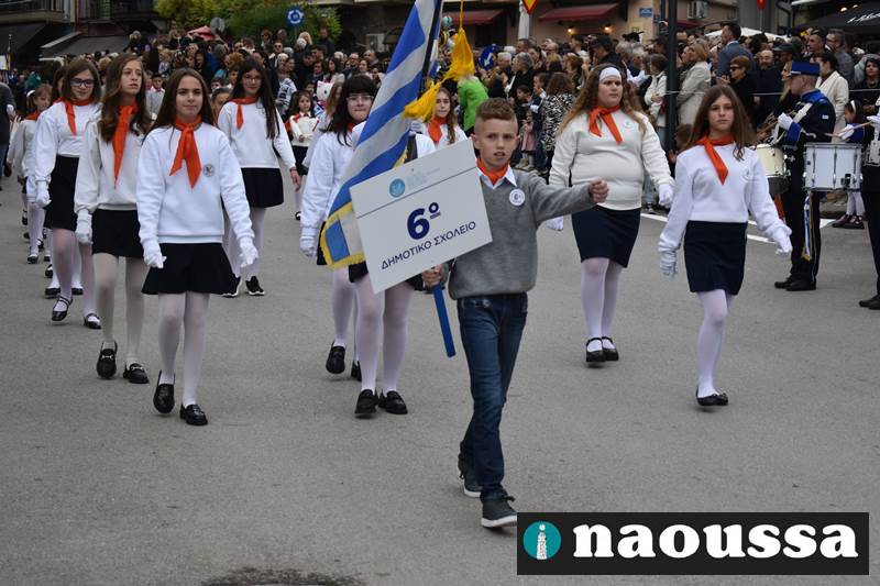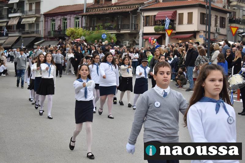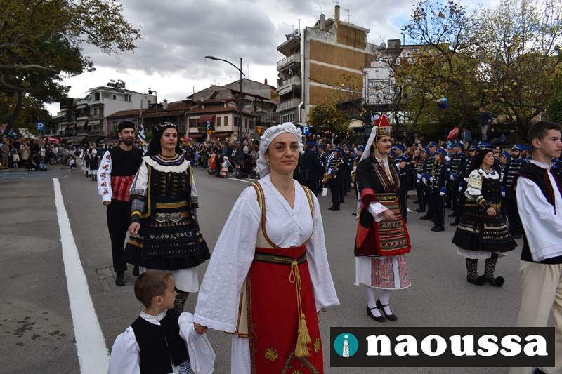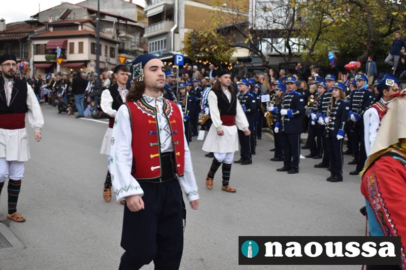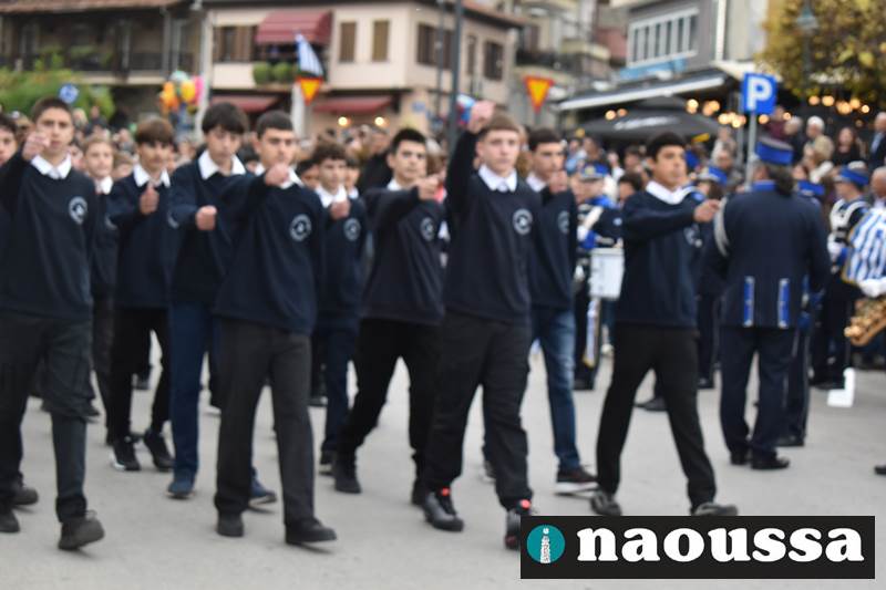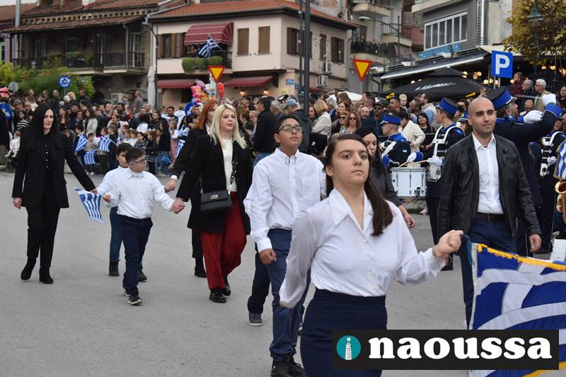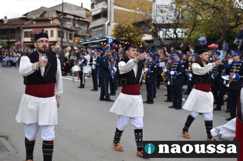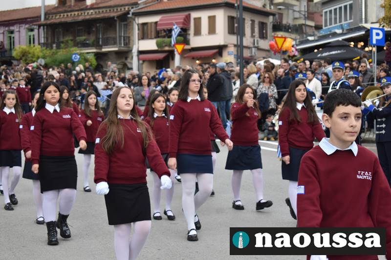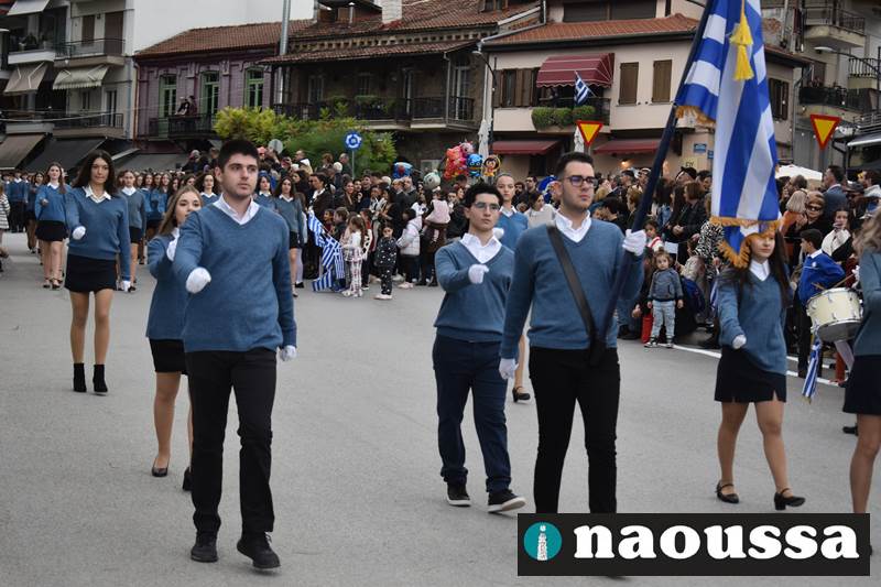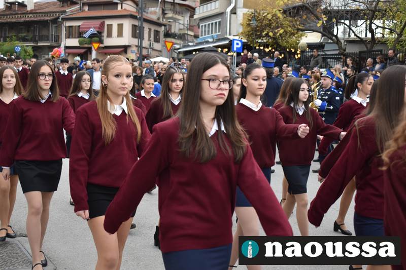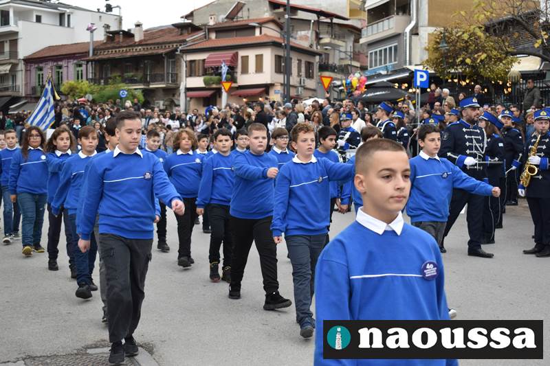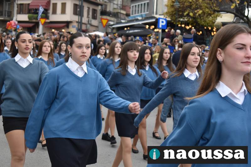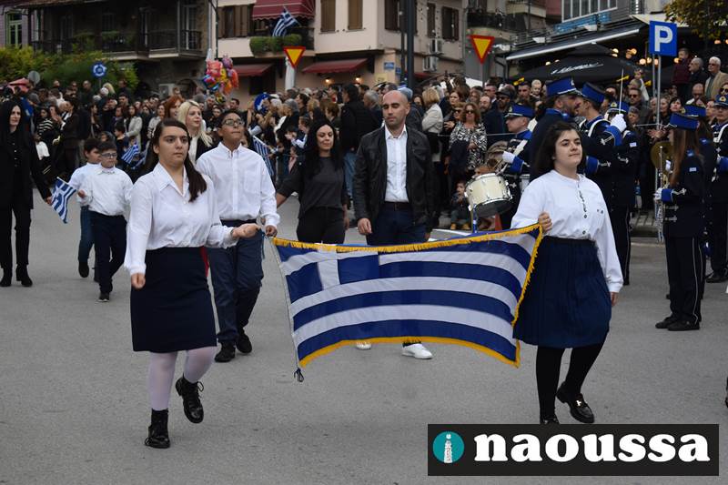 Μαθητές των δημοτικών, των γυμνασίων, των λυκείων αλλά και πολιτιστικοί σύλλογοι παρήλασαν καταχειροκροτούμενοι από τους κατοίκους της Νάουσας, τιμώντας τους ήρωες της 28ης Οκτωβρίου