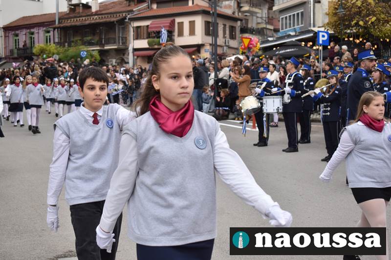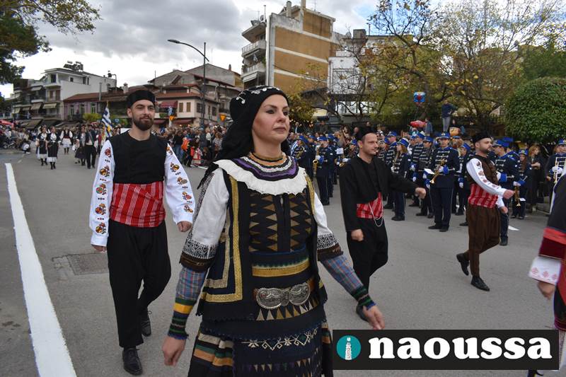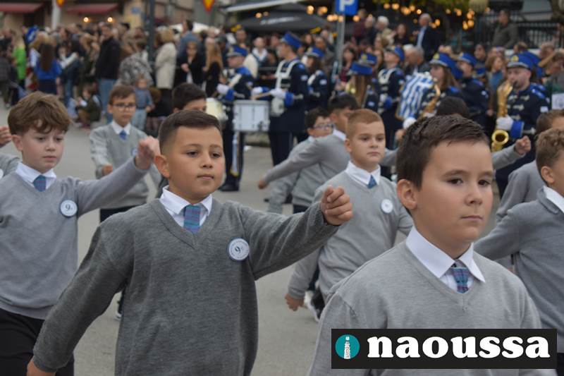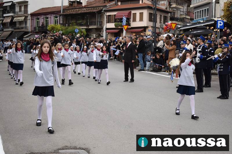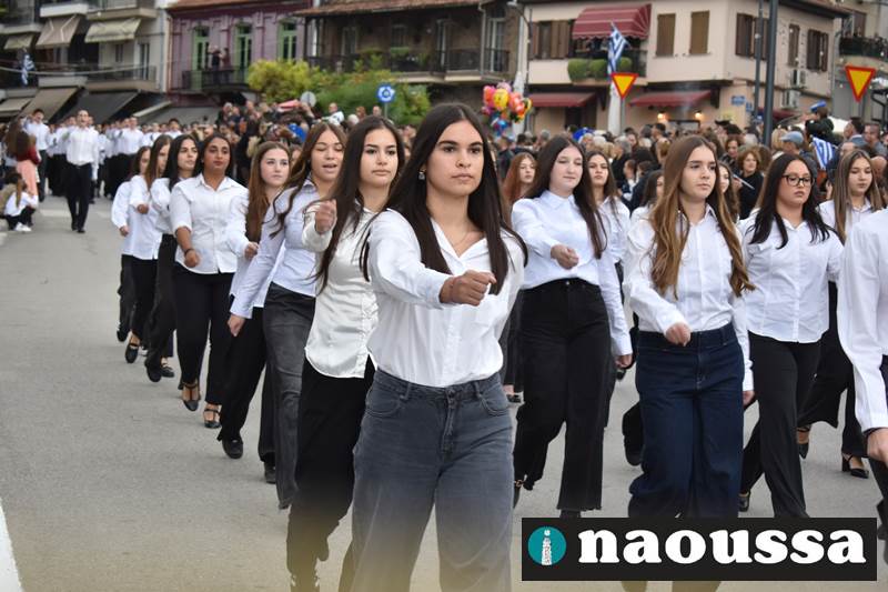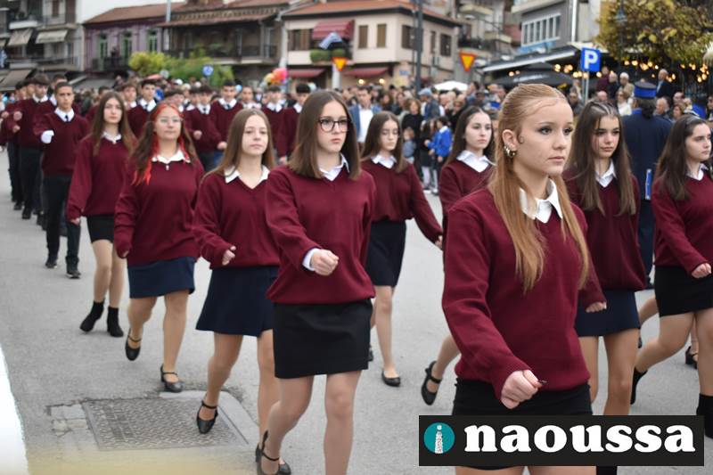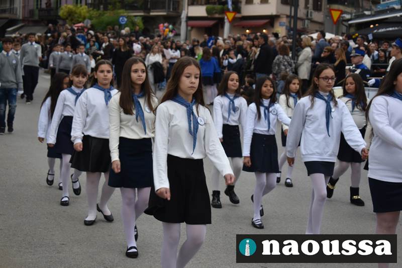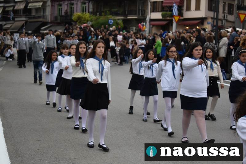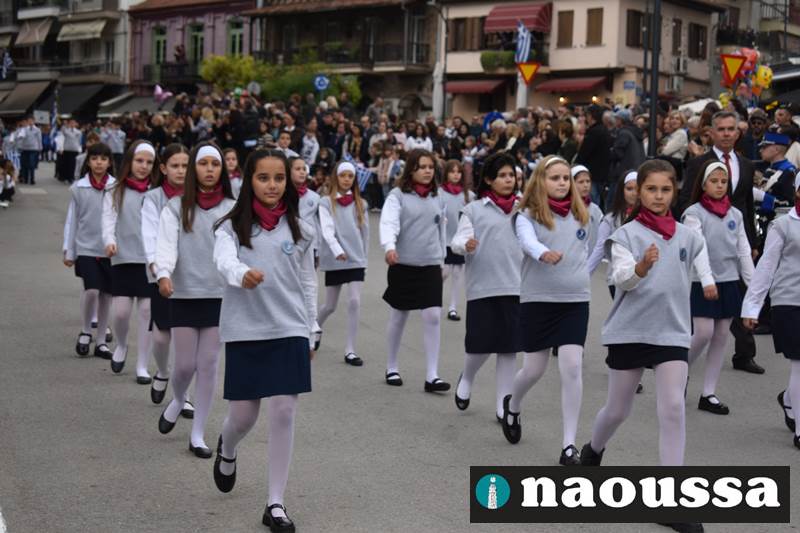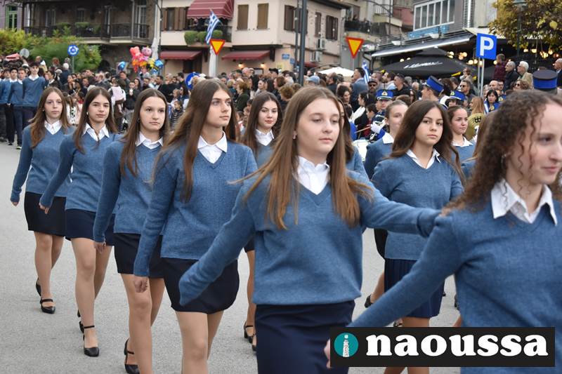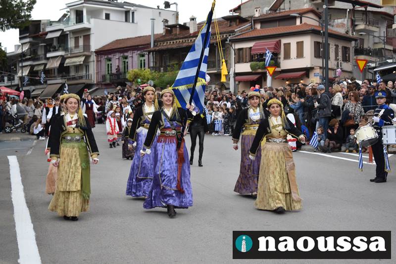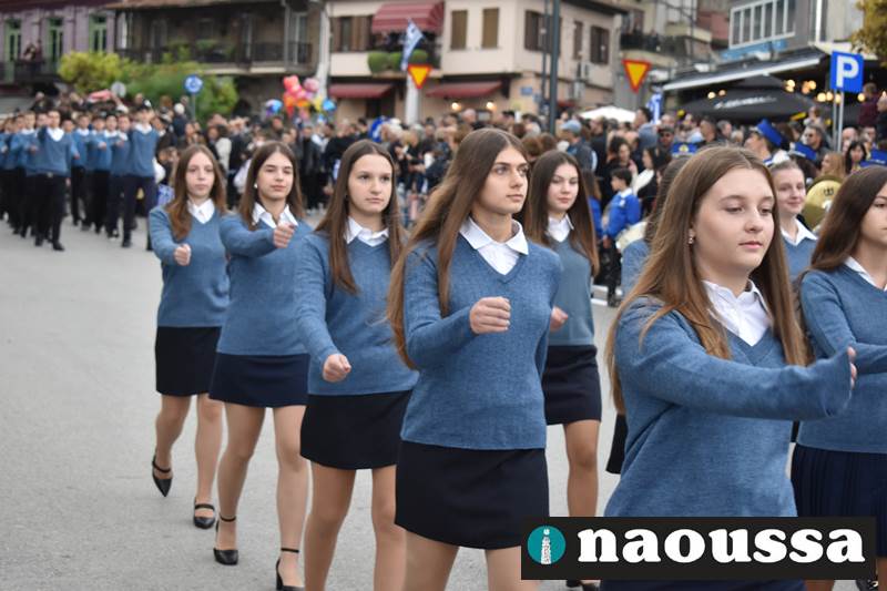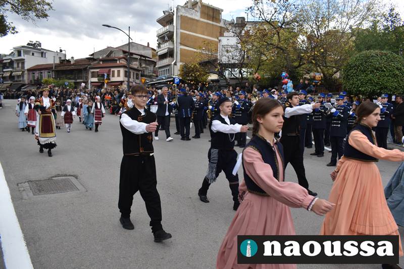 Μαθητές των δημοτικών, των γυμνασίων, των λυκείων αλλά και πολιτιστικοί σύλλογοι παρήλασαν καταχειροκροτούμενοι από τους κατοίκους της Νάουσας, τιμώντας τους ήρωες της 28ης Οκτωβρίου