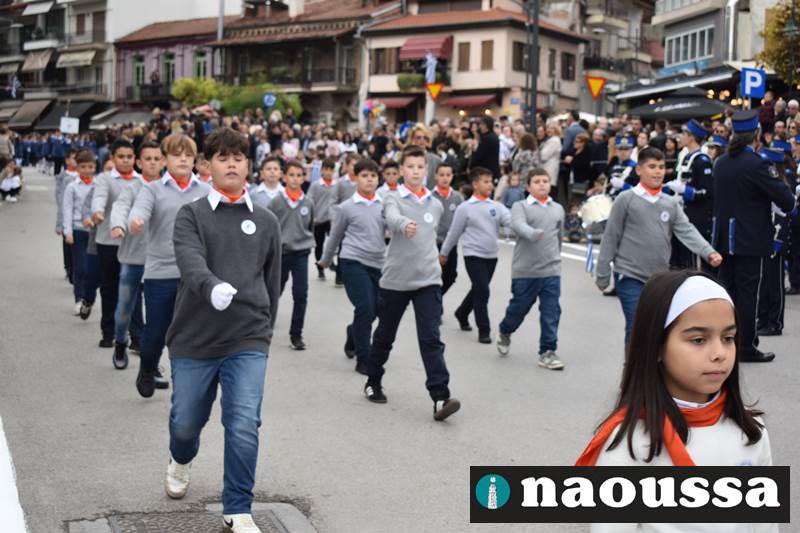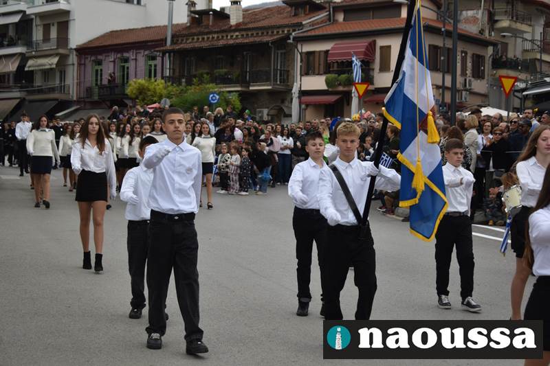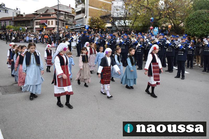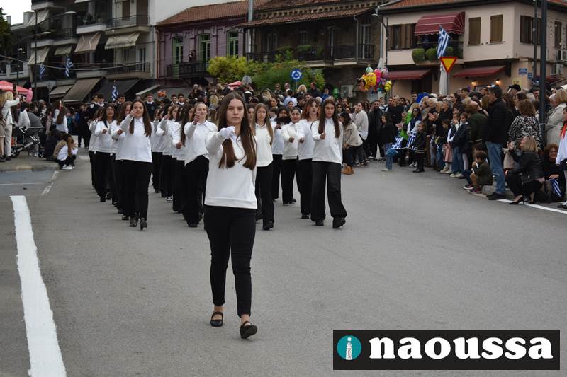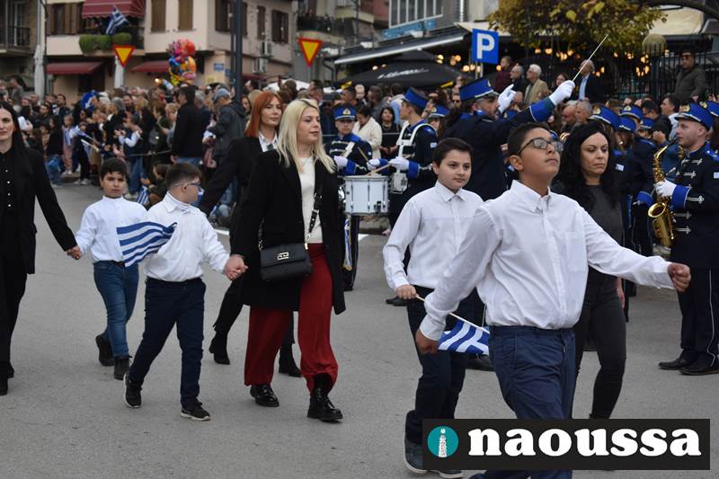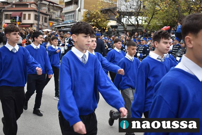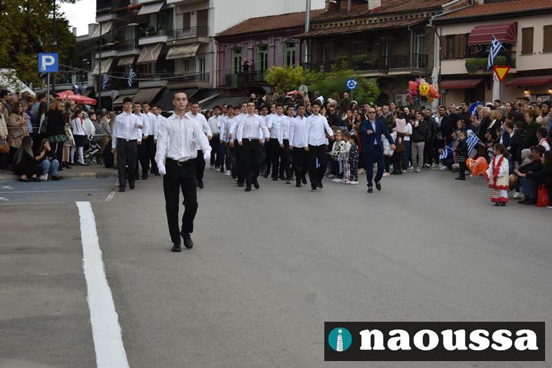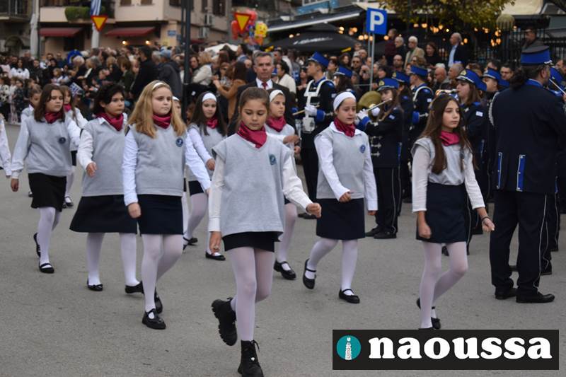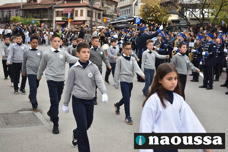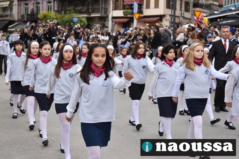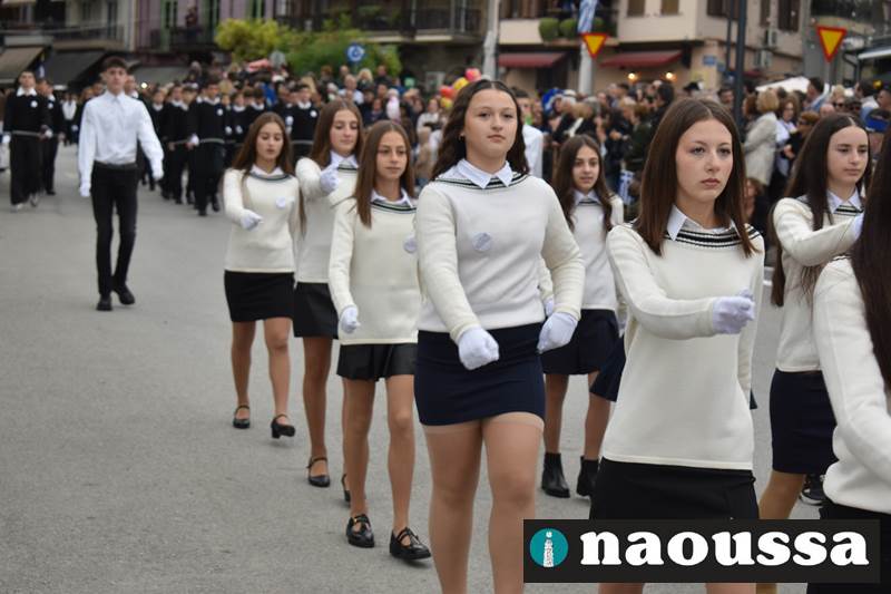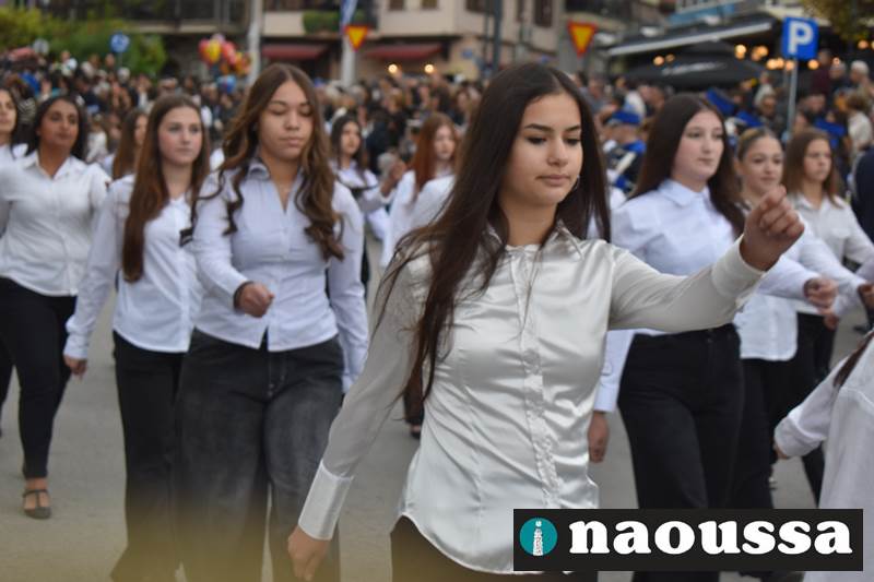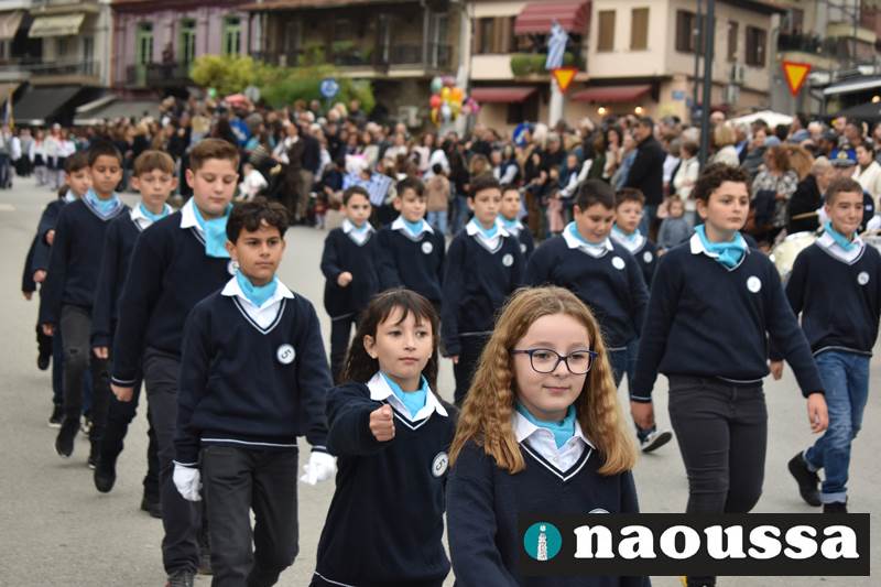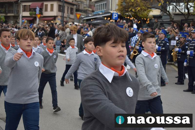 Μαθητές των δημοτικών, των γυμνασίων, των λυκείων αλλά και πολιτιστικοί σύλλογοι παρήλασαν καταχειροκροτούμενοι από τους κατοίκους της Νάουσας, τιμώντας τους ήρωες της 28ης Οκτωβρίου