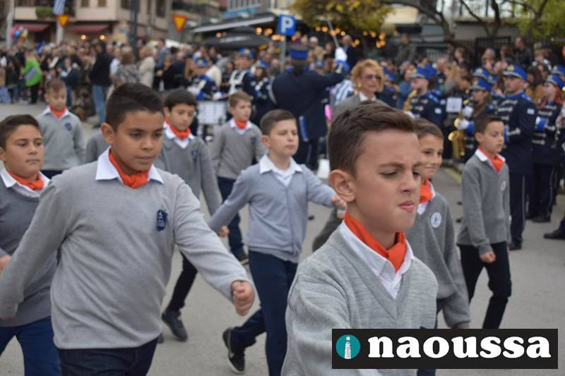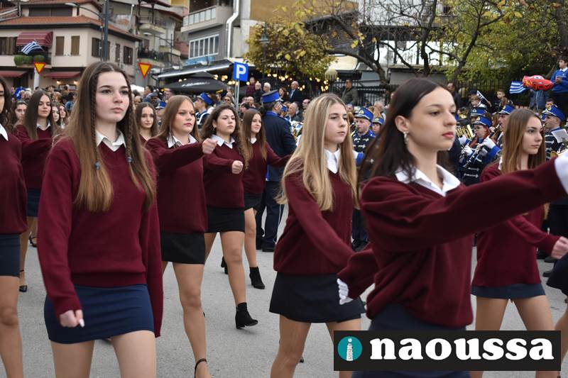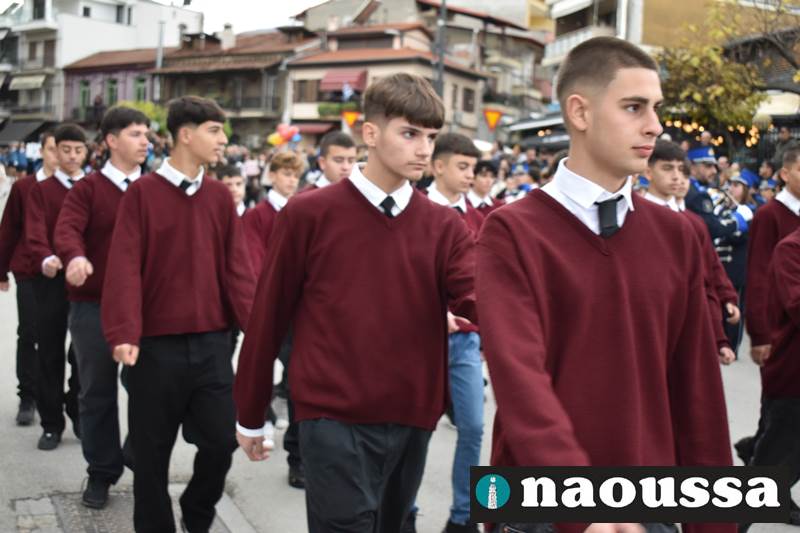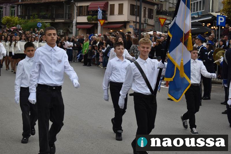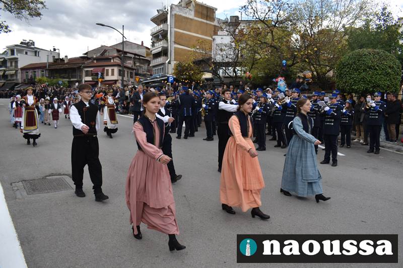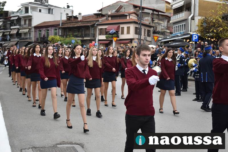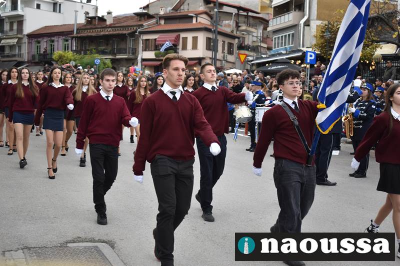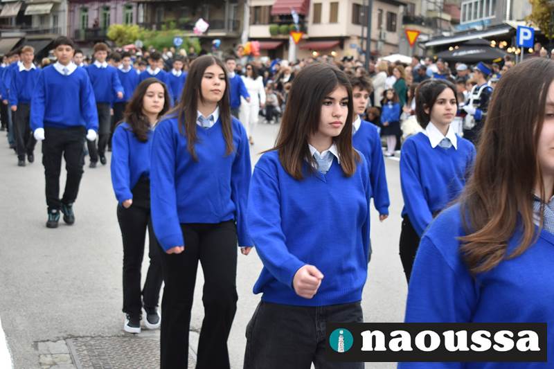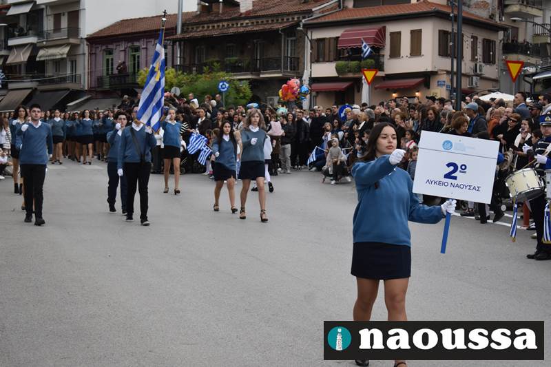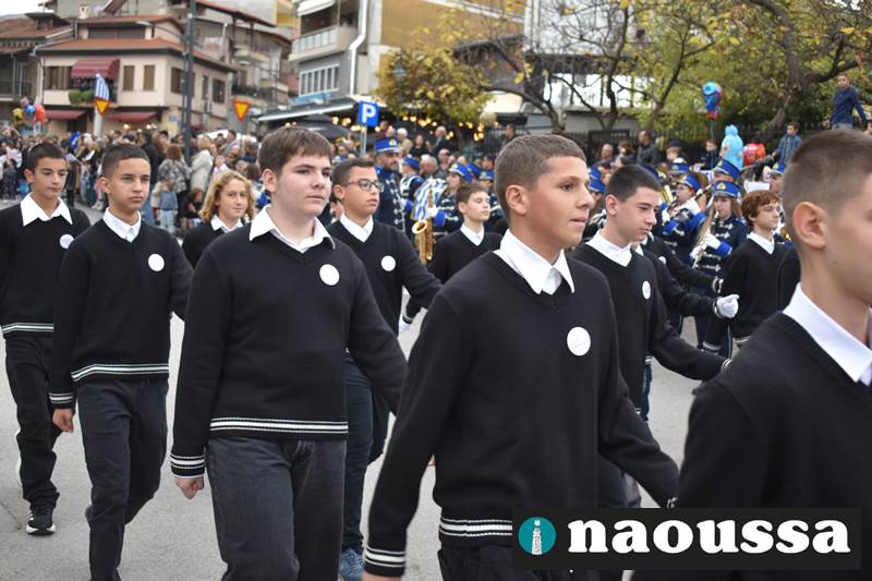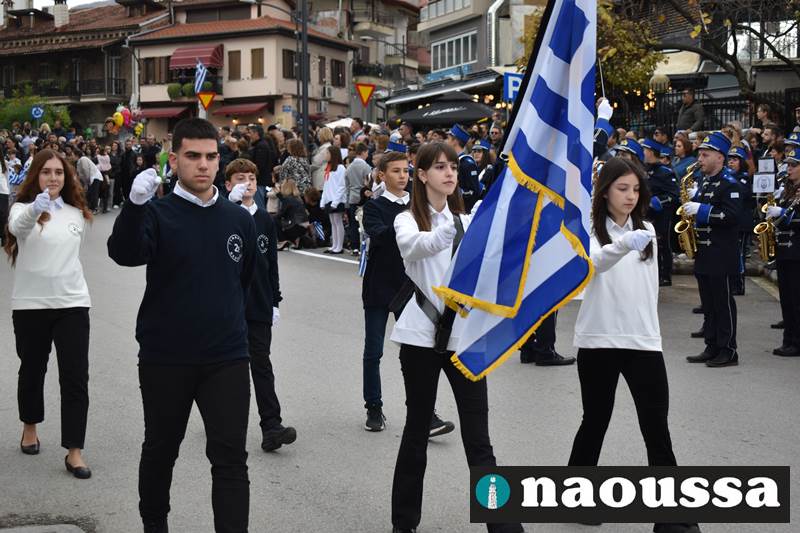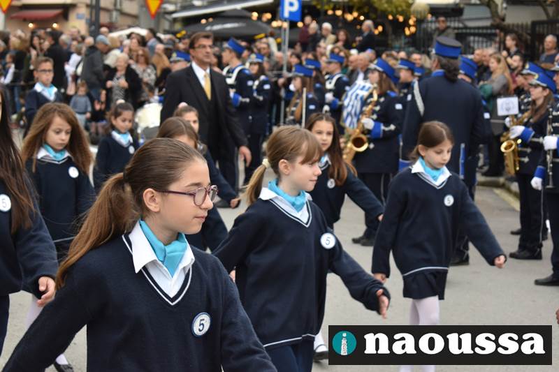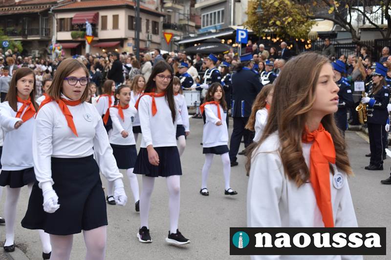 Μαθητές των δημοτικών, των γυμνασίων, των λυκείων αλλά και πολιτιστικοί σύλλογοι παρήλασαν καταχειροκροτούμενοι από τους κατοίκους της Νάουσας, τιμώντας τους ήρωες της 28ης Οκτωβρίου