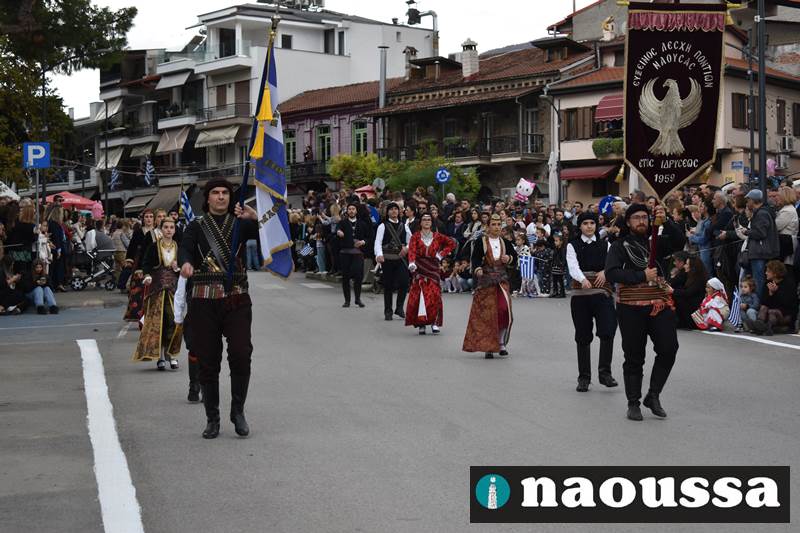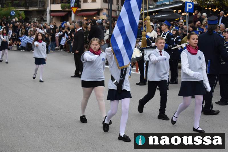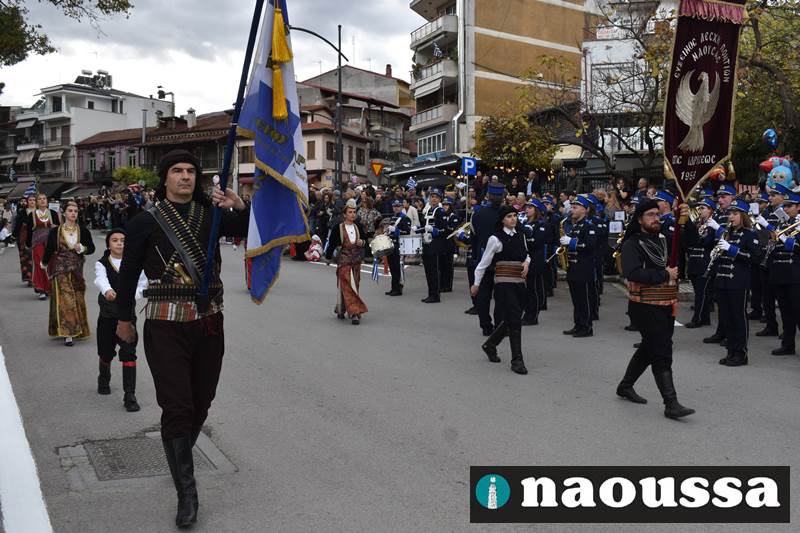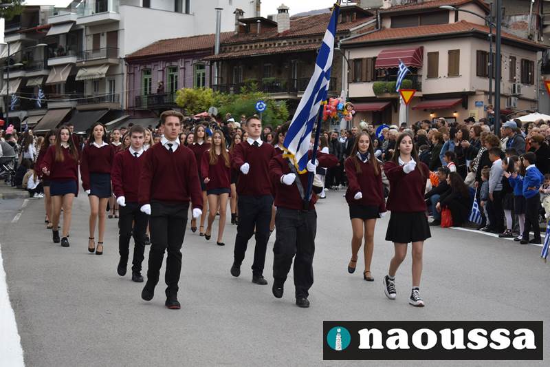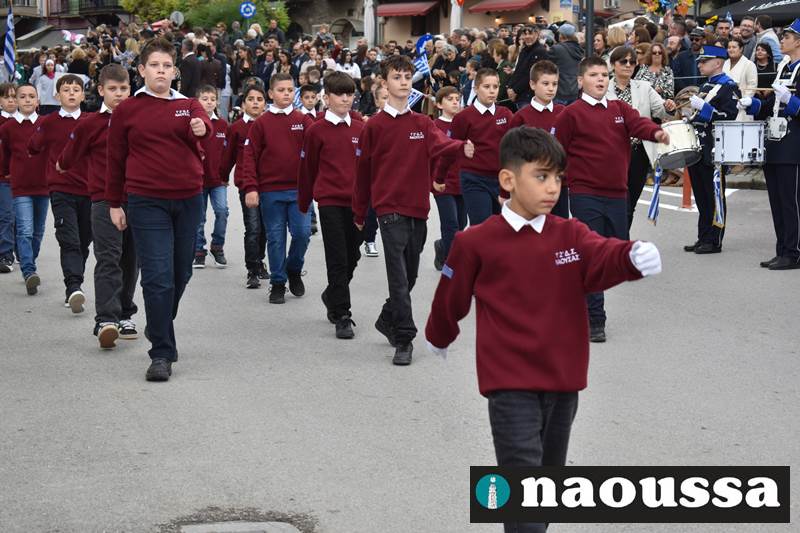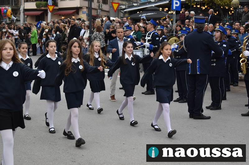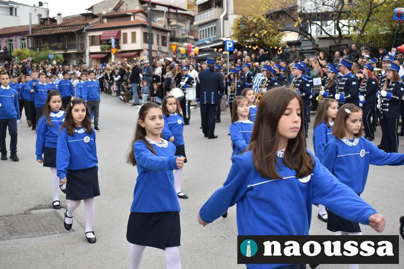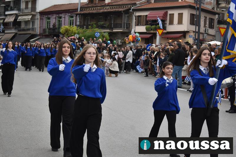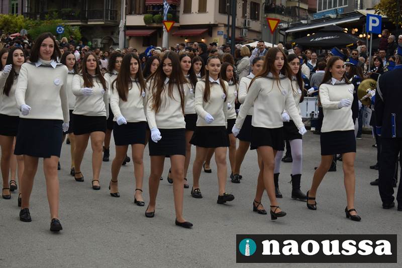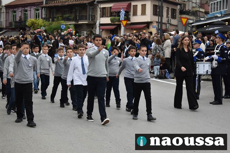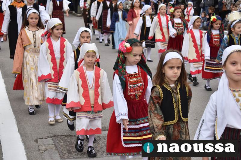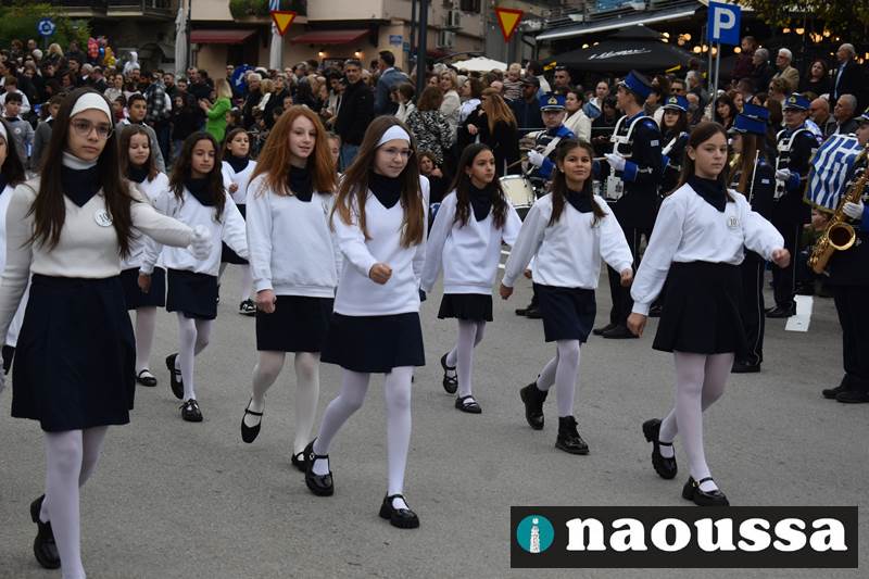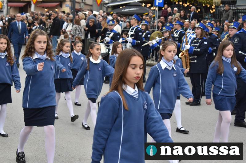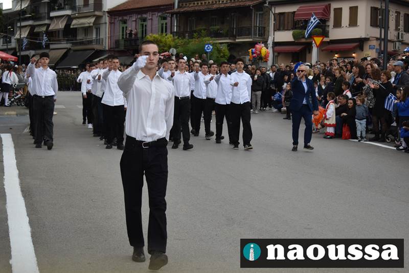 Μαθητές των δημοτικών, των γυμνασίων, των λυκείων αλλά και πολιτιστικοί σύλλογοι παρήλασαν καταχειροκροτούμενοι από τους κατοίκους της Νάουσας, τιμώντας τους ήρωες της 28ης Οκτωβρίου