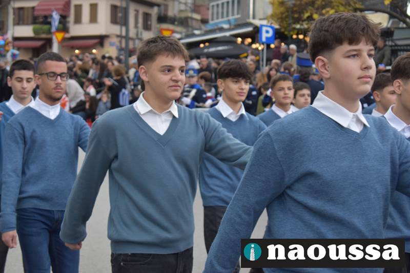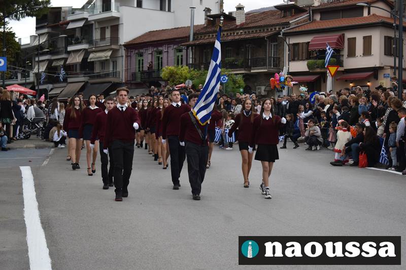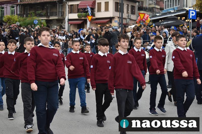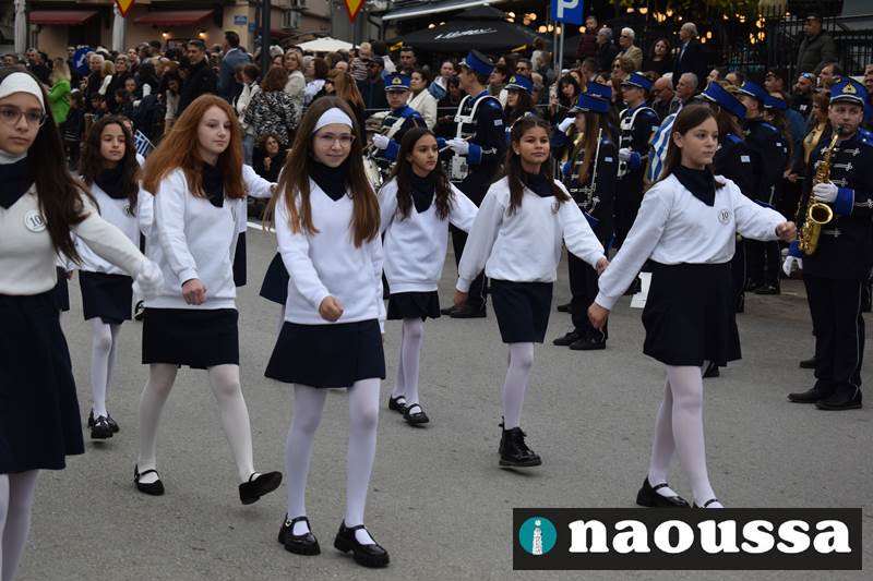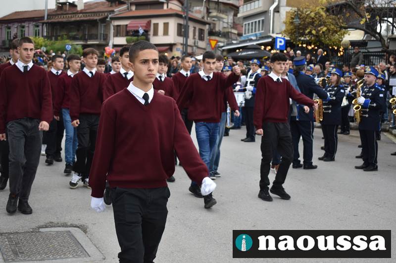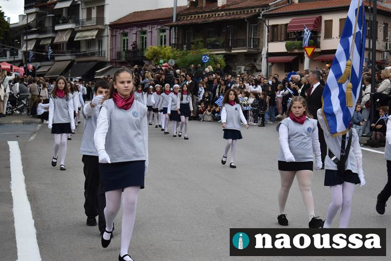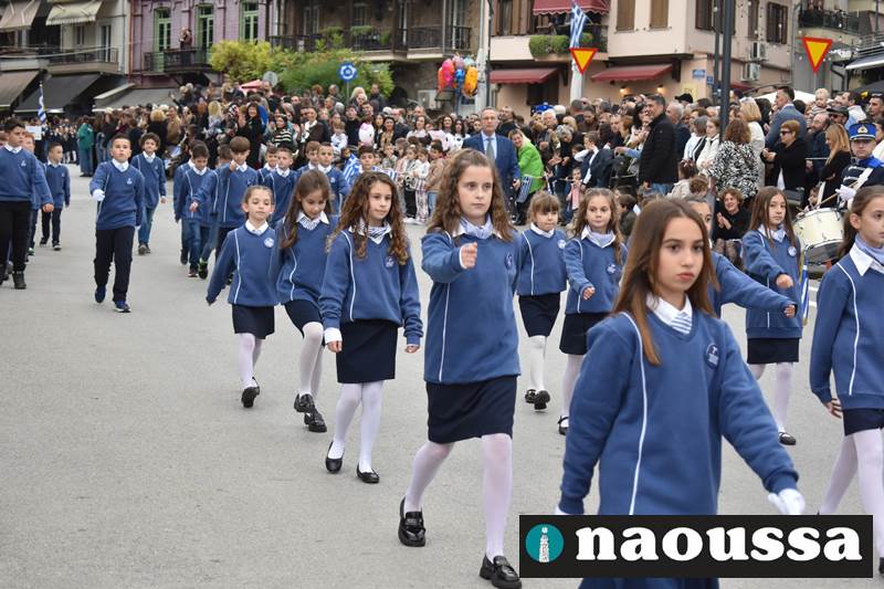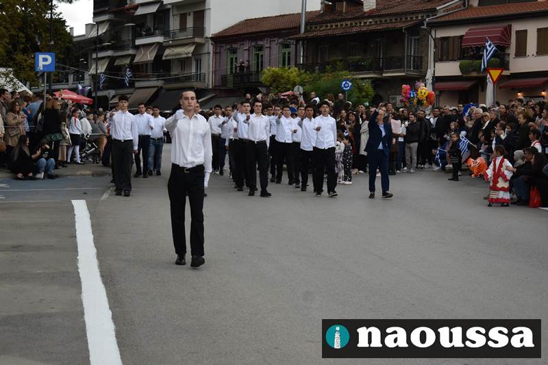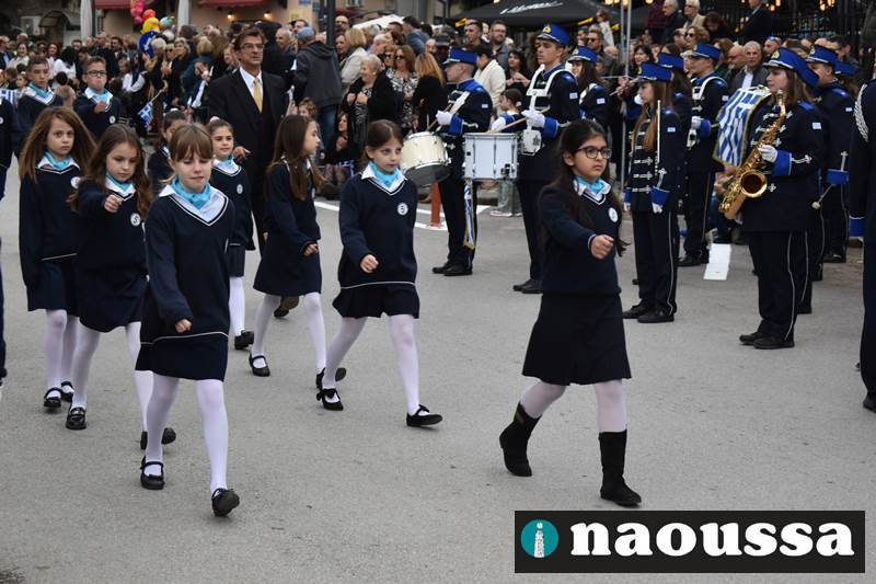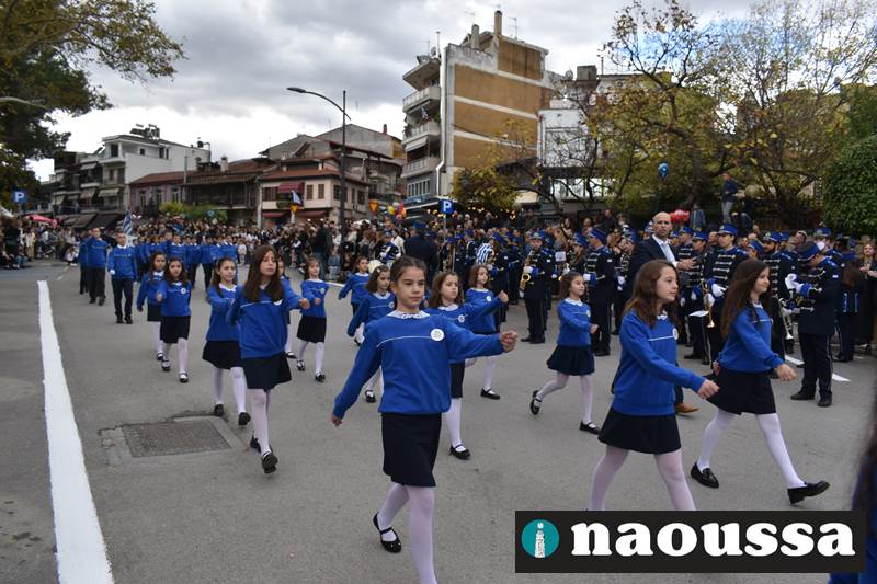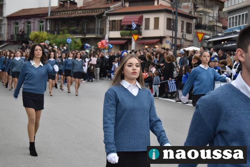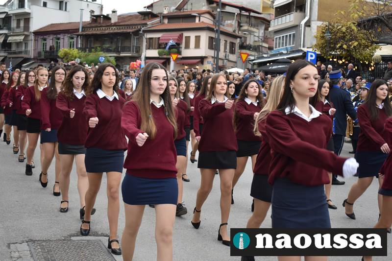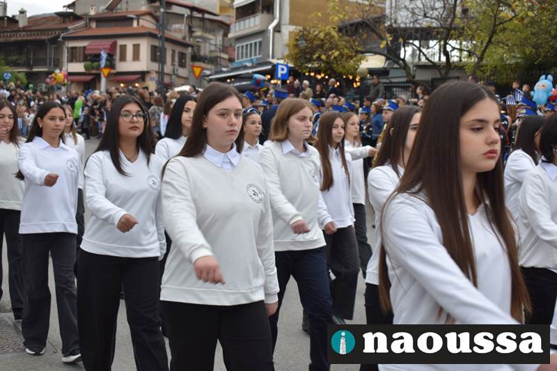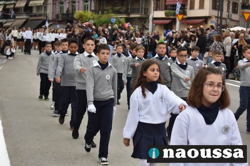 Μαθητές των δημοτικών, των γυμνασίων, των λυκείων αλλά και πολιτιστικοί σύλλογοι παρήλασαν καταχειροκροτούμενοι από τους κατοίκους της Νάουσας, τιμώντας τους ήρωες της 28ης Οκτωβρίου