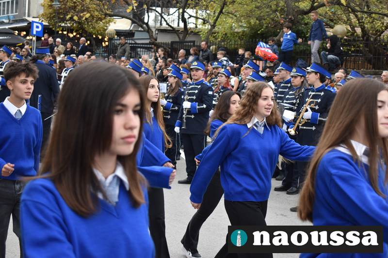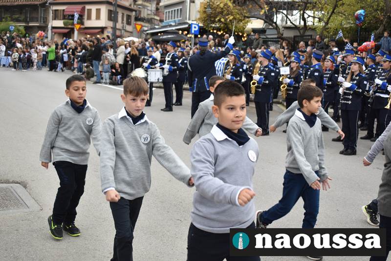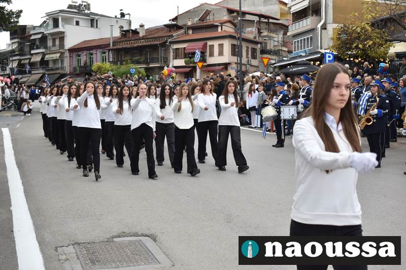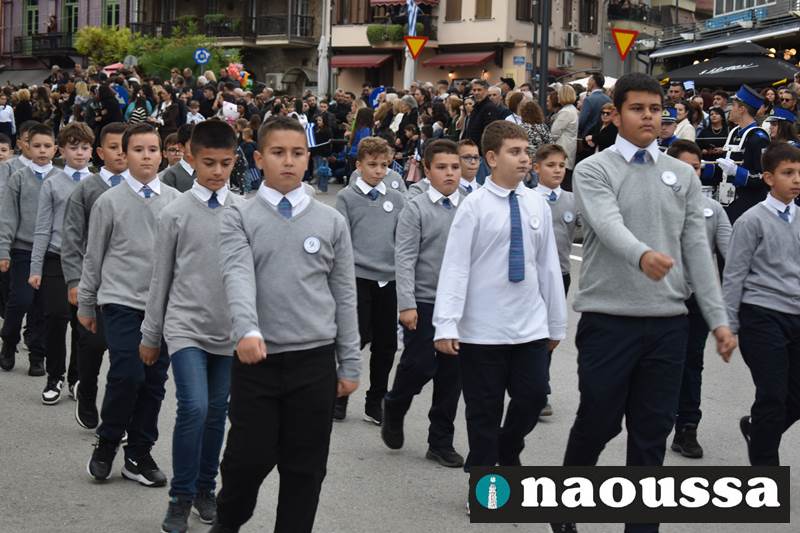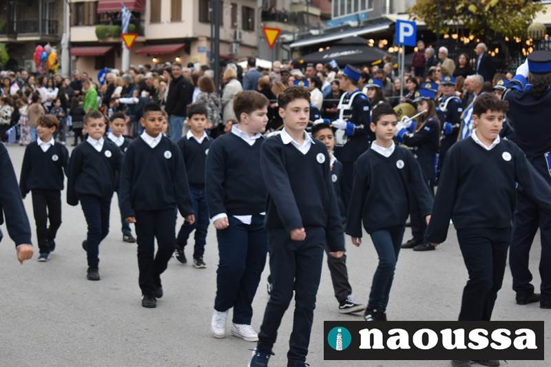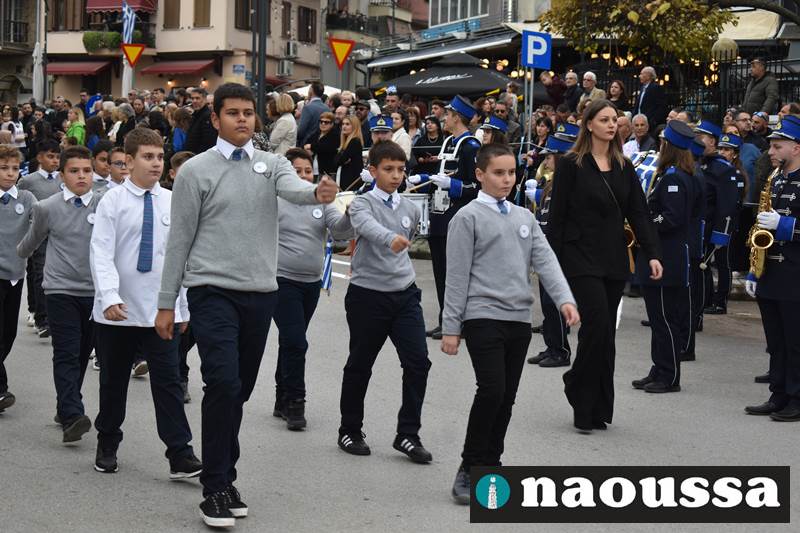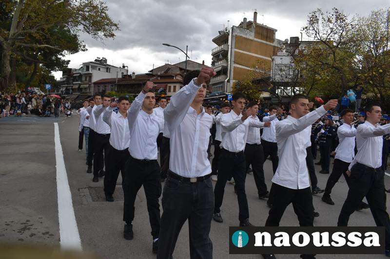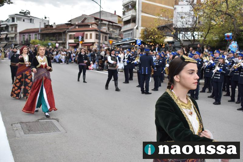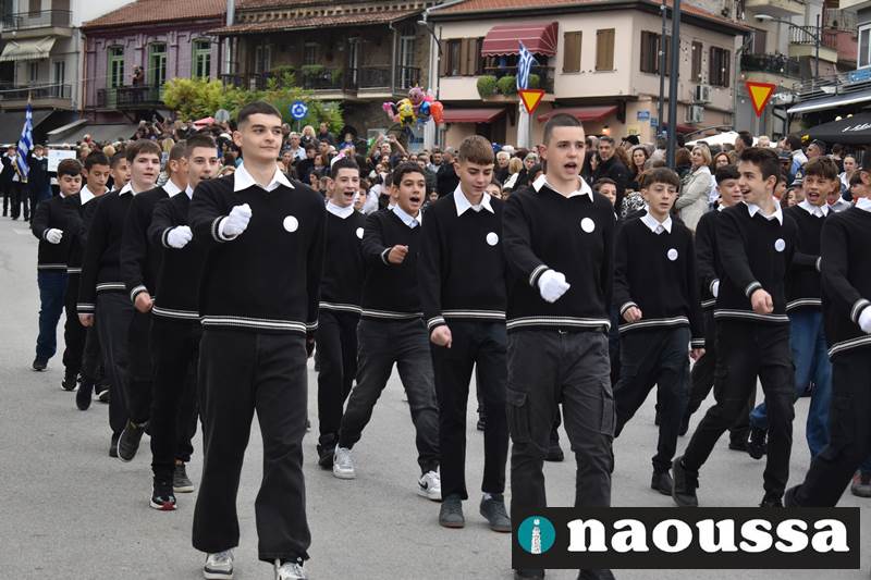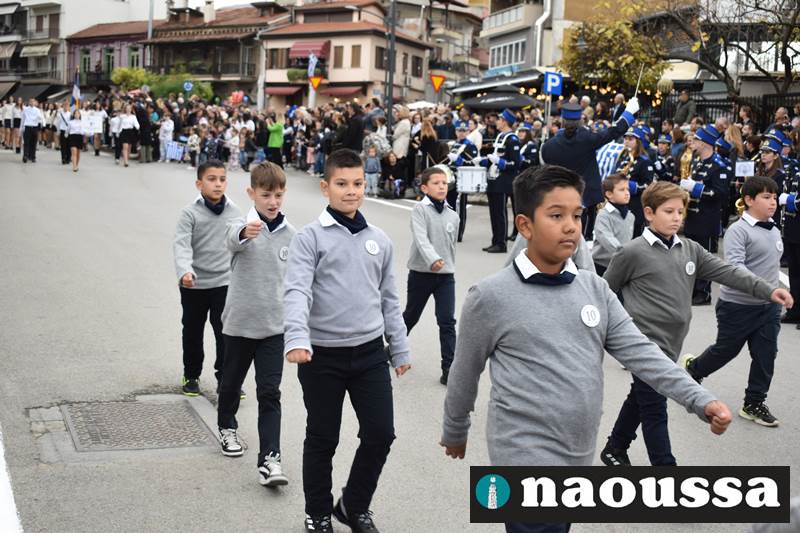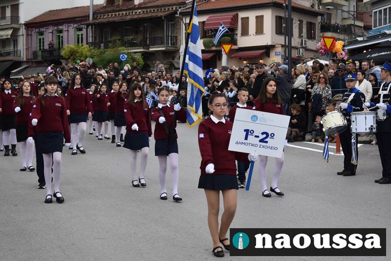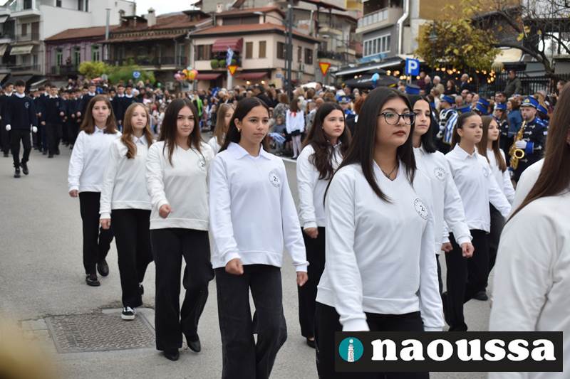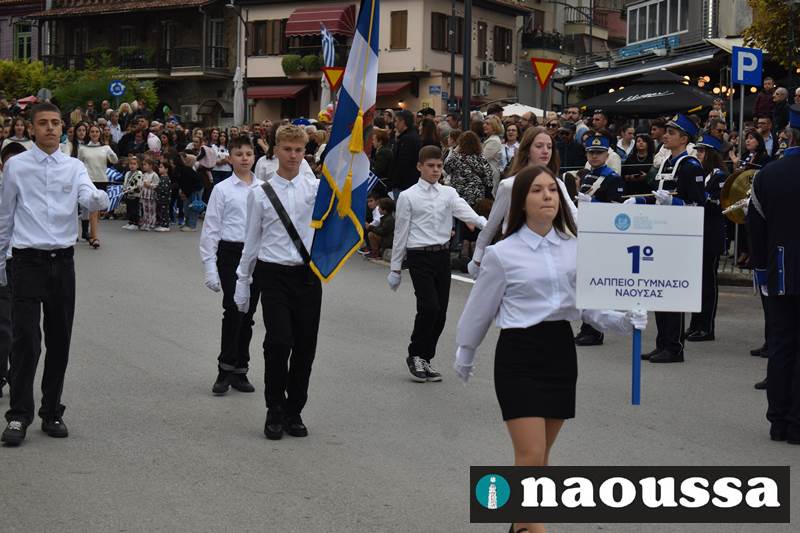 Μαθητές των δημοτικών, των γυμνασίων, των λυκείων αλλά και πολιτιστικοί σύλλογοι παρήλασαν καταχειροκροτούμενοι από τους κατοίκους της Νάουσας, τιμώντας τους ήρωες της 28ης Οκτωβρίου