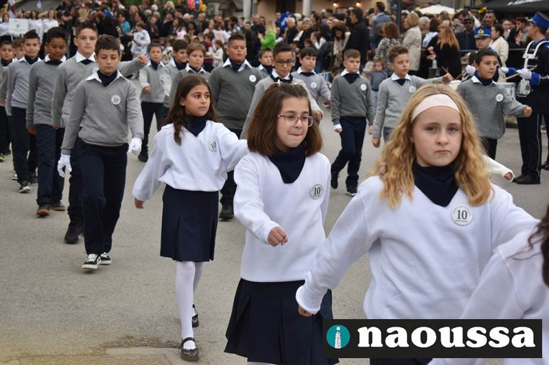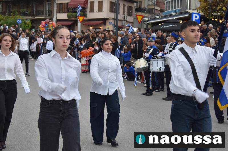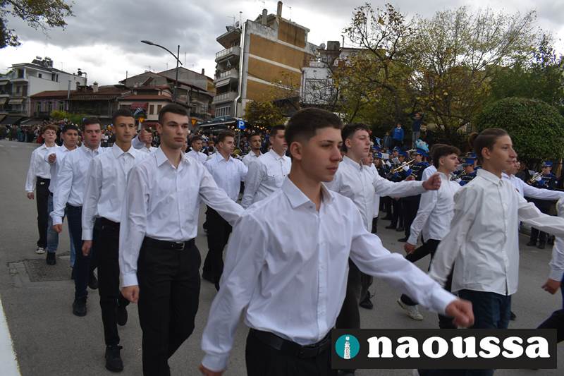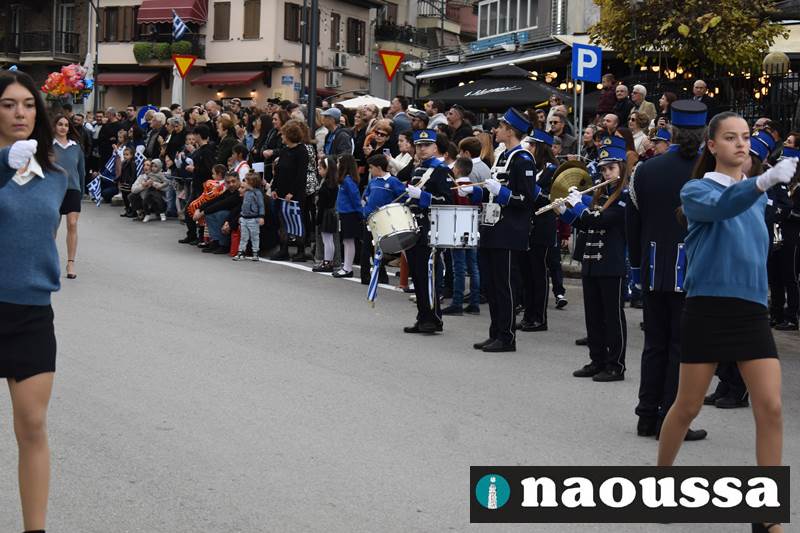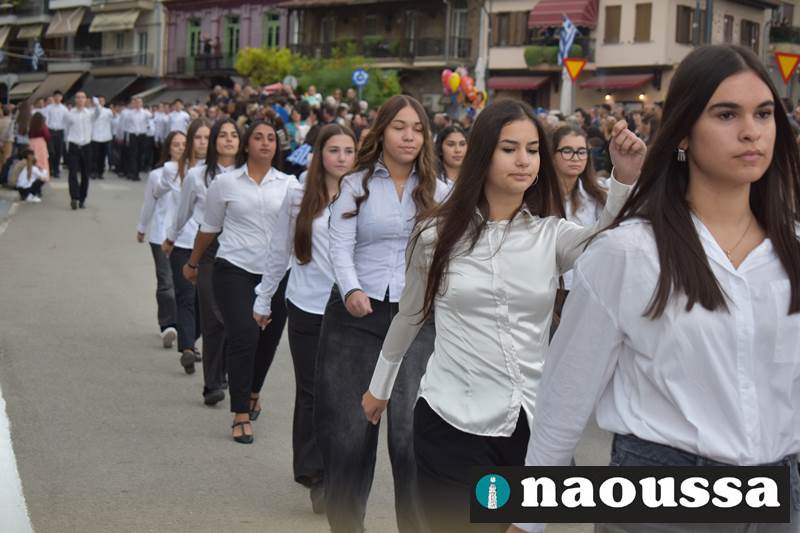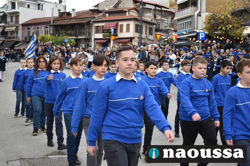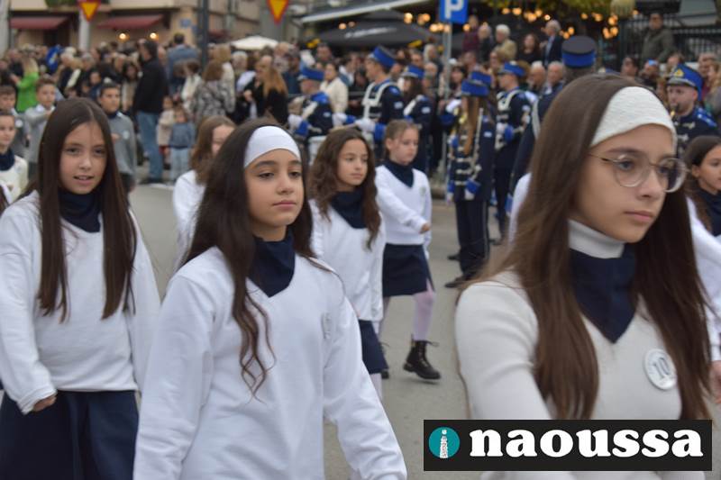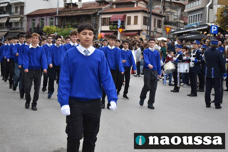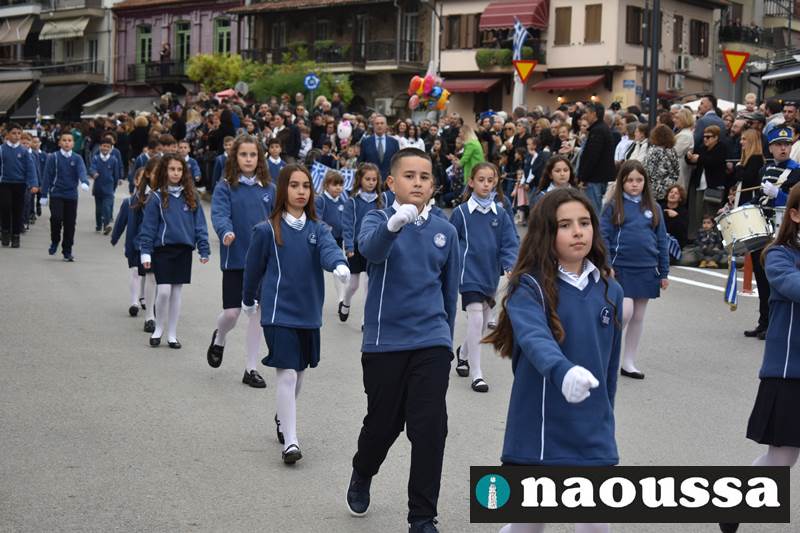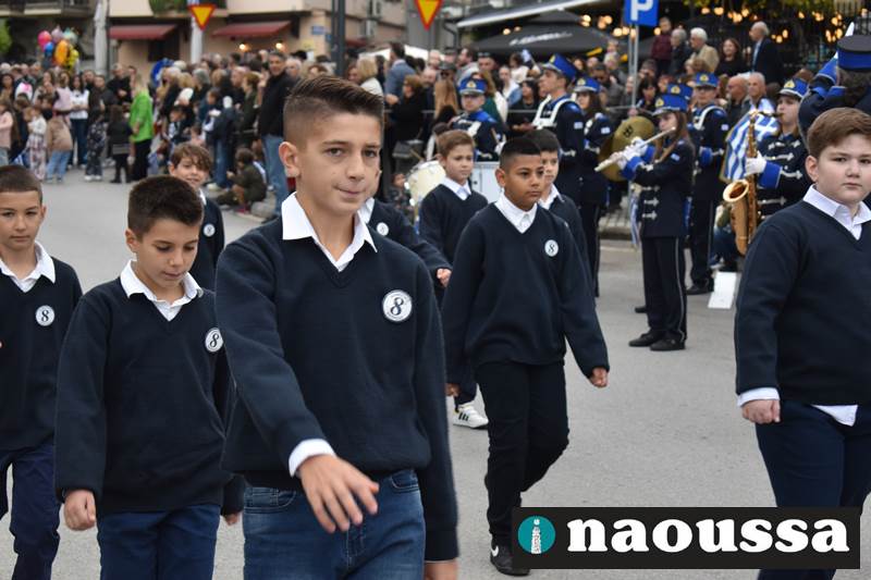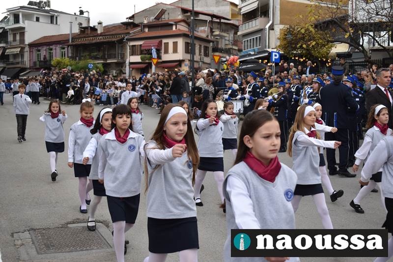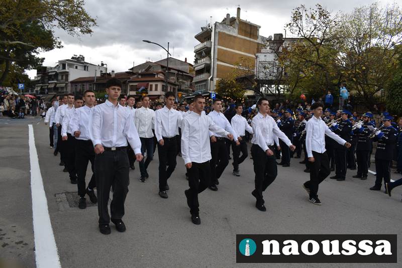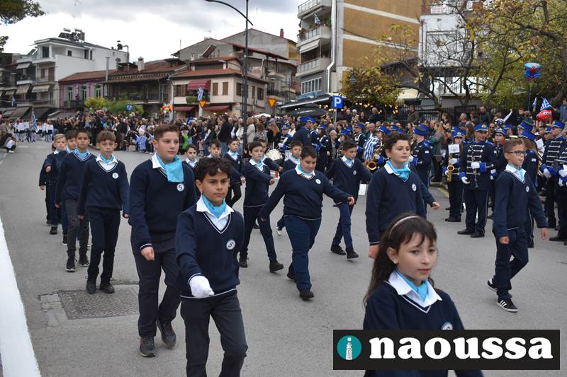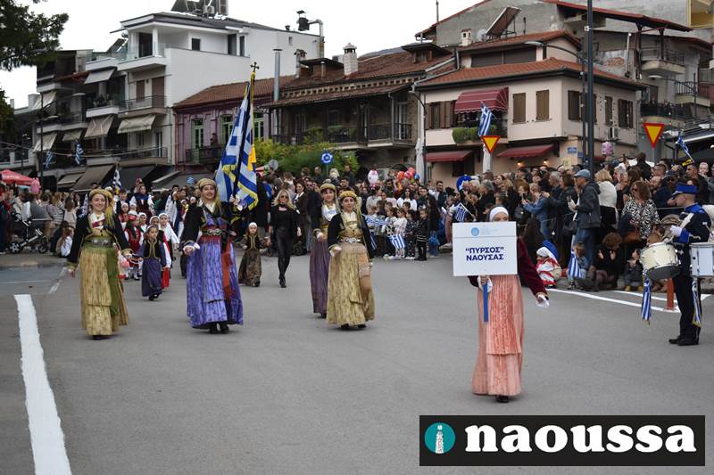 Μαθητές των δημοτικών, των γυμνασίων, των λυκείων αλλά και πολιτιστικοί σύλλογοι παρήλασαν καταχειροκροτούμενοι από τους κατοίκους της Νάουσας, τιμώντας τους ήρωες της 28ης Οκτωβρίου
