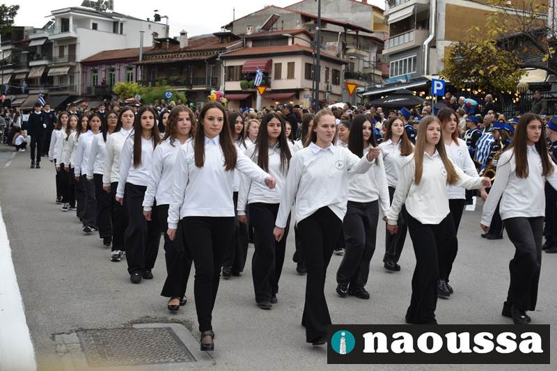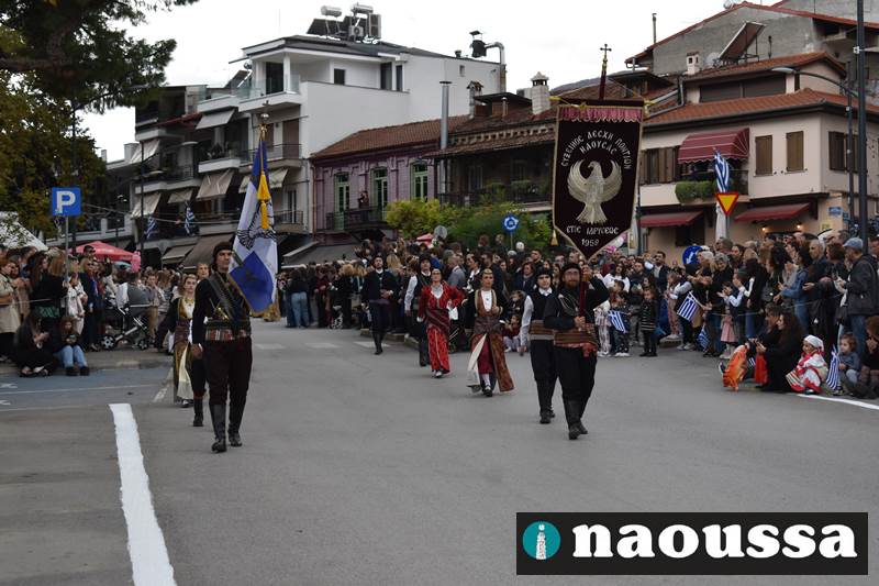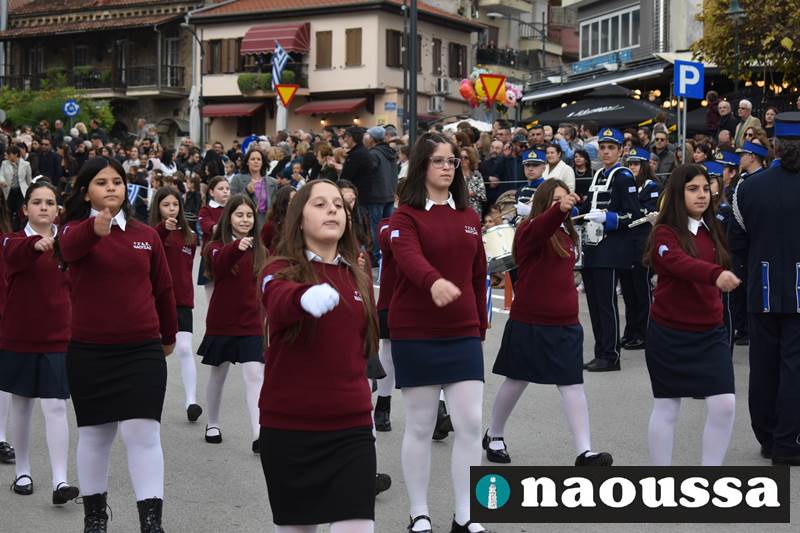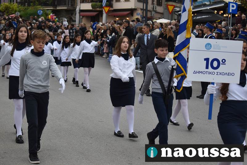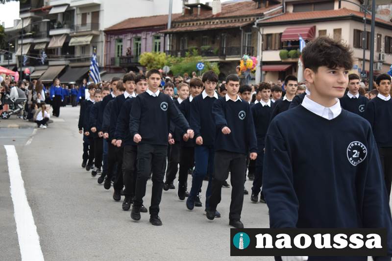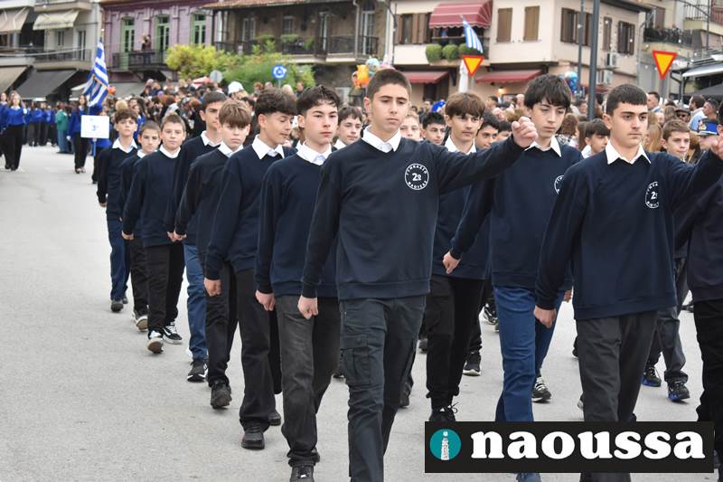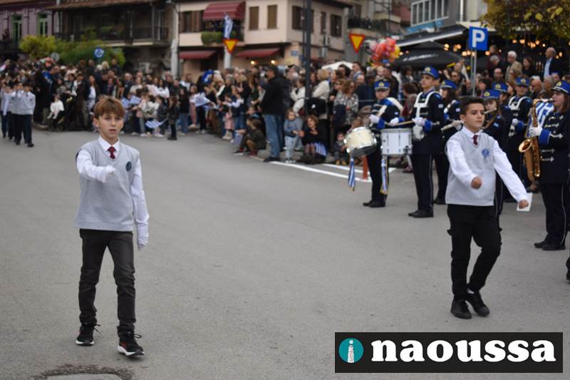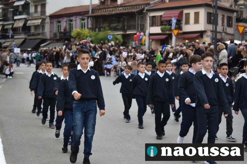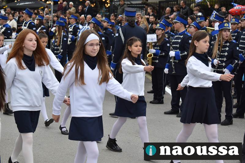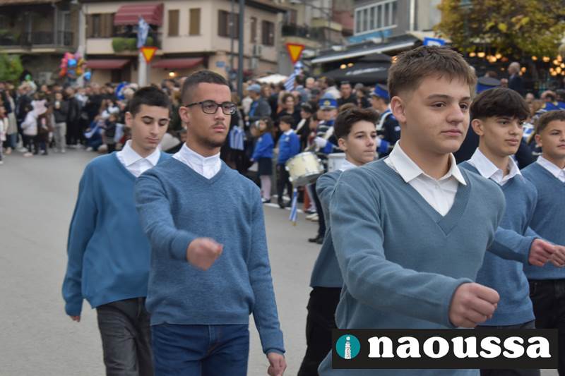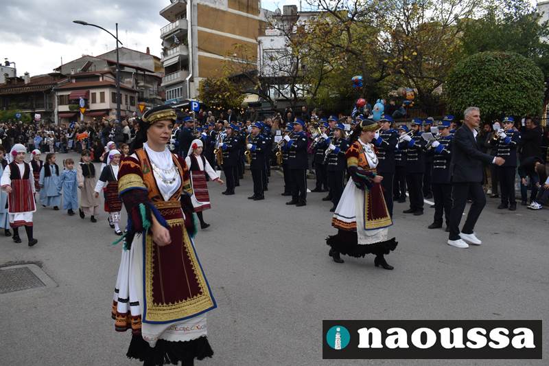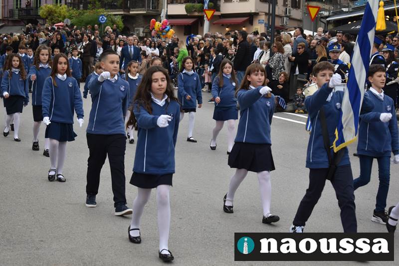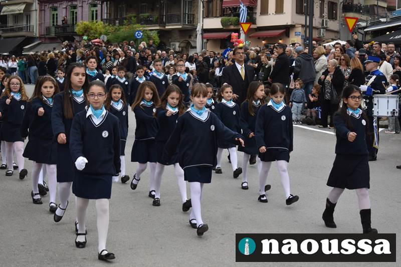 Μαθητές των δημοτικών, των γυμνασίων, των λυκείων αλλά και πολιτιστικοί σύλλογοι παρήλασαν καταχειροκροτούμενοι από τους κατοίκους της Νάουσας, τιμώντας τους ήρωες της 28ης Οκτωβρίου