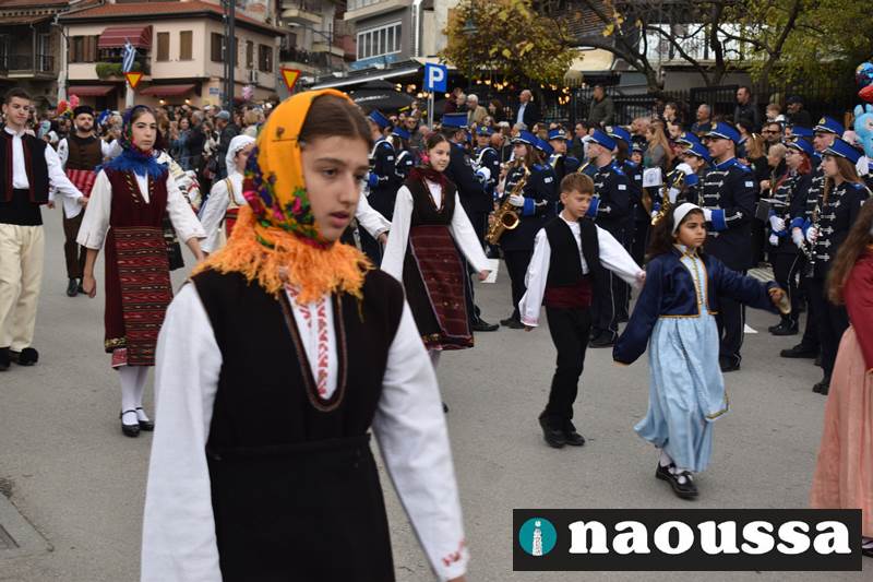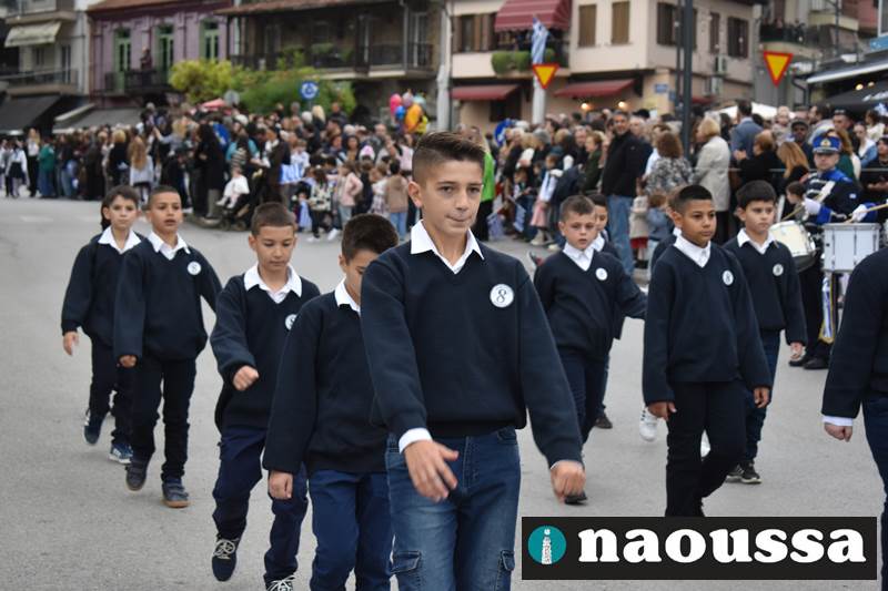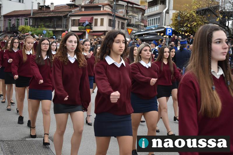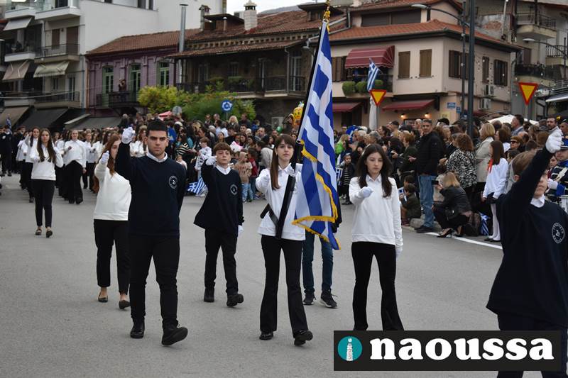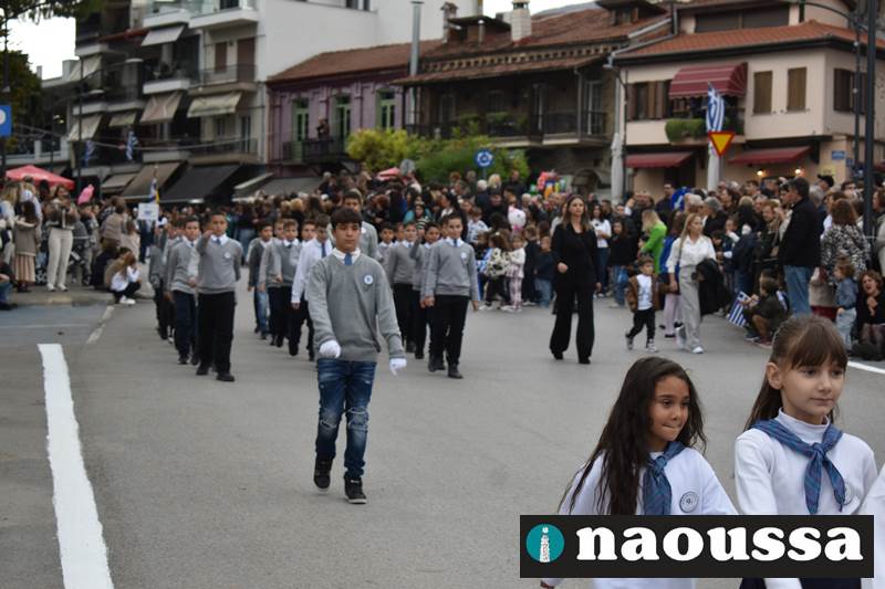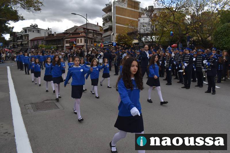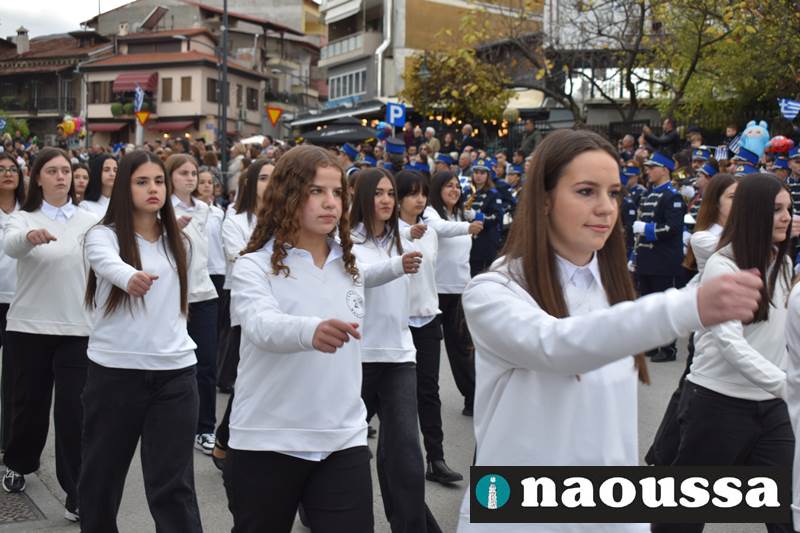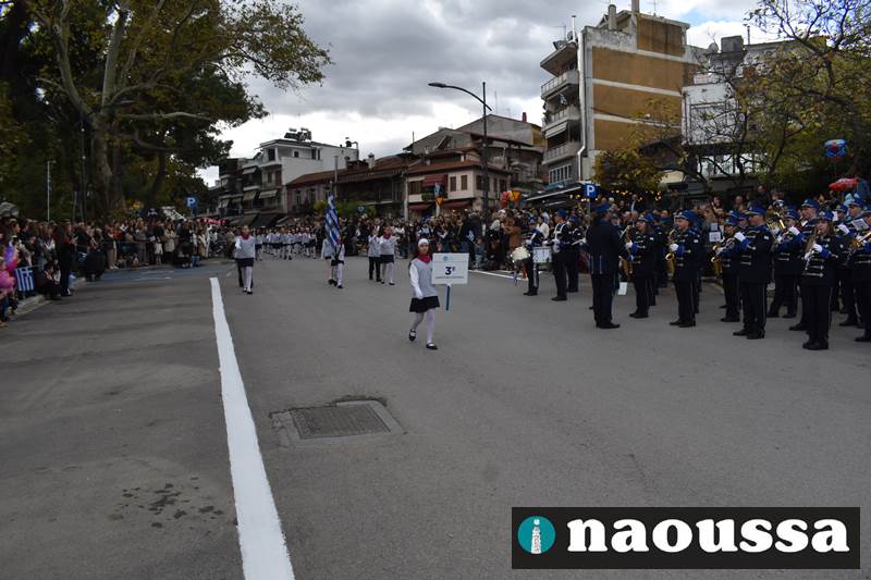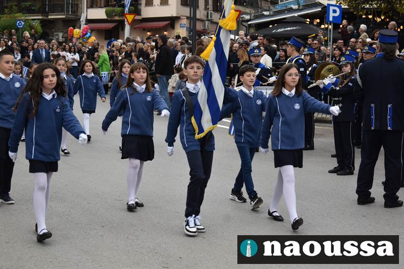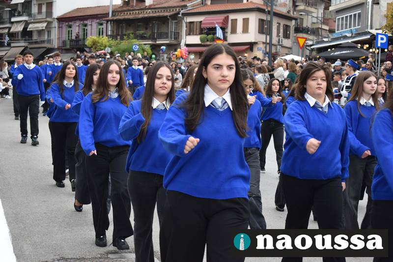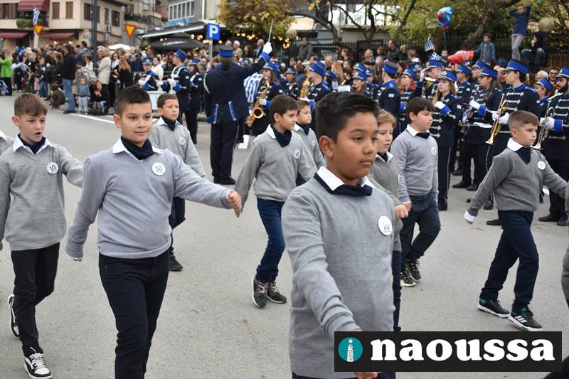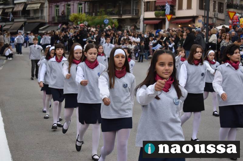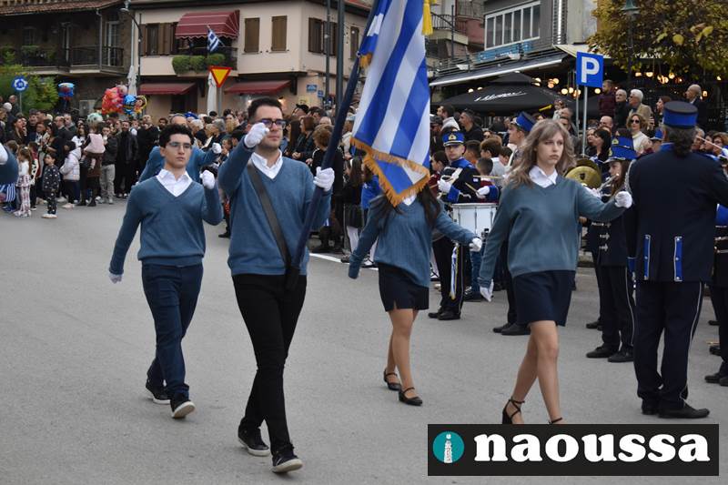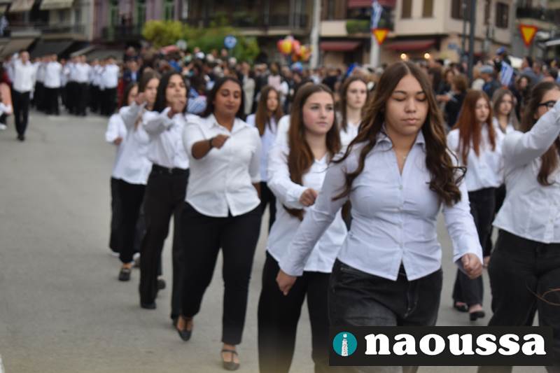 Μαθητές των δημοτικών, των γυμνασίων, των λυκείων αλλά και πολιτιστικοί σύλλογοι παρήλασαν καταχειροκροτούμενοι από τους κατοίκους της Νάουσας, τιμώντας τους ήρωες της 28ης Οκτωβρίου