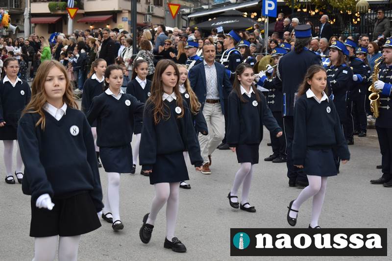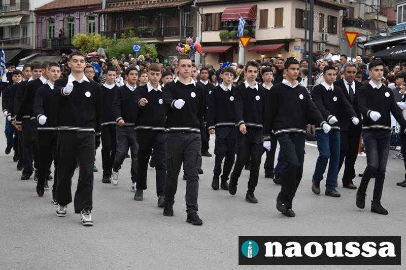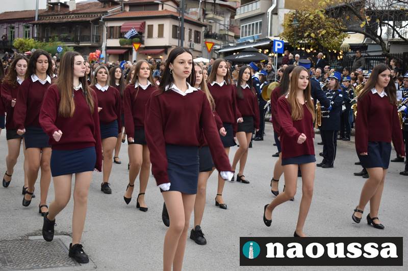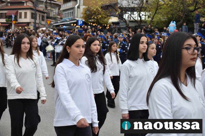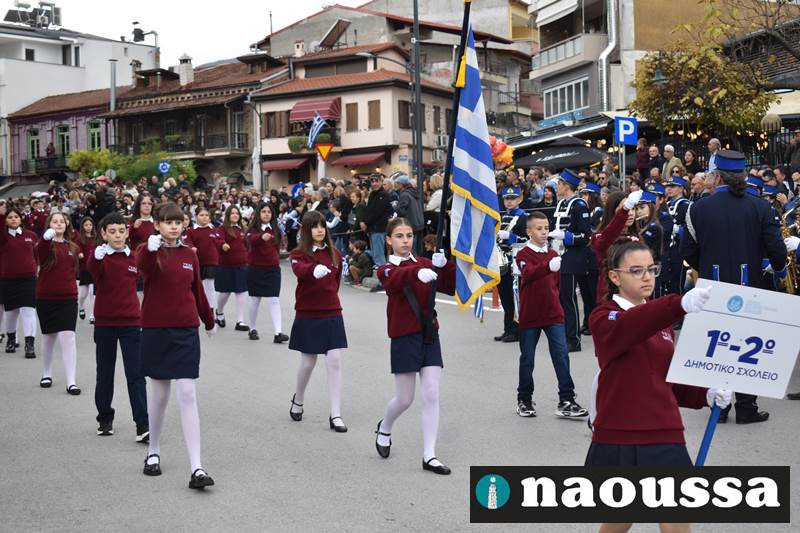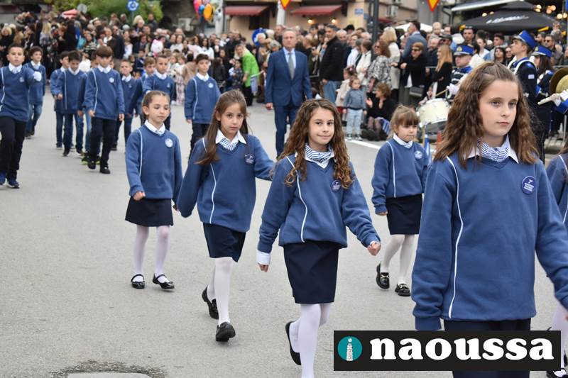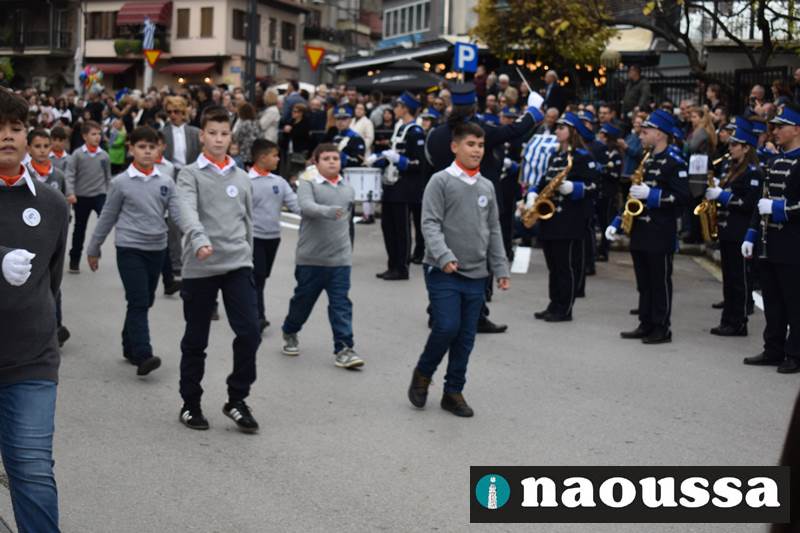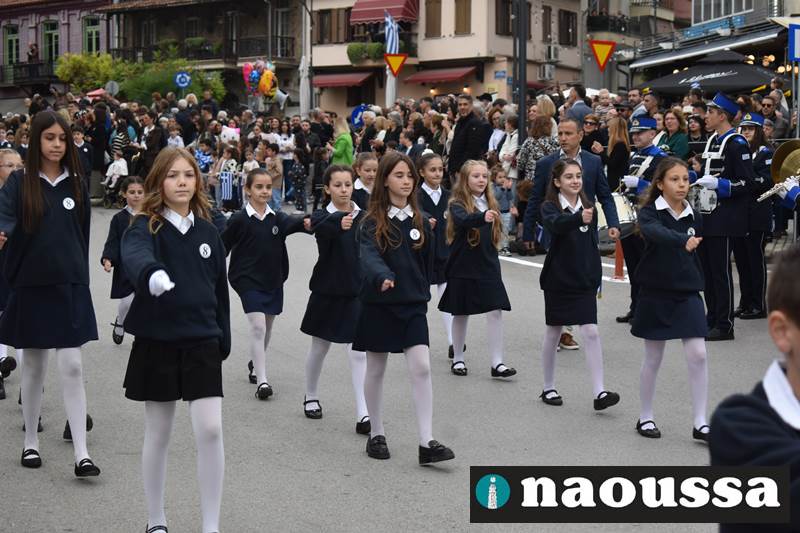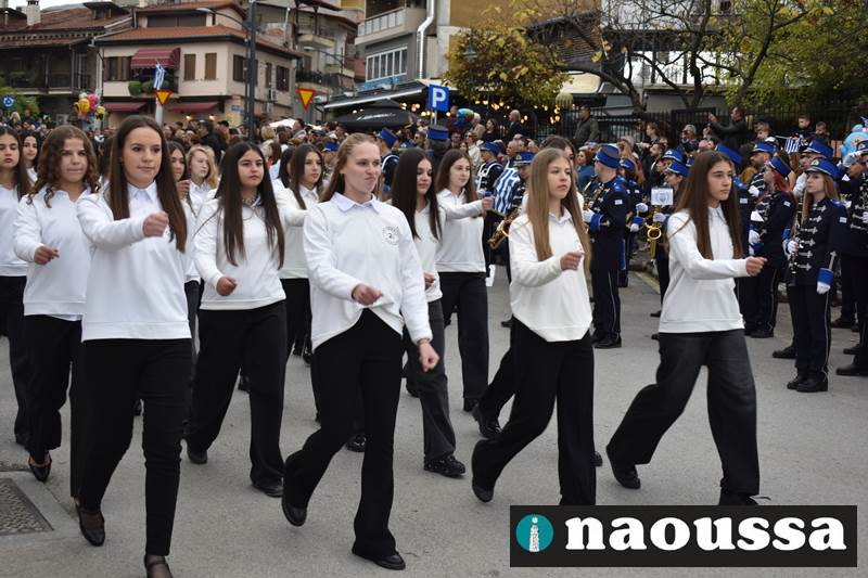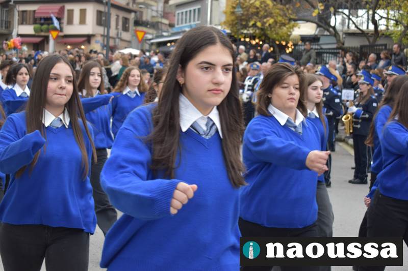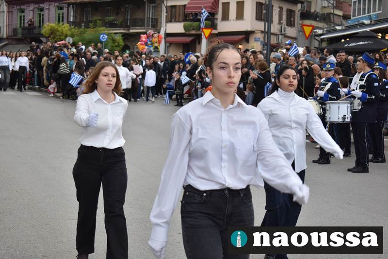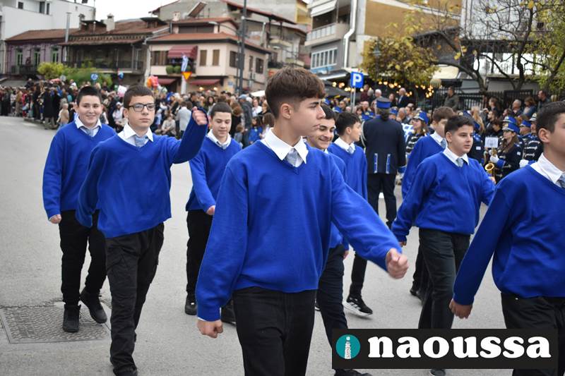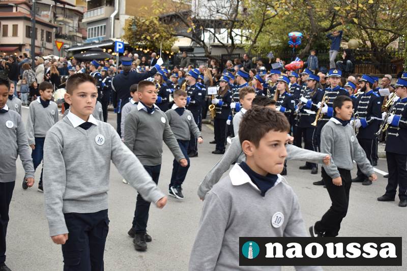 Μαθητές των δημοτικών, των γυμνασίων, των λυκείων αλλά και πολιτιστικοί σύλλογοι παρήλασαν καταχειροκροτούμενοι από τους κατοίκους της Νάουσας, τιμώντας τους ήρωες της 28ης Οκτωβρίου