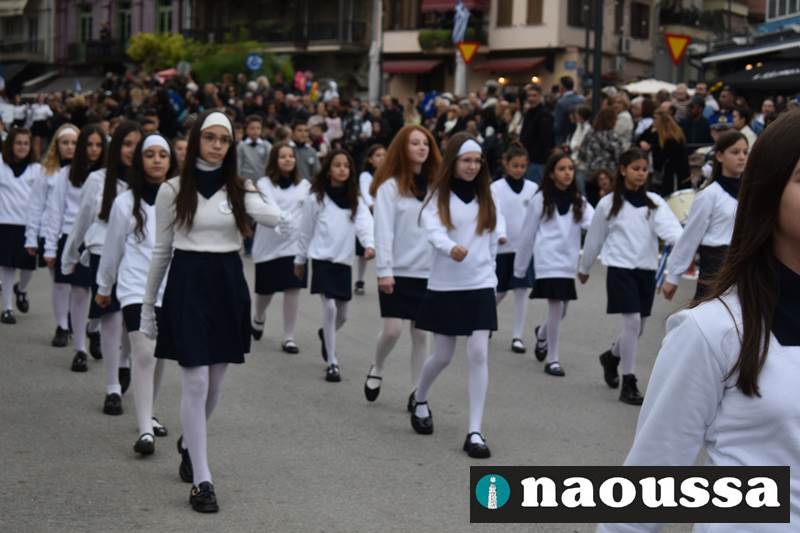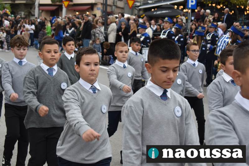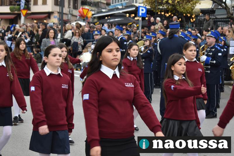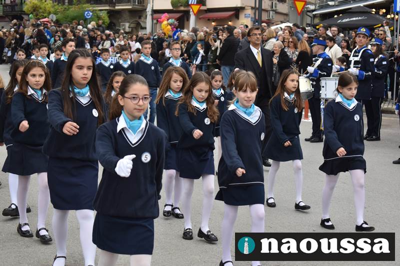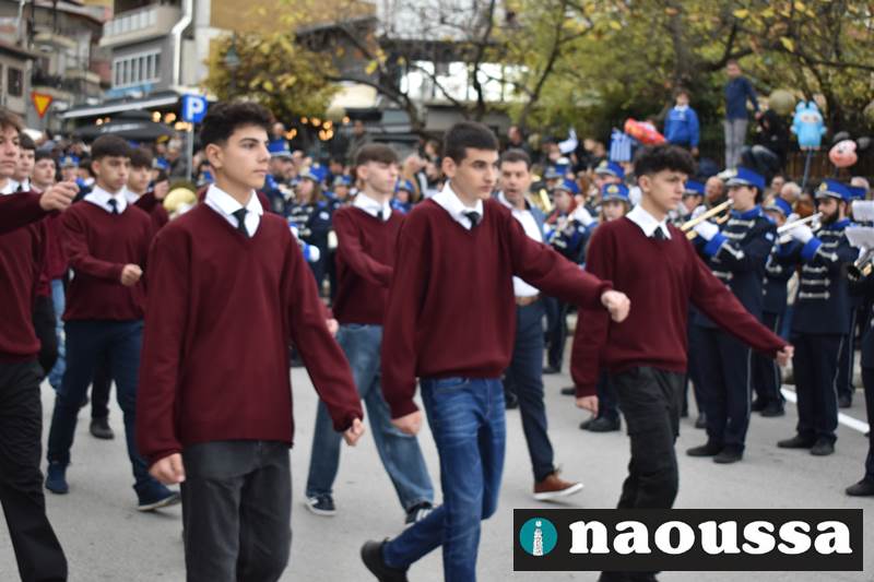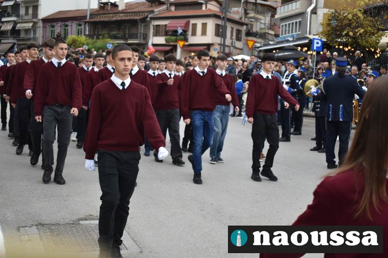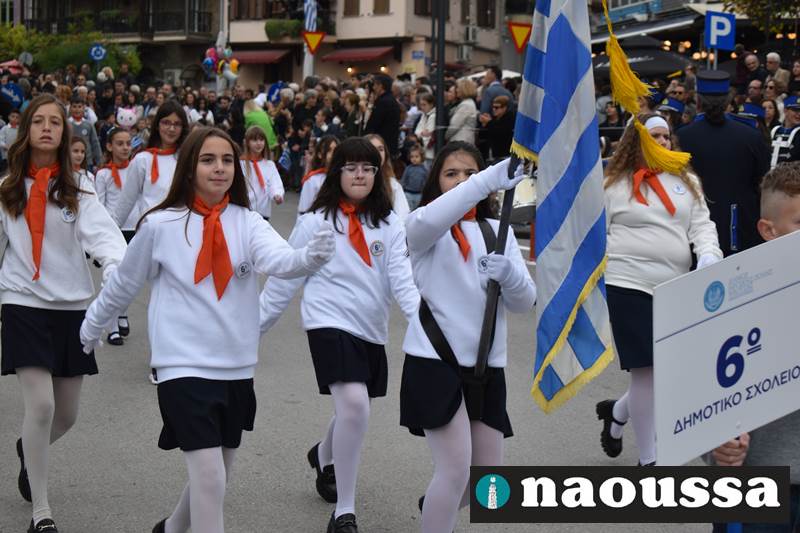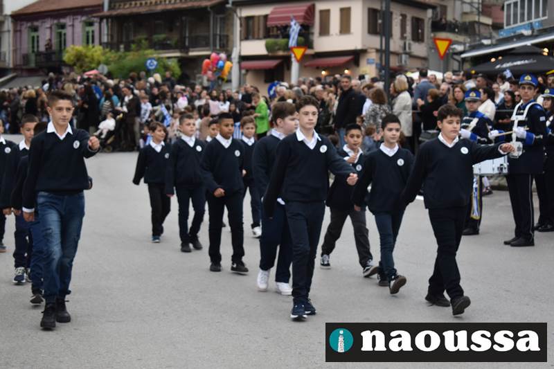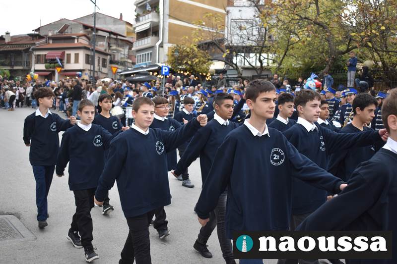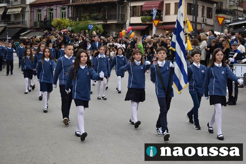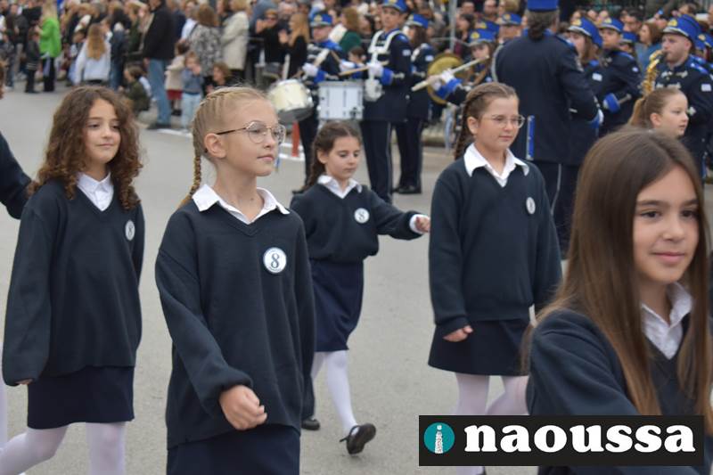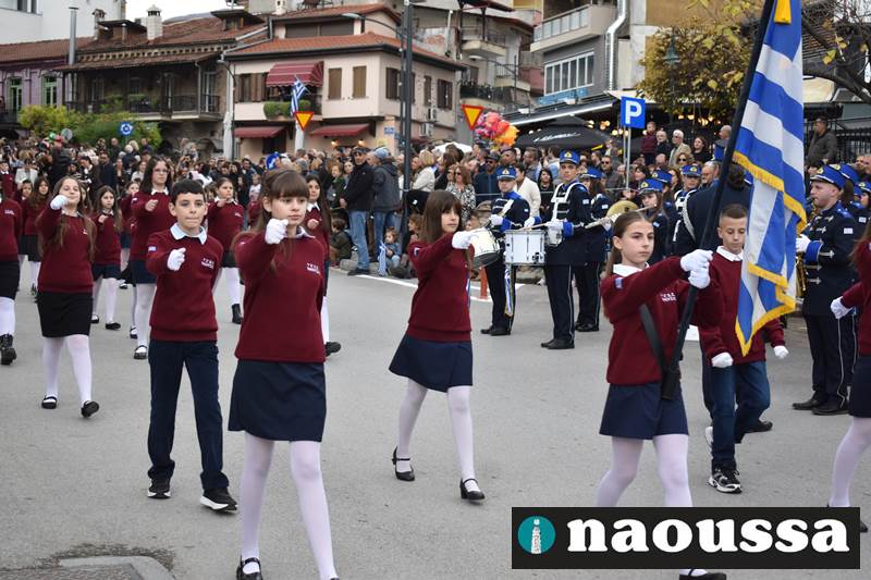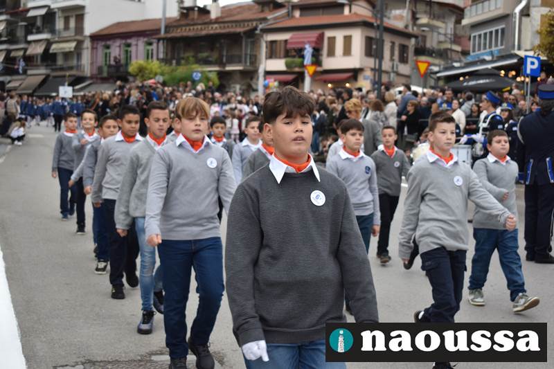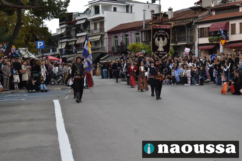 Μαθητές των δημοτικών, των γυμνασίων, των λυκείων αλλά και πολιτιστικοί σύλλογοι παρήλασαν καταχειροκροτούμενοι από τους κατοίκους της Νάουσας, τιμώντας τους ήρωες της 28ης Οκτωβρίου