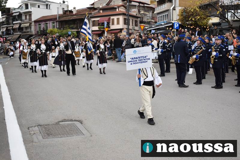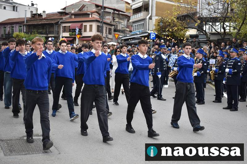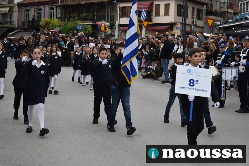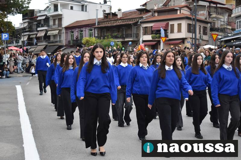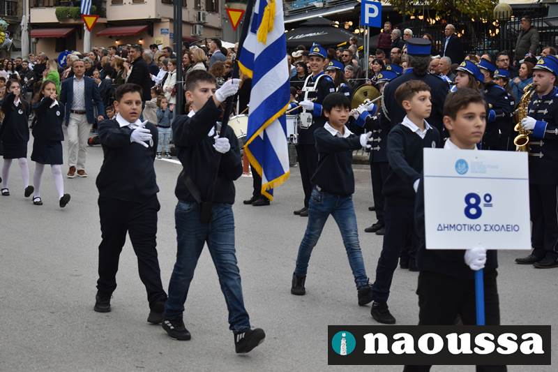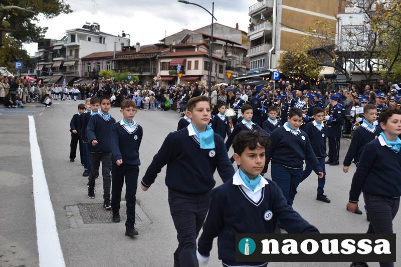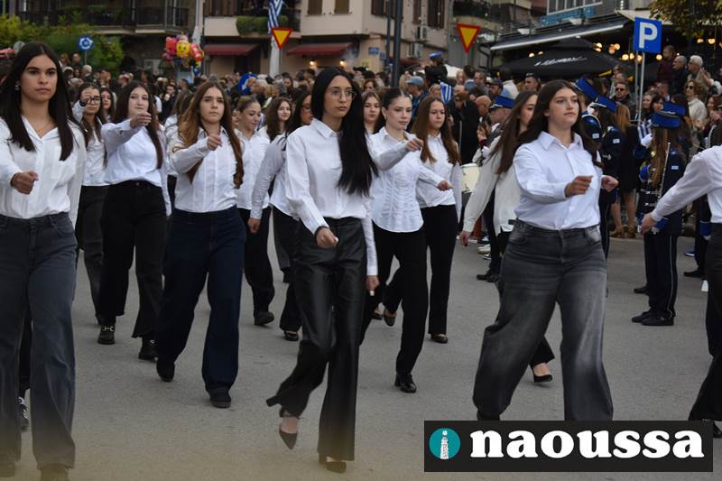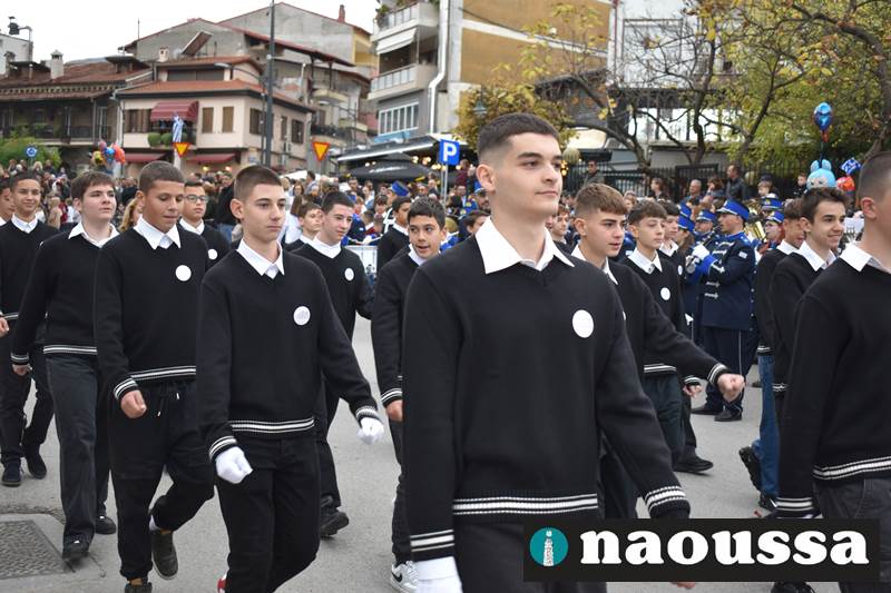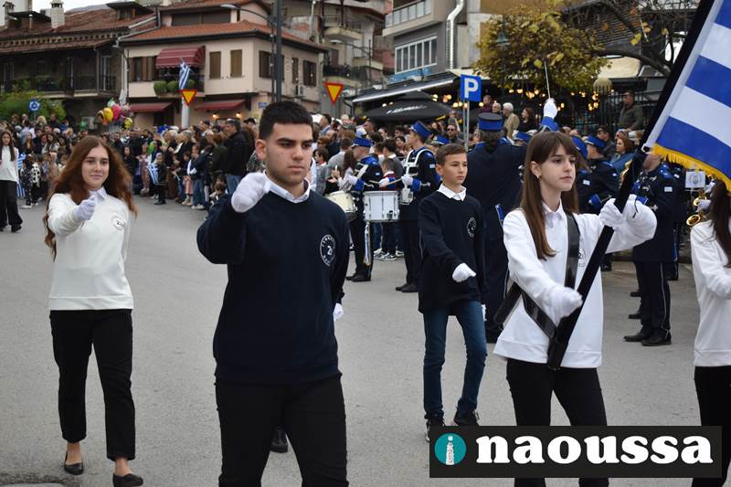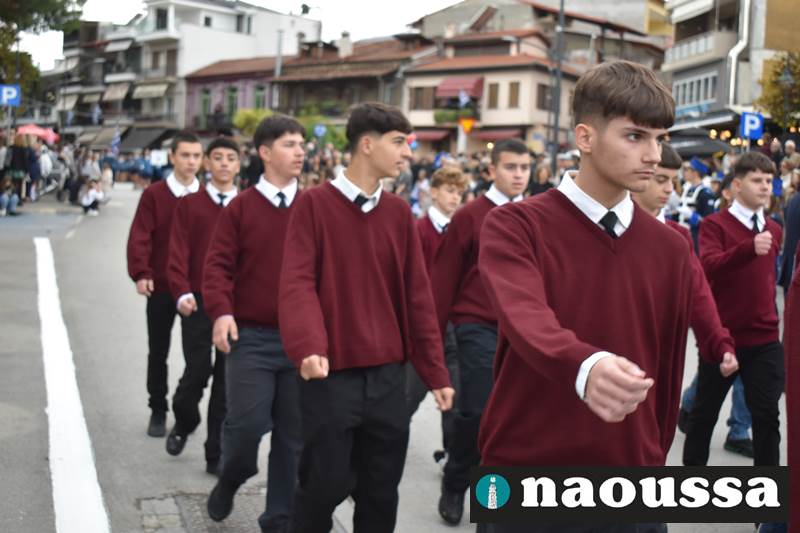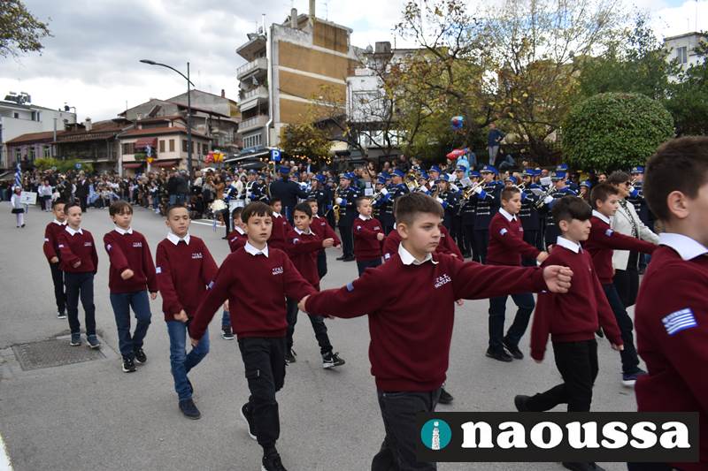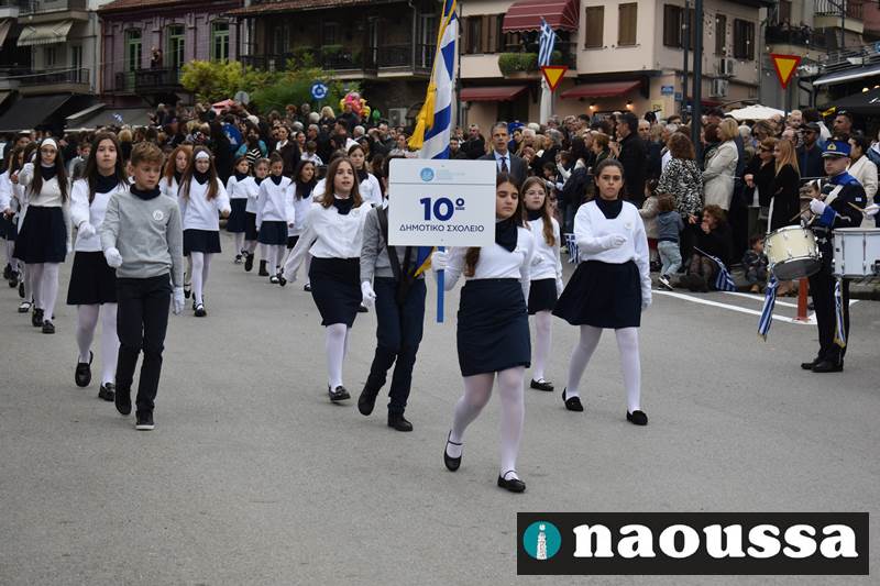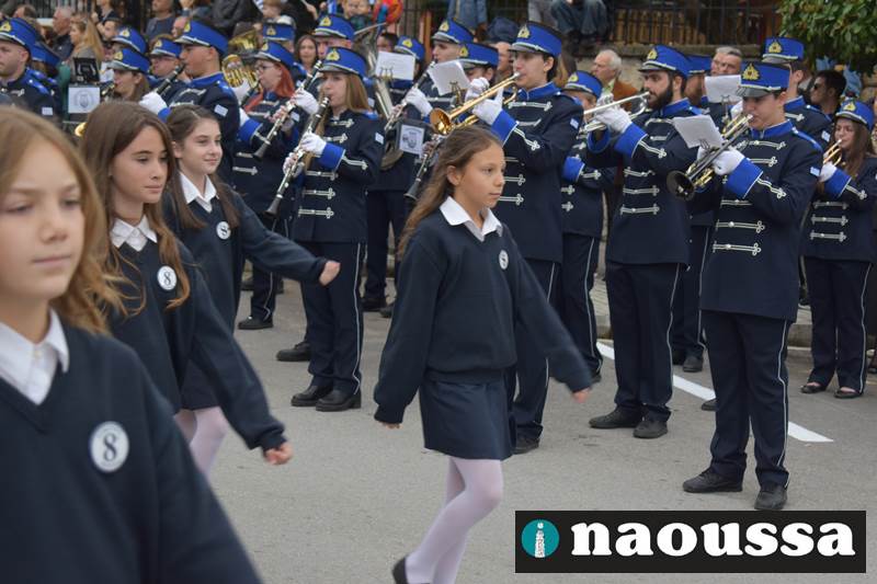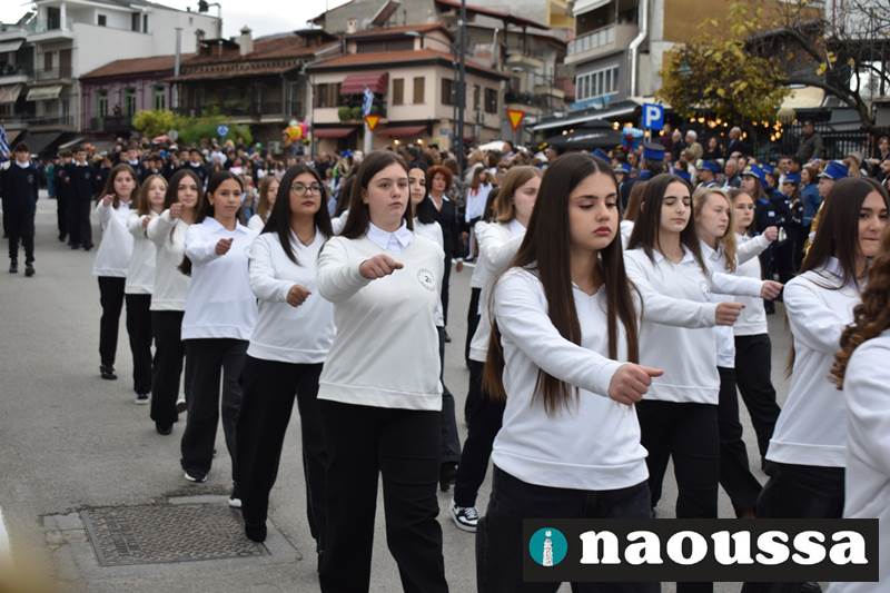 Μαθητές των δημοτικών, των γυμνασίων, των λυκείων αλλά και πολιτιστικοί σύλλογοι παρήλασαν καταχειροκροτούμενοι από τους κατοίκους της Νάουσας, τιμώντας τους ήρωες της 28ης Οκτωβρίου