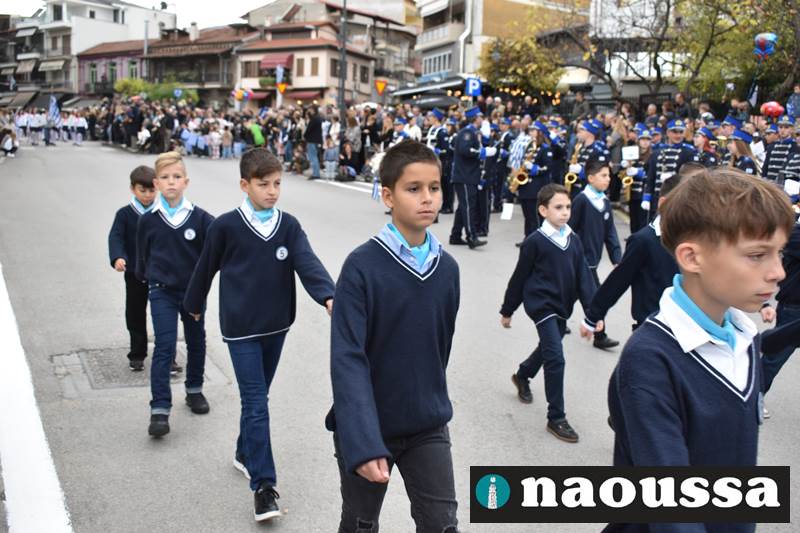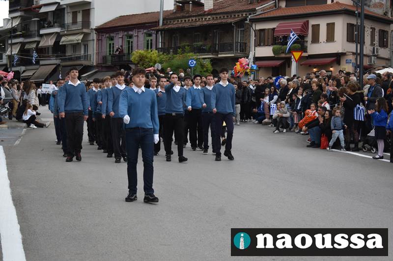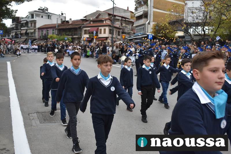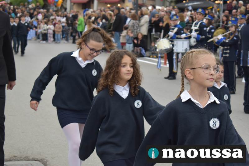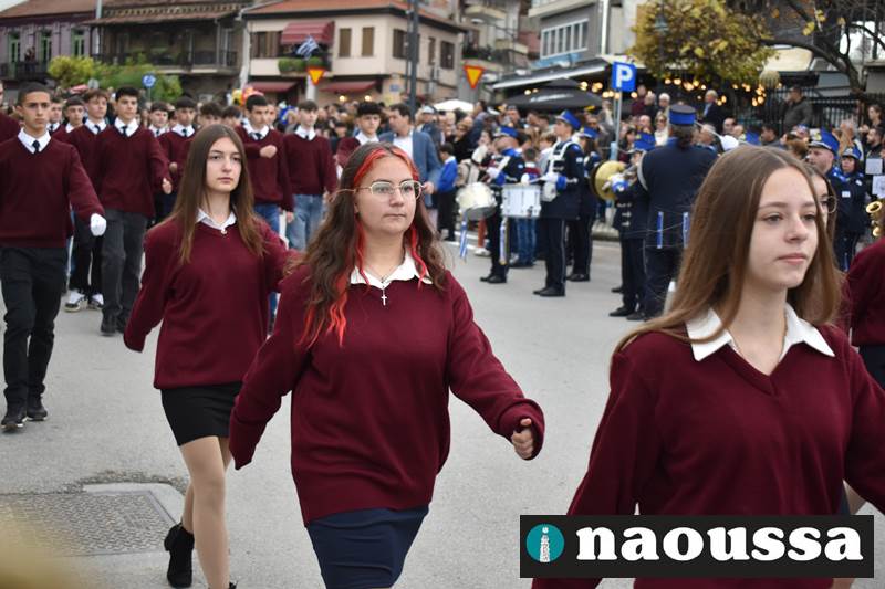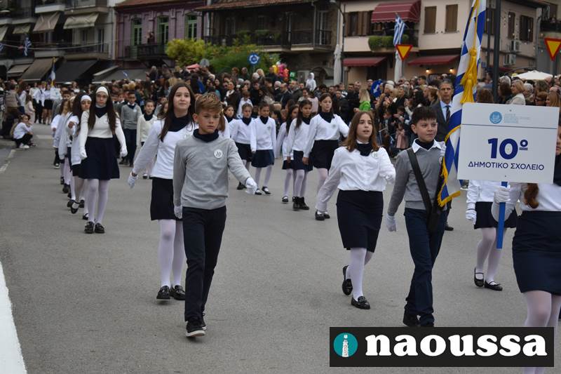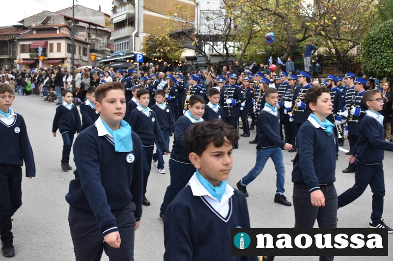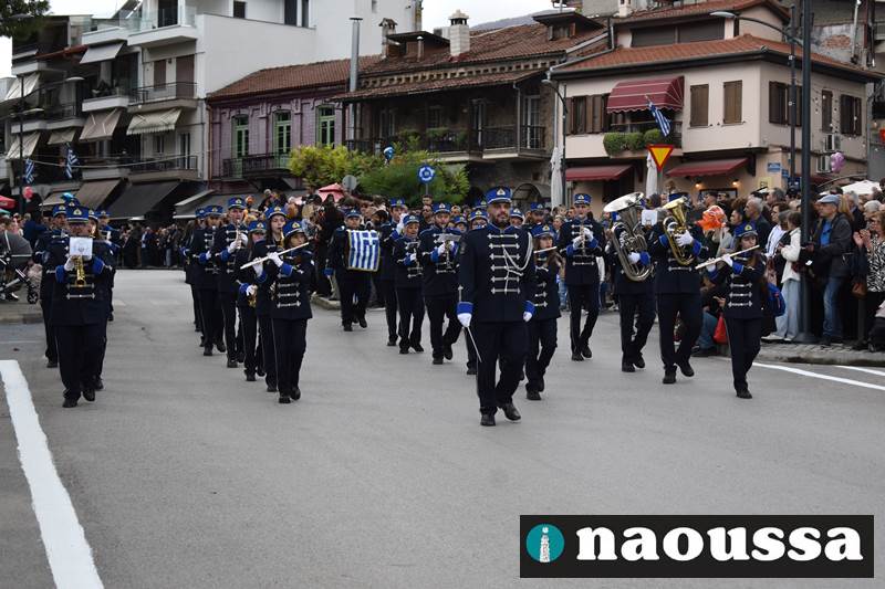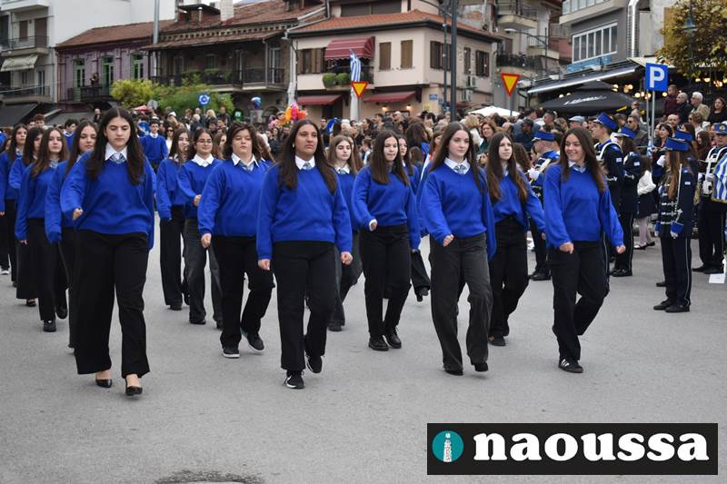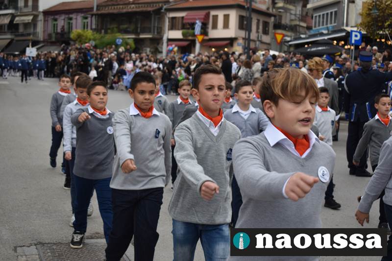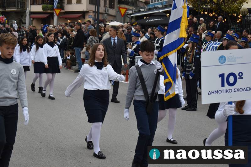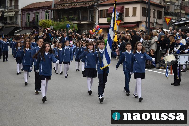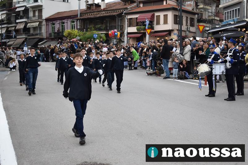 Μαθητές των δημοτικών, των γυμνασίων, των λυκείων αλλά και πολιτιστικοί σύλλογοι παρήλασαν καταχειροκροτούμενοι από τους κατοίκους της Νάουσας, τιμώντας τους ήρωες της 28ης Οκτωβρίου