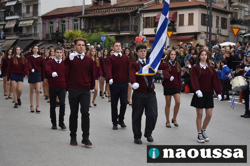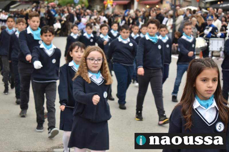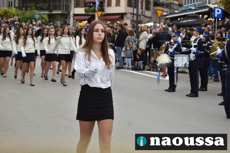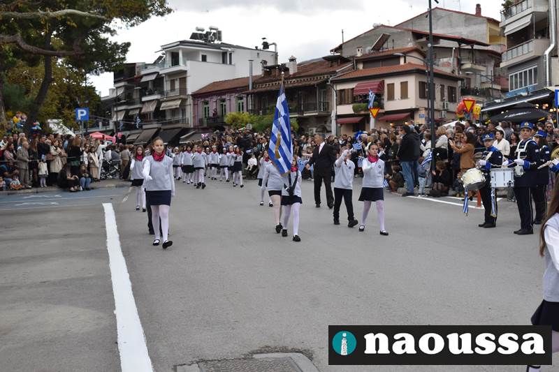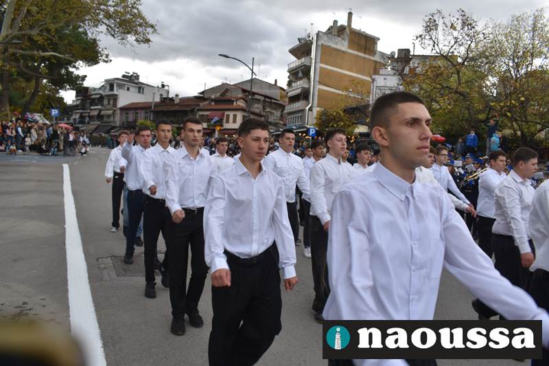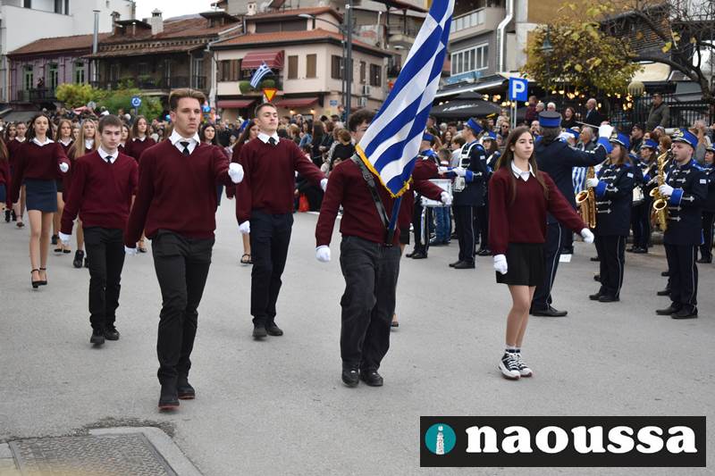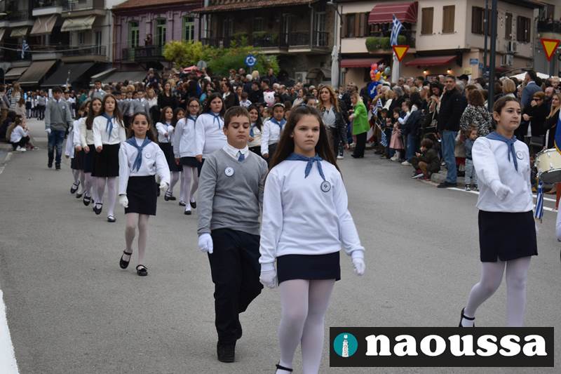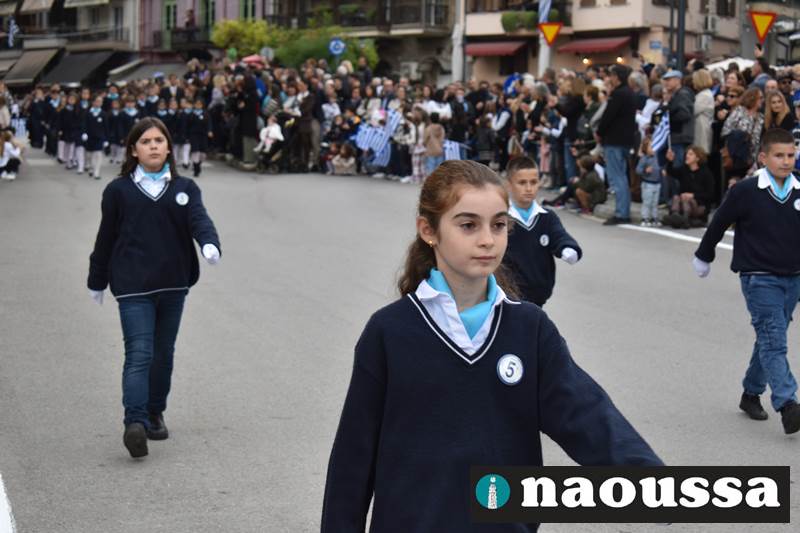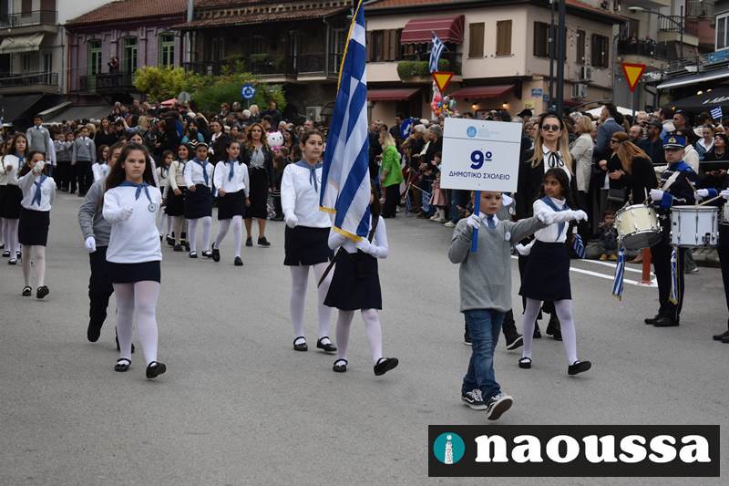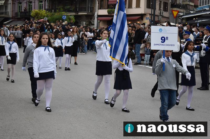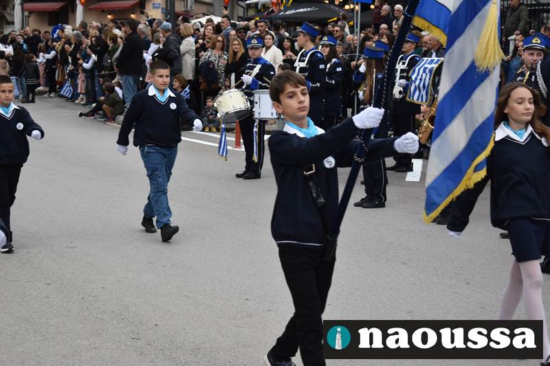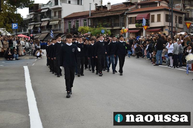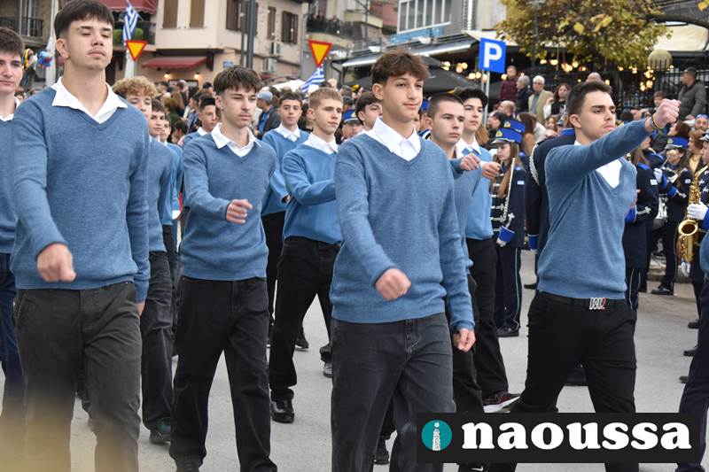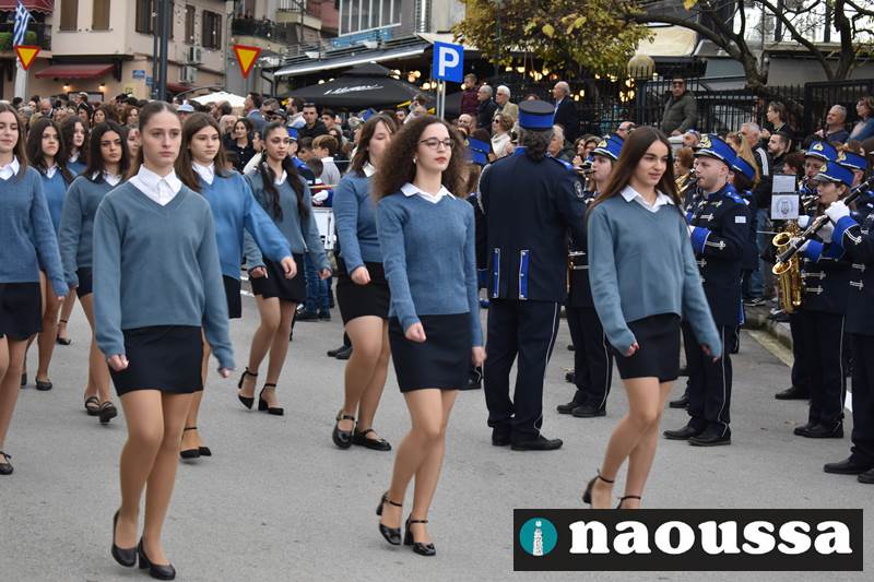 Μαθητές των δημοτικών, των γυμνασίων, των λυκείων αλλά και πολιτιστικοί σύλλογοι παρήλασαν καταχειροκροτούμενοι από τους κατοίκους της Νάουσας, τιμώντας τους ήρωες της 28ης Οκτωβρίου