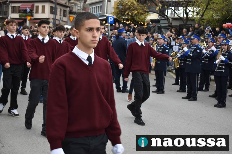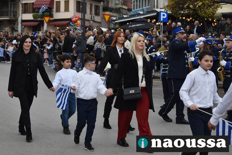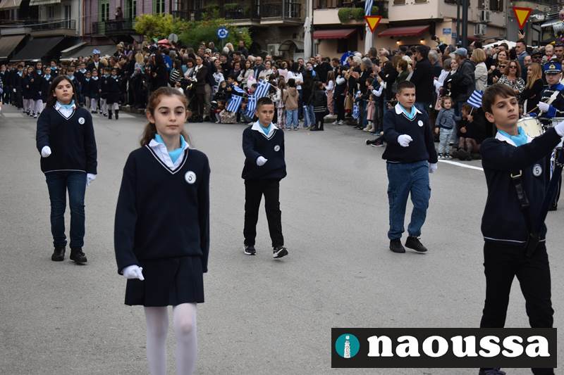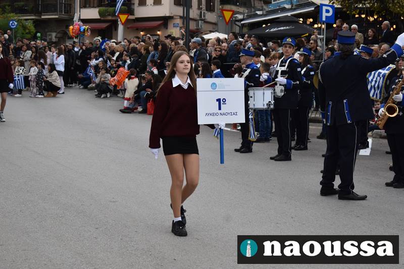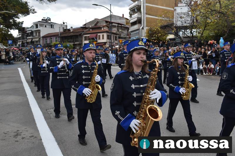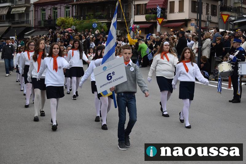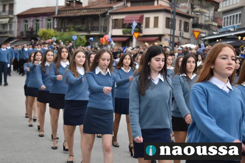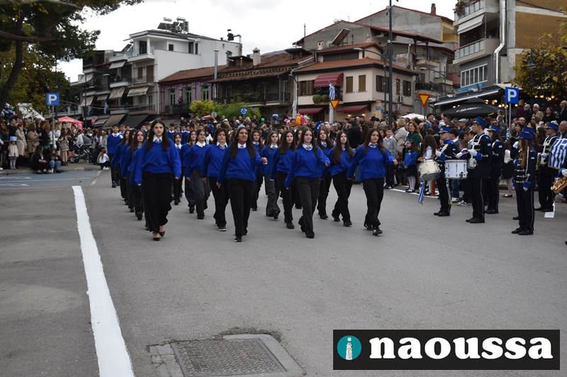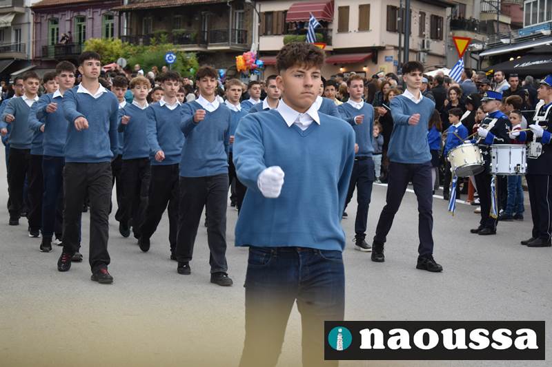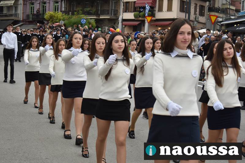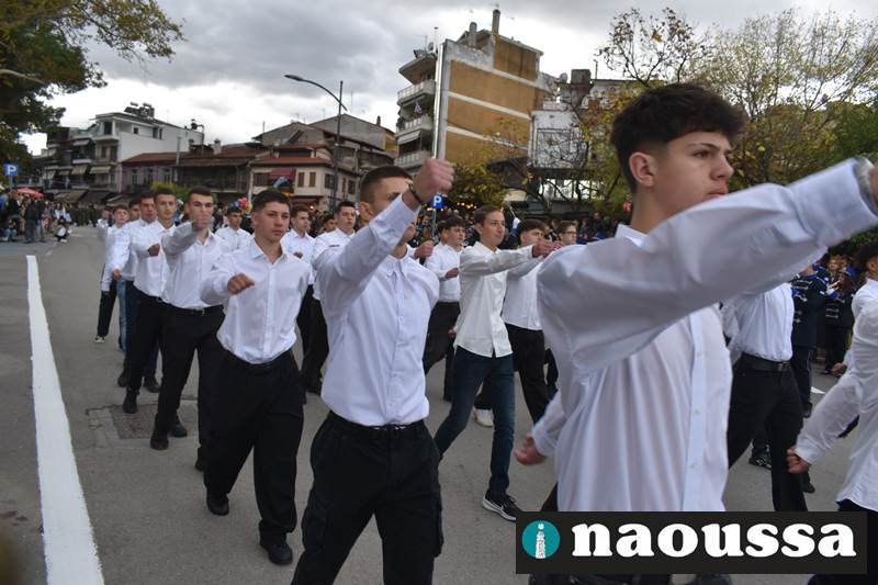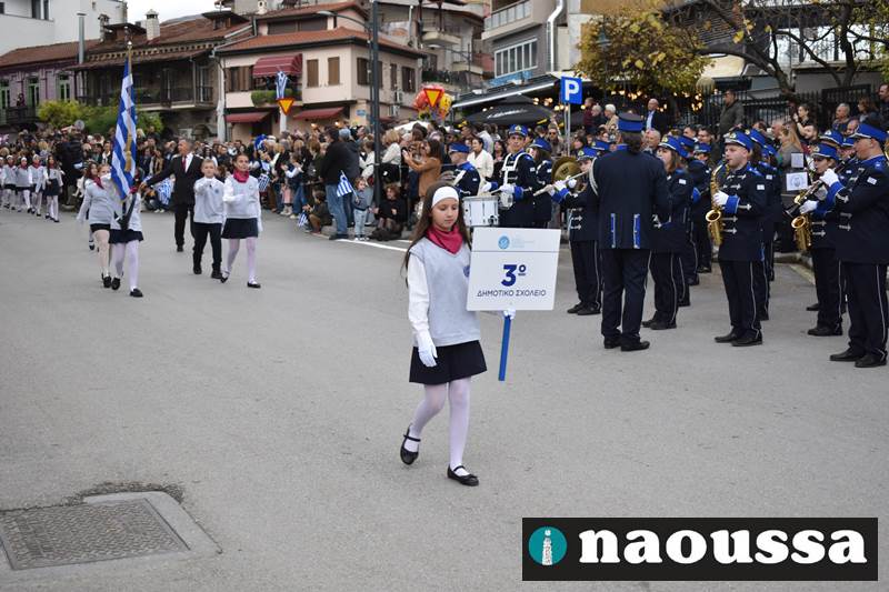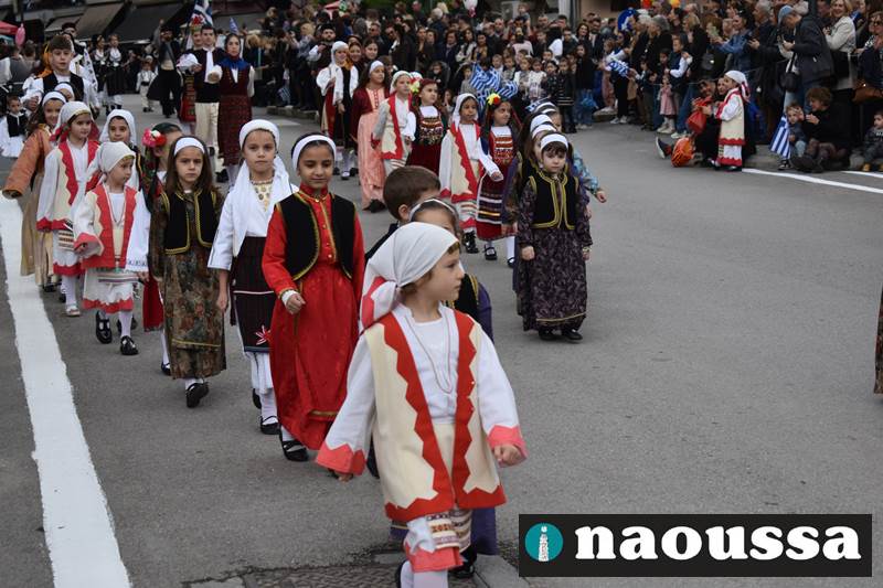 Μαθητές των δημοτικών, των γυμνασίων, των λυκείων αλλά και πολιτιστικοί σύλλογοι παρήλασαν καταχειροκροτούμενοι από τους κατοίκους της Νάουσας, τιμώντας τους ήρωες της 28ης Οκτωβρίου