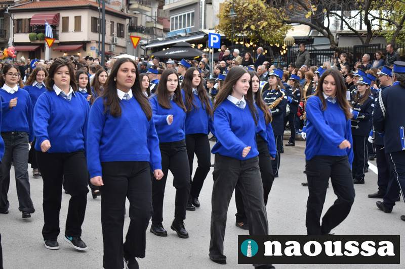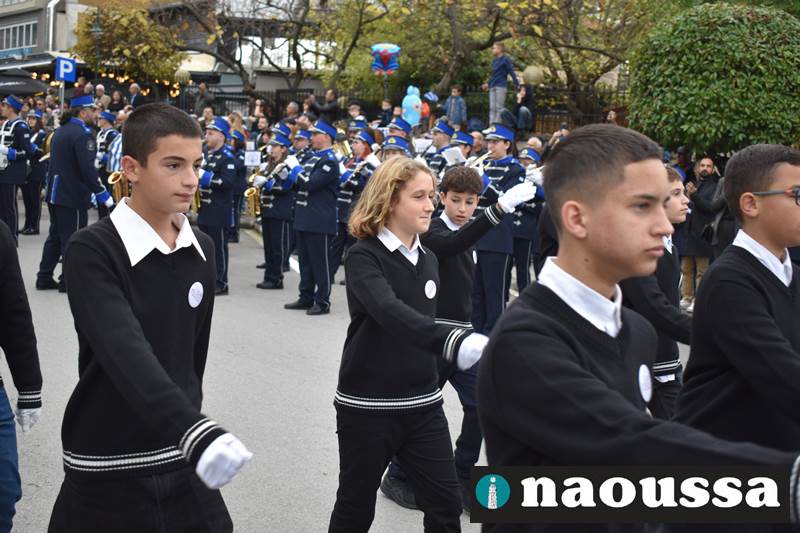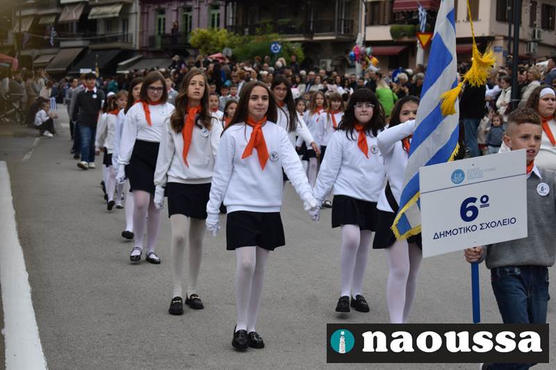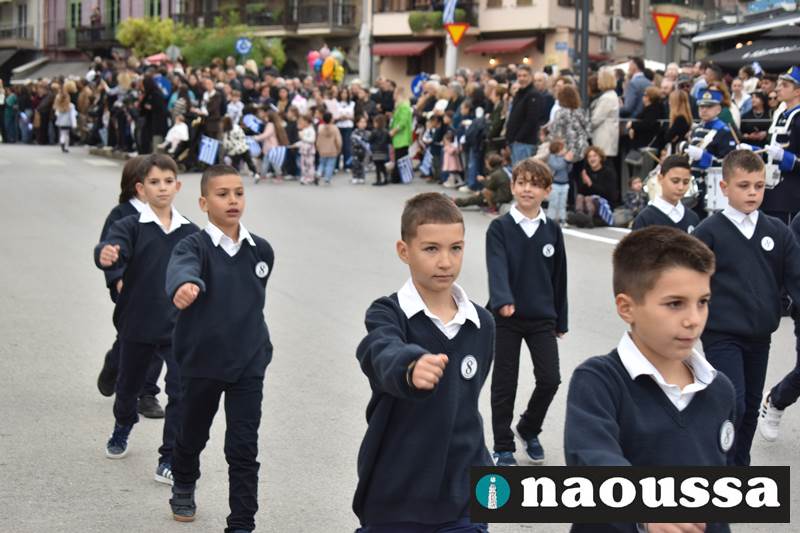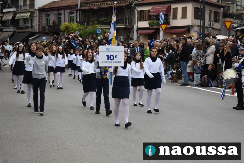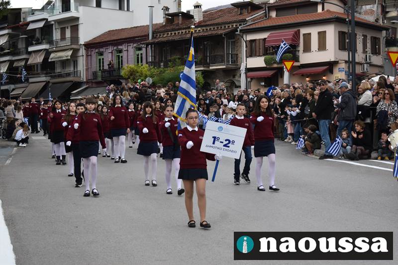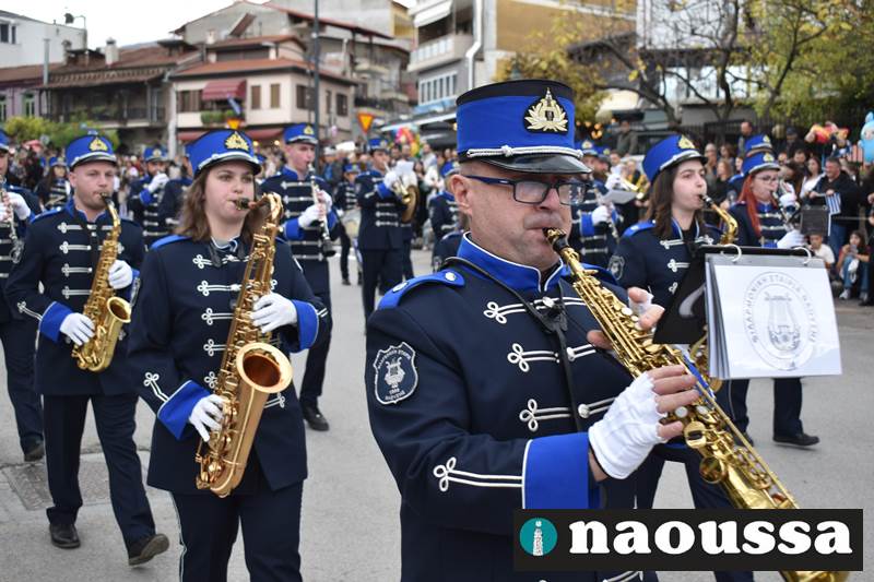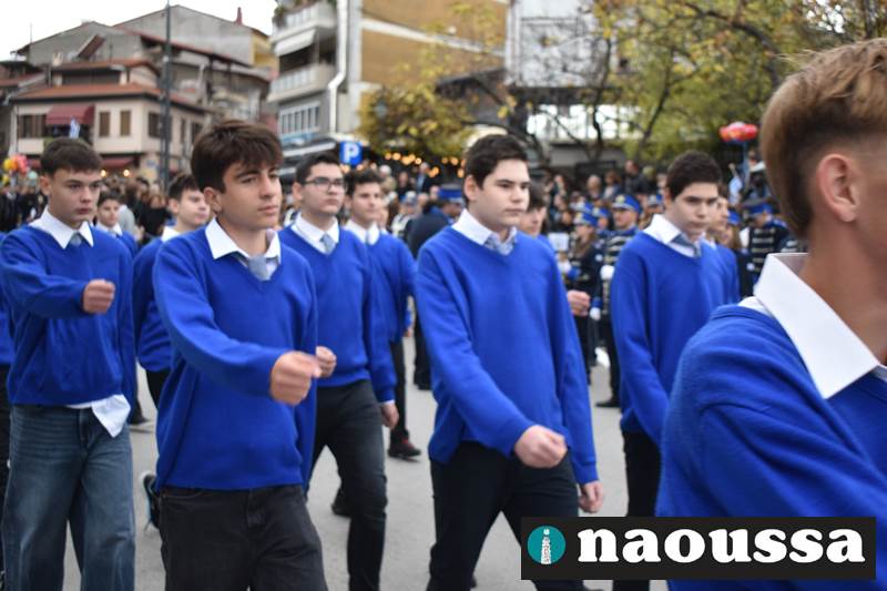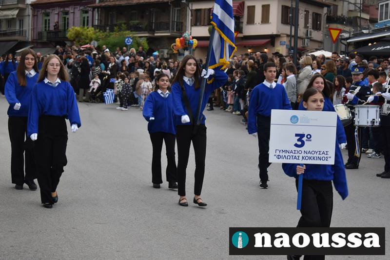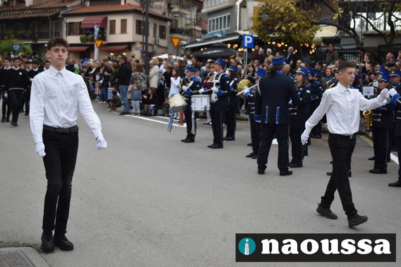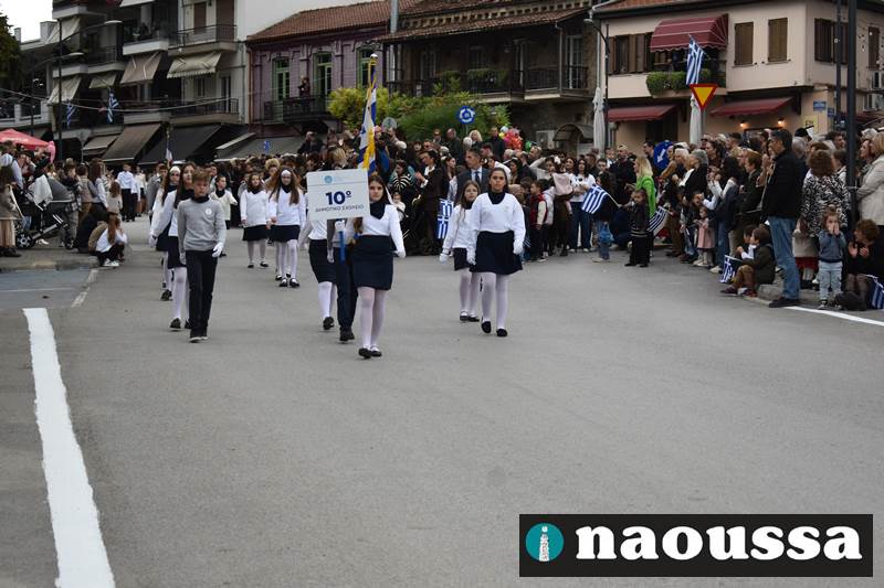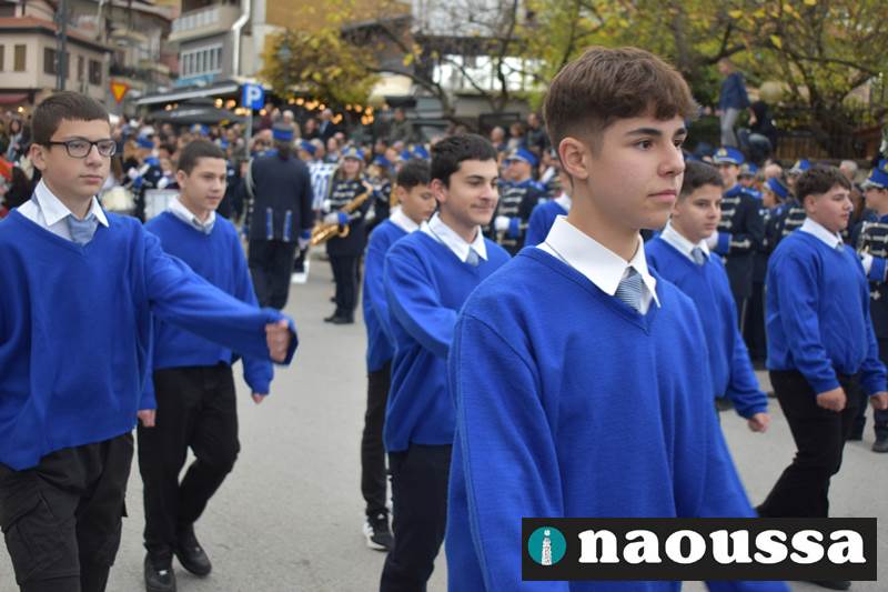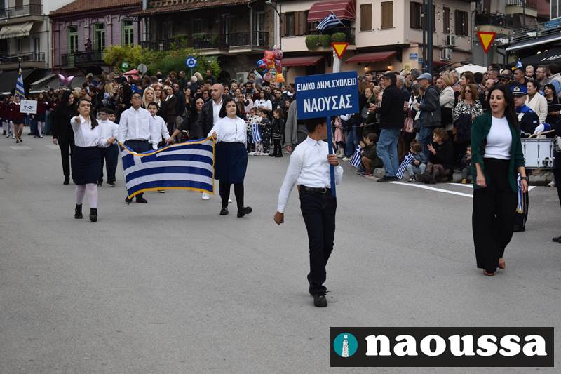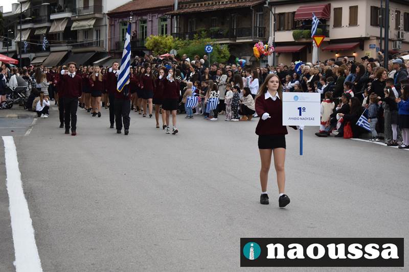 Μαθητές των δημοτικών, των γυμνασίων, των λυκείων αλλά και πολιτιστικοί σύλλογοι παρήλασαν καταχειροκροτούμενοι από τους κατοίκους της Νάουσας, τιμώντας τους ήρωες της 28ης Οκτωβρίου