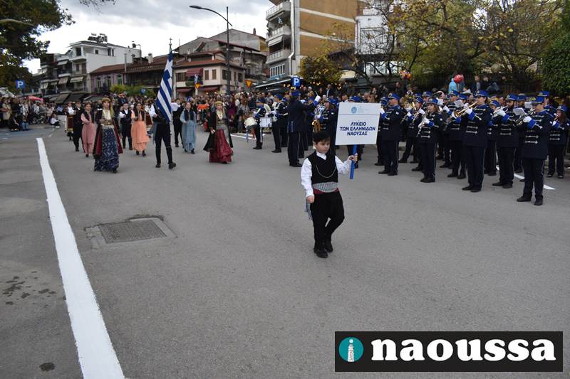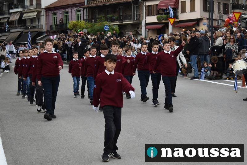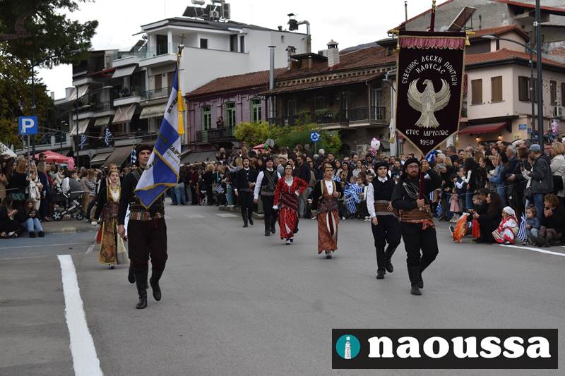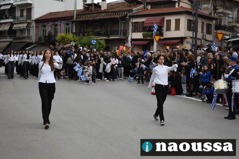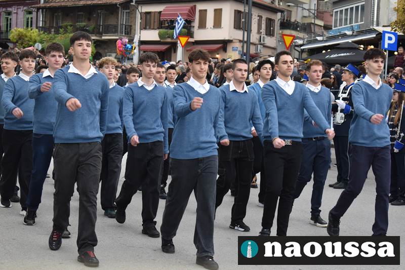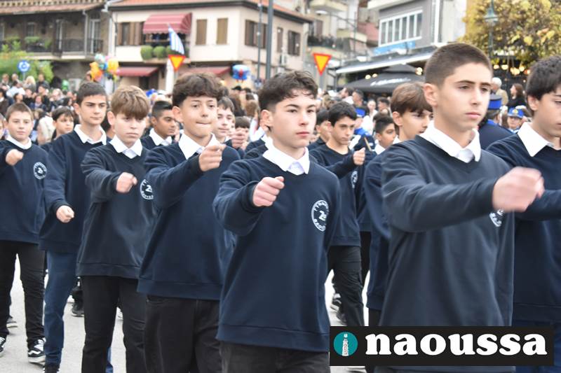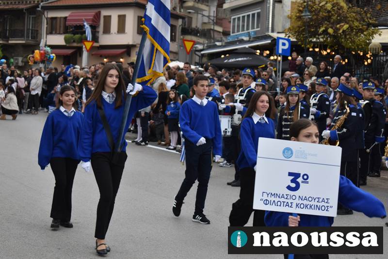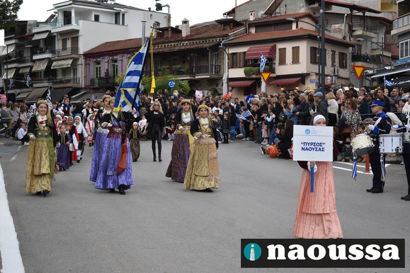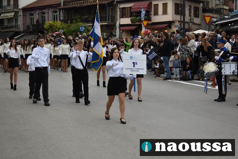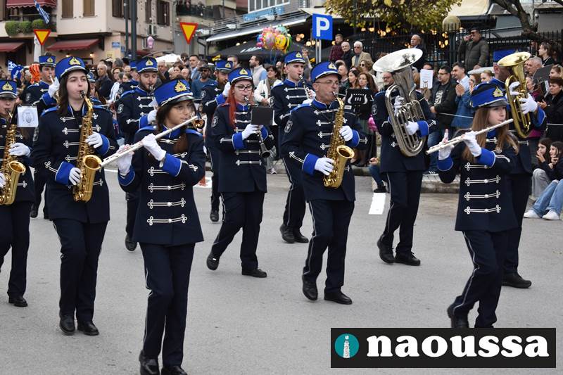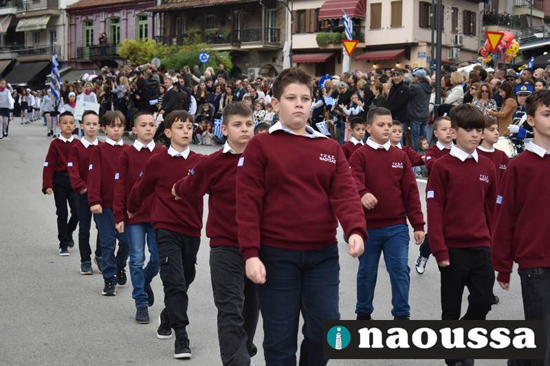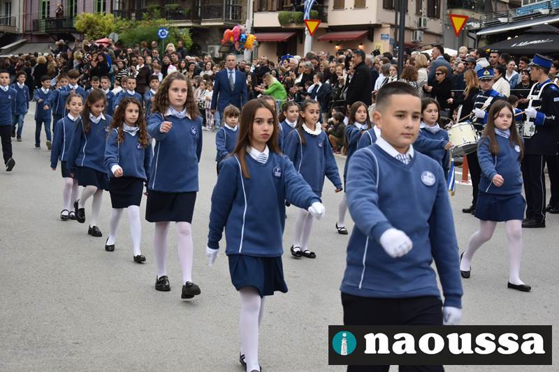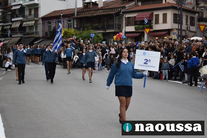 Μαθητές των δημοτικών, των γυμνασίων, των λυκείων αλλά και πολιτιστικοί σύλλογοι παρήλασαν καταχειροκροτούμενοι από τους κατοίκους της Νάουσας, τιμώντας τους ήρωες της 28ης Οκτωβρίου