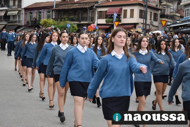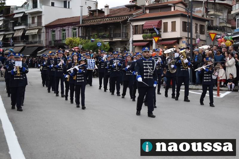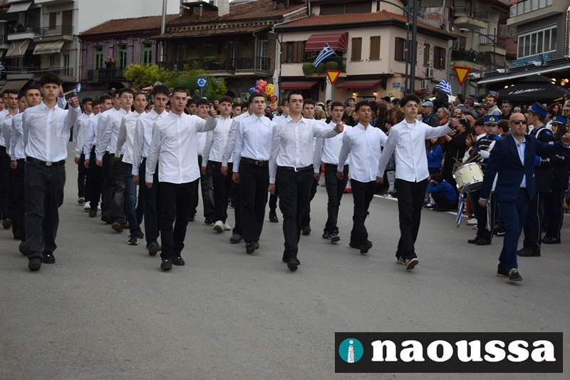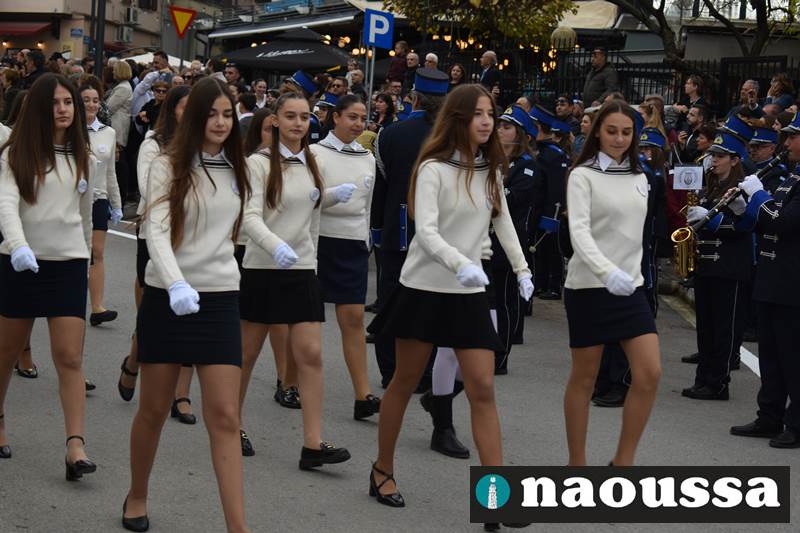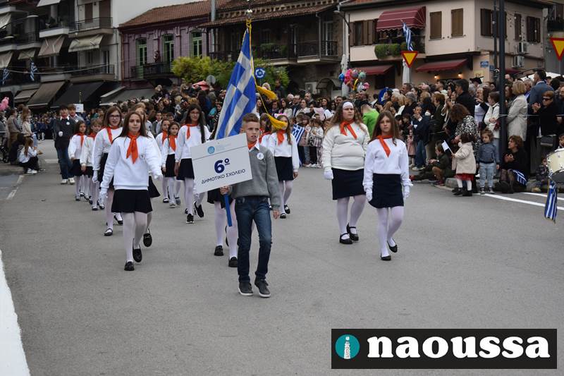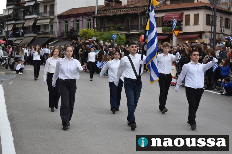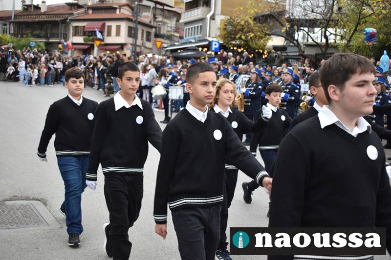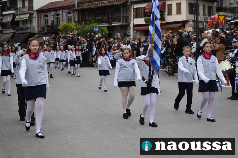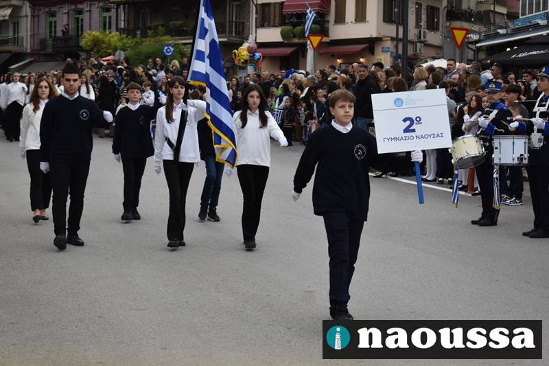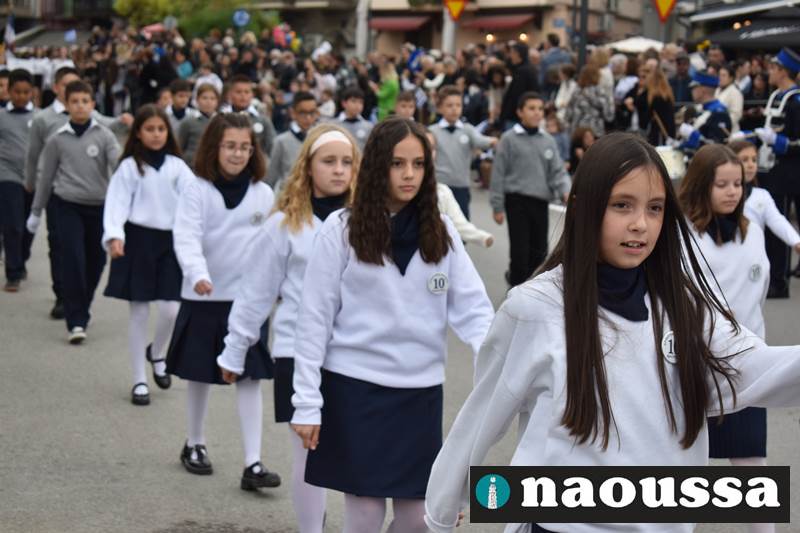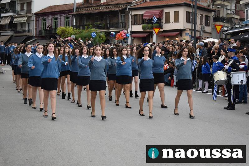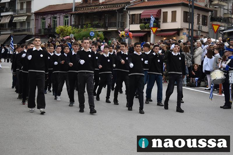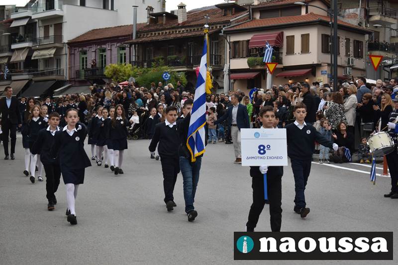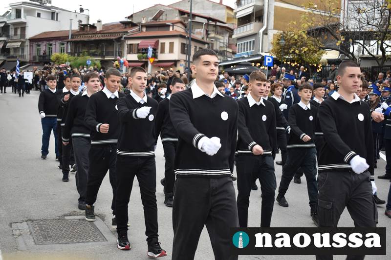 Μαθητές των δημοτικών, των γυμνασίων, των λυκείων αλλά και πολιτιστικοί σύλλογοι παρήλασαν καταχειροκροτούμενοι από τους κατοίκους της Νάουσας, τιμώντας τους ήρωες της 28ης Οκτωβρίου