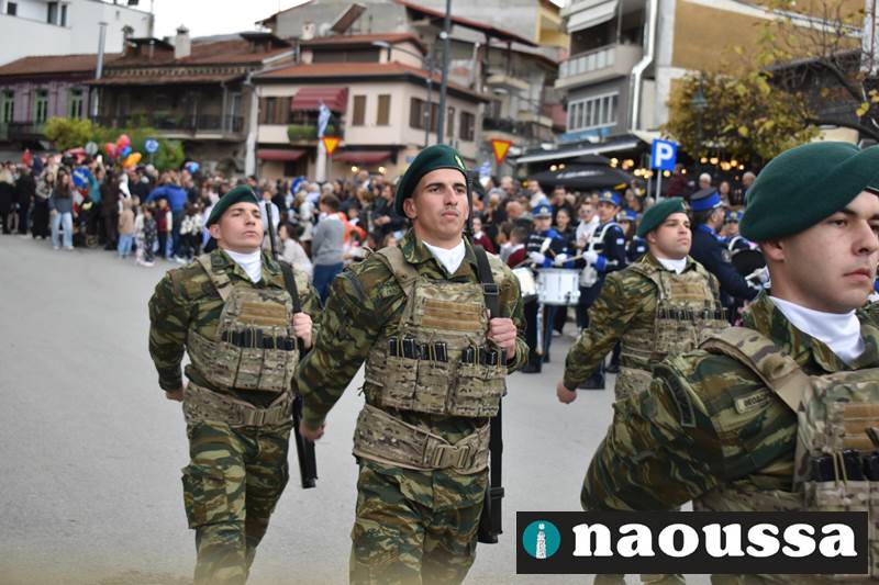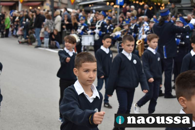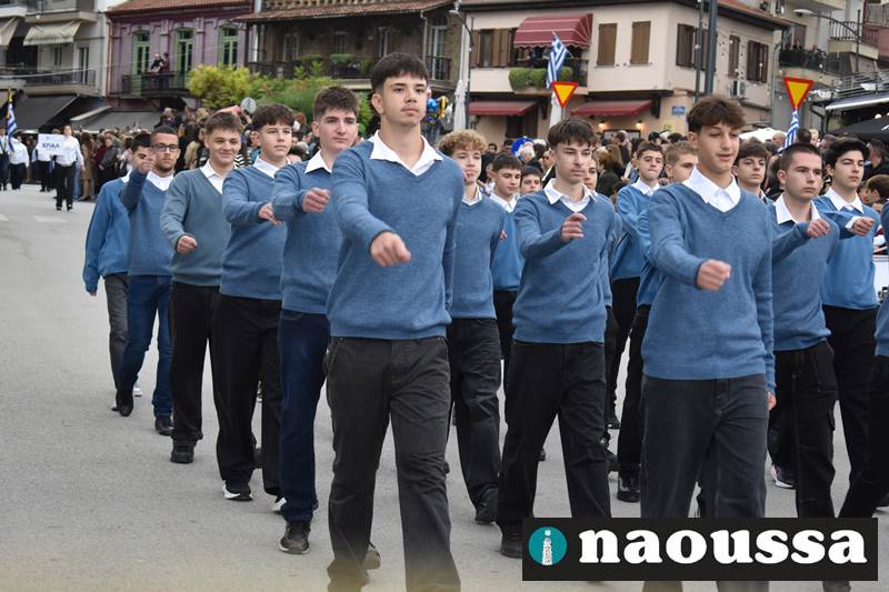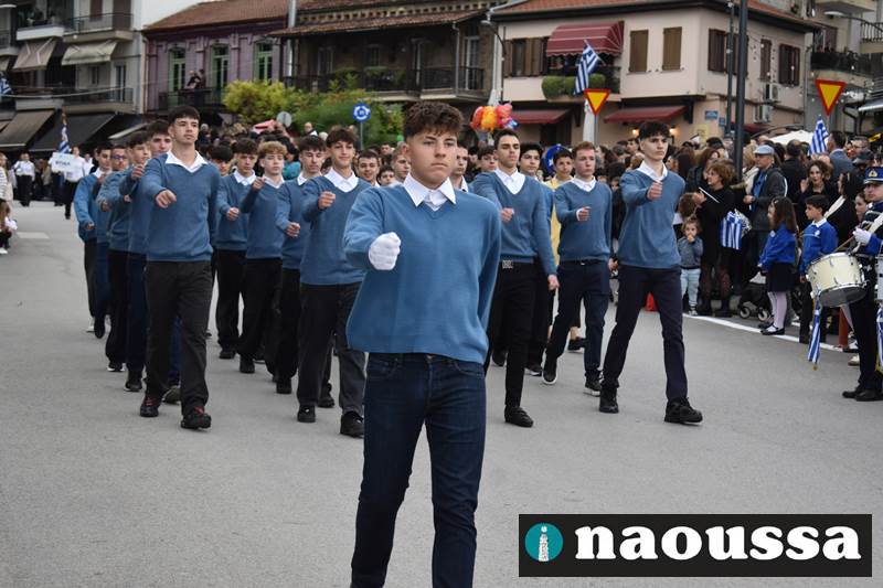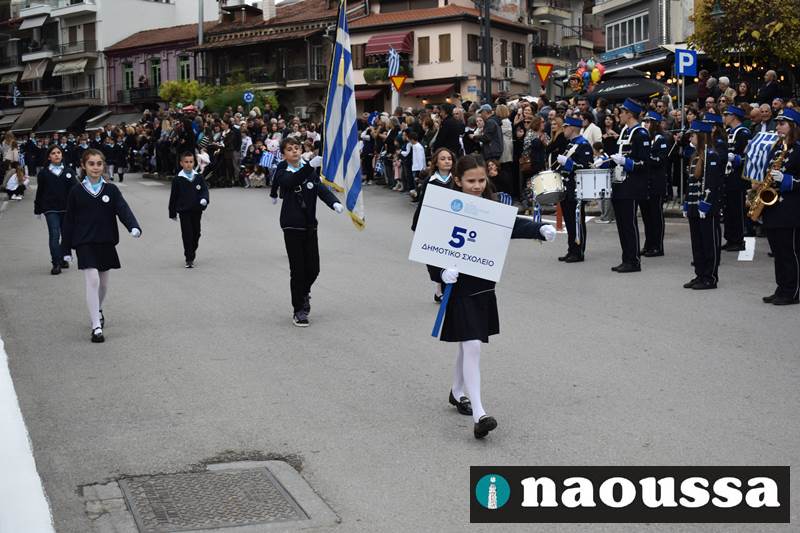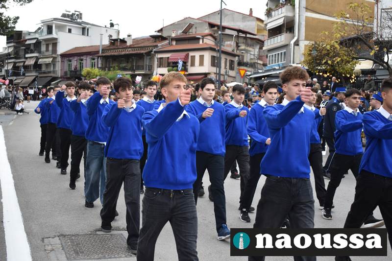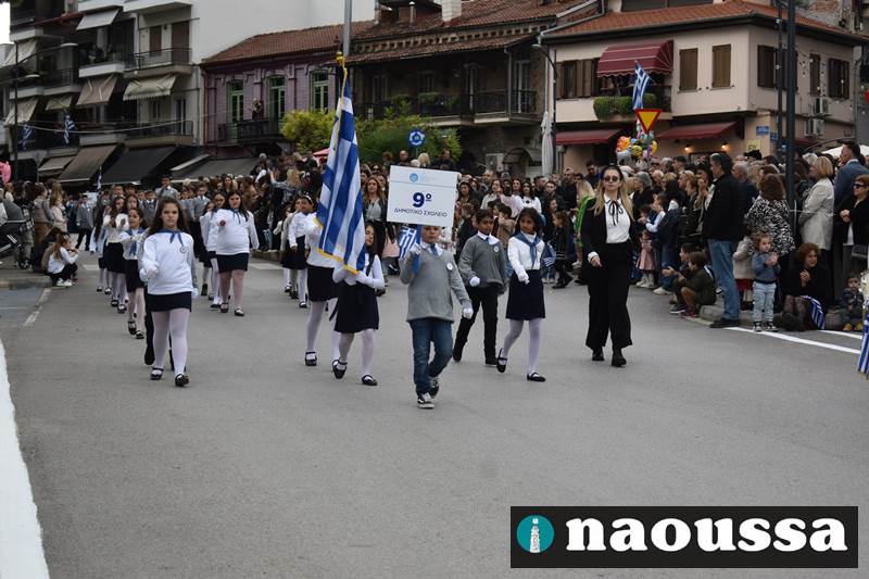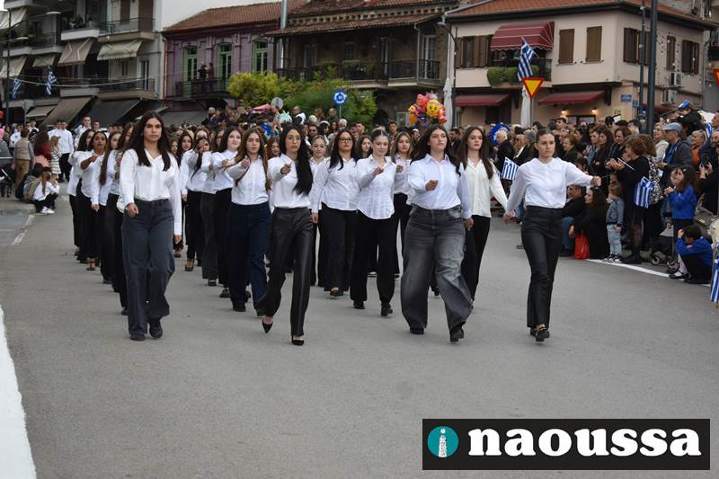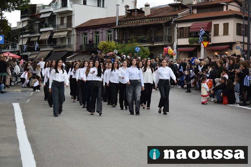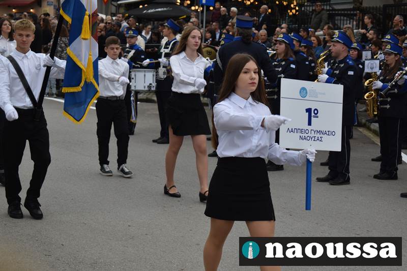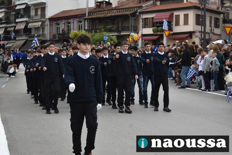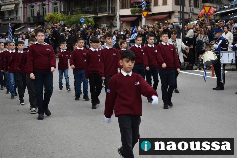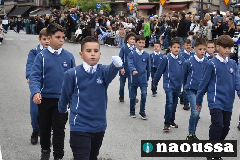 Μαθητές των δημοτικών, των γυμνασίων, των λυκείων αλλά και πολιτιστικοί σύλλογοι παρήλασαν καταχειροκροτούμενοι από τους κατοίκους της Νάουσας, τιμώντας τους ήρωες της 28ης Οκτωβρίου