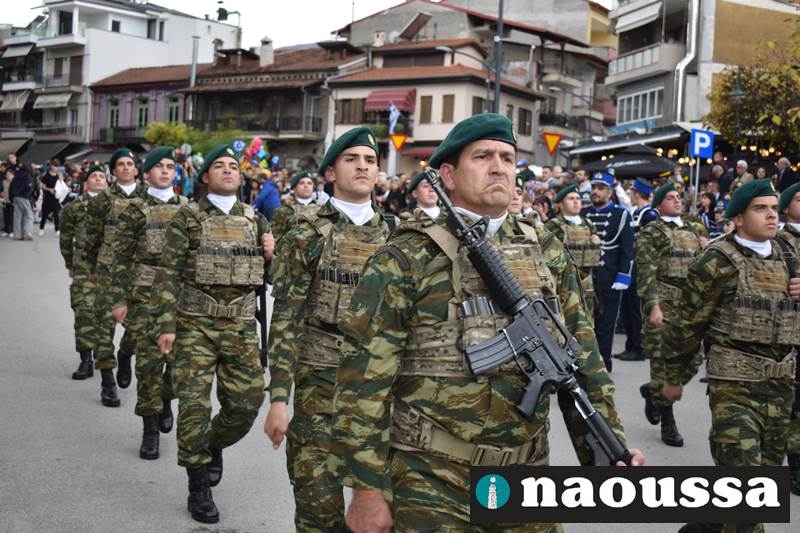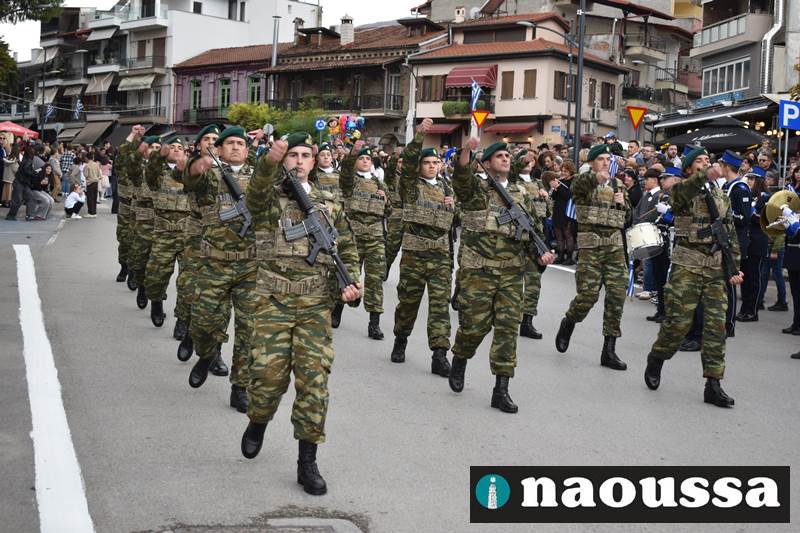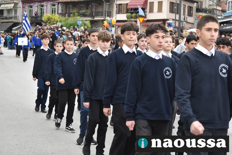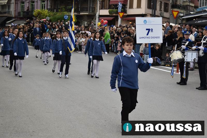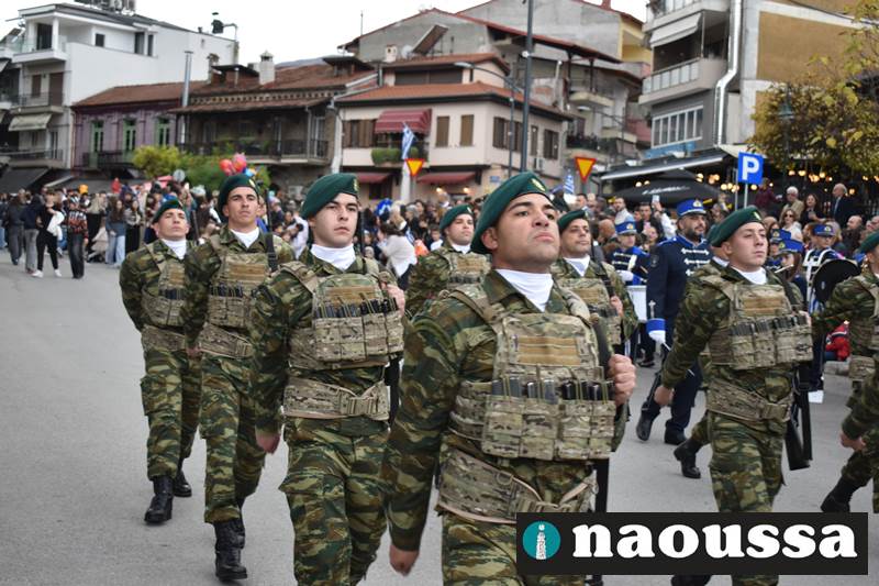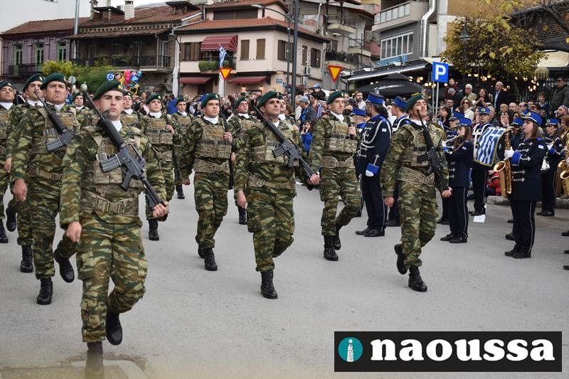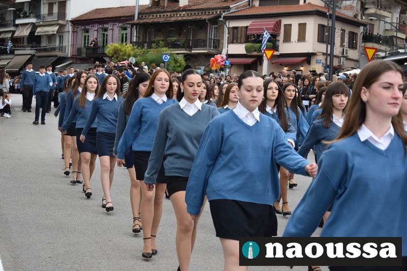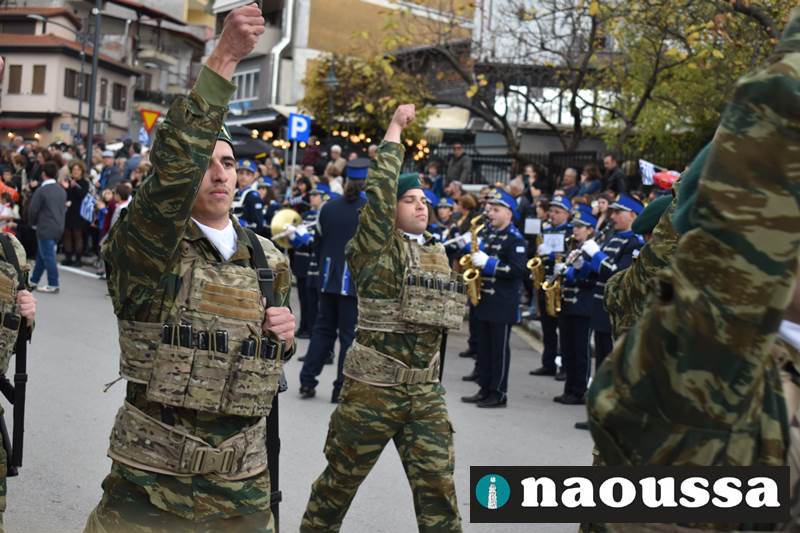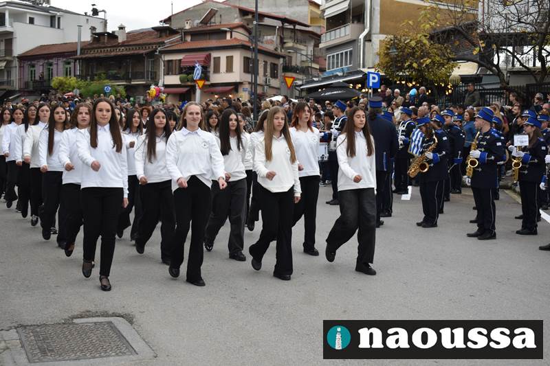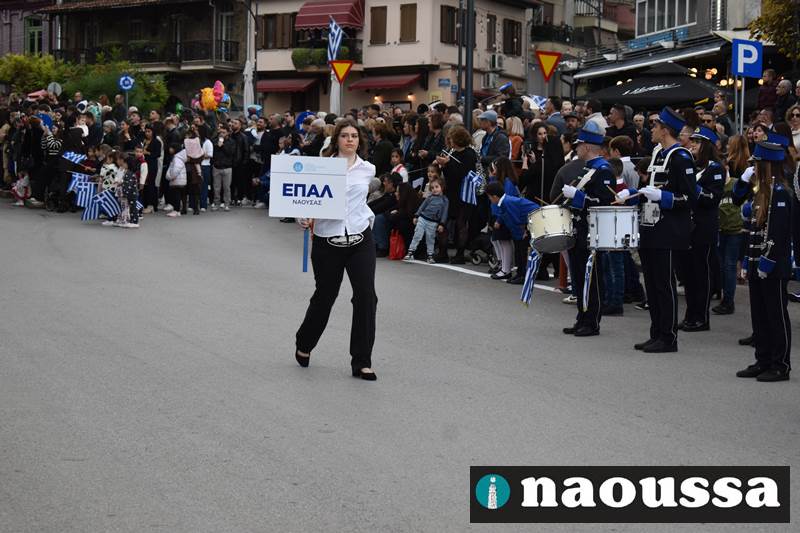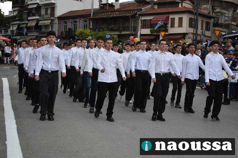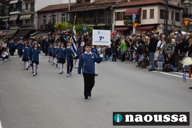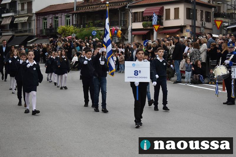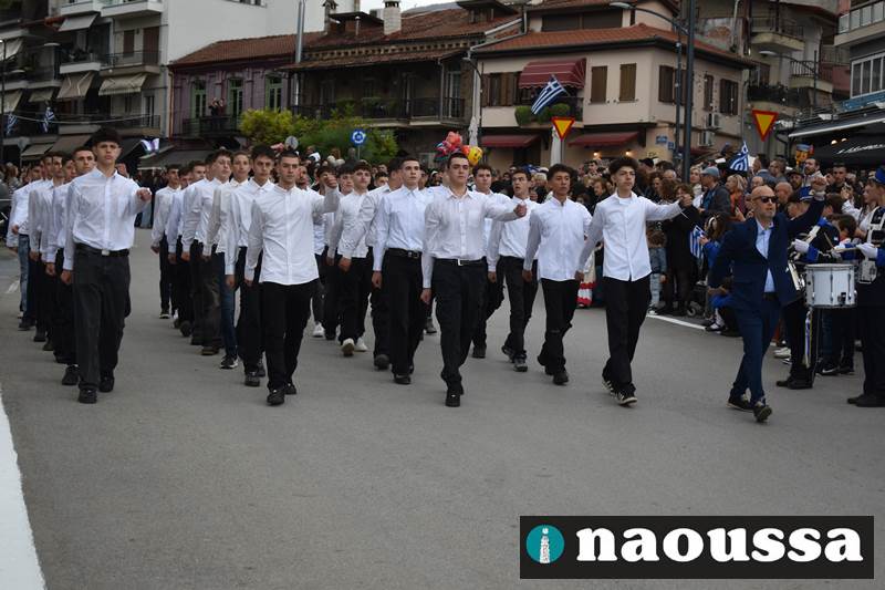 Μαθητές των δημοτικών, των γυμνασίων, των λυκείων αλλά και πολιτιστικοί σύλλογοι παρήλασαν καταχειροκροτούμενοι από τους κατοίκους της Νάουσας, τιμώντας τους ήρωες της 28ης Οκτωβρίου
