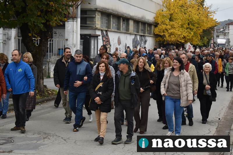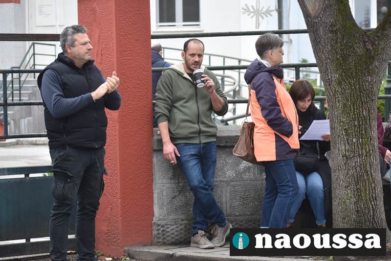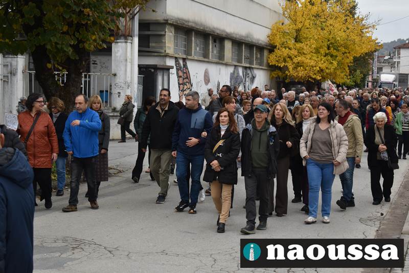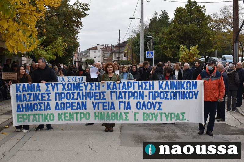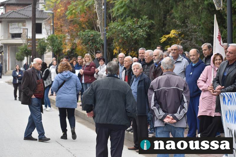 Χαιρετισμούς στην συγκέντρωση έκαναν ο κ. Γρηγόρης Τούπος εκ μέρους των συνταξιούχων ΙΚΑ Νάουσας, ο πρόεδρος των εργαζομένων στο νοσοκομείο Νάουσας κ. Λάζαρος Κυριακόπουλος, η κα. Λία Ναουμίδου-Τσίτση εκ μέρους των φίλων Νοσοκομείου Νάουσας, ο κ. Χρήστος Τσίτσης εκ μέρους της Κίνησης Πολιτών για την έξοδο από την απομόνωση του δήμου Νάουσας, ενώ την κεντρική ομιλία έκανε ο πρόεδρος του Εργατικού Κέντρου Ημαθίας κ. Νίκος Νατζμέ. Οι ομιλητές αναφέρθηκαν στην αναγκαιότητα της διοικητικής αυτοτέλειας του Νοσοκομείου Νάουσας, την ανάγκη για περεταίρω στελέχωση με γιατρούς και νοσηλευτικό προσωπικό και την στήριξη του νοσοκομείου. Ακολούθησε πορεία στους κεντρικούς δρόμου της Νάουσας, ενώ θα πραγματοποιηθεί νέο συλλαλητήριο το Σάββατο 15 Νοεμβρίου στην πλατεία Καρατάσου.