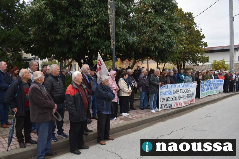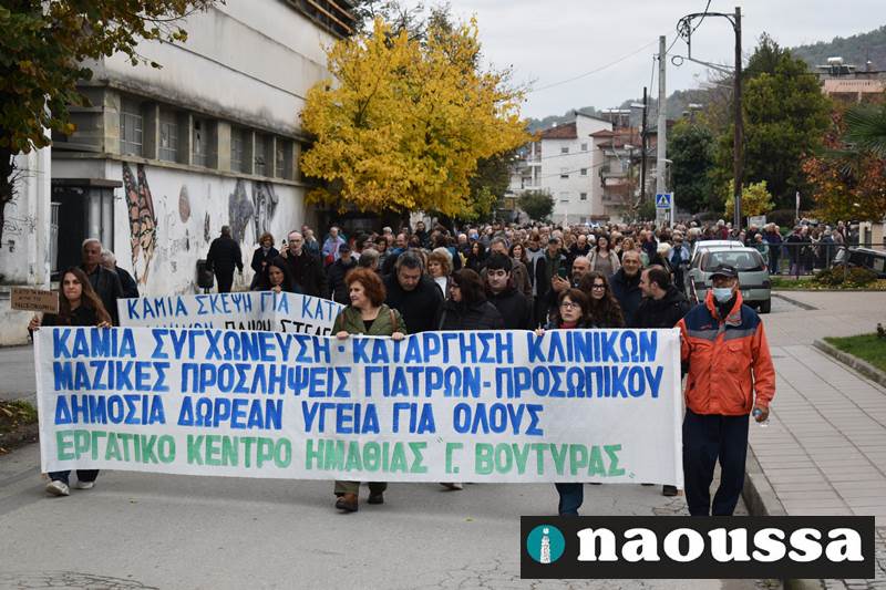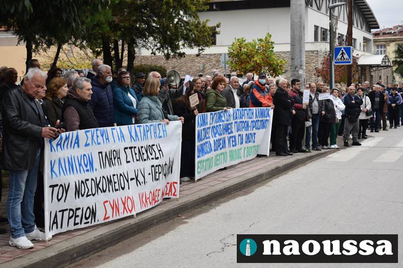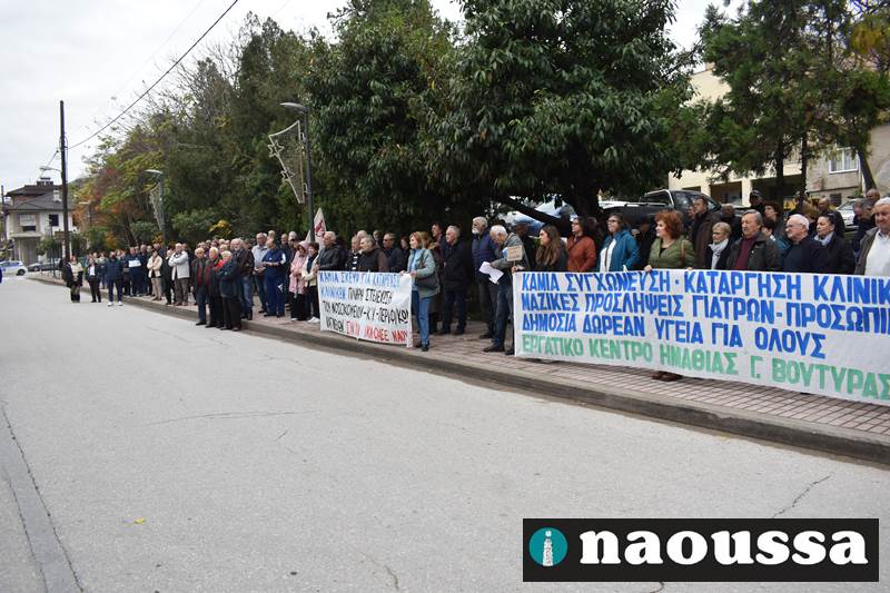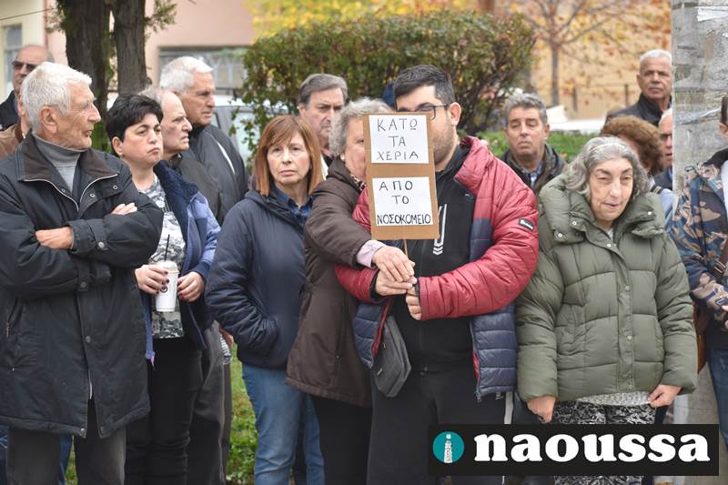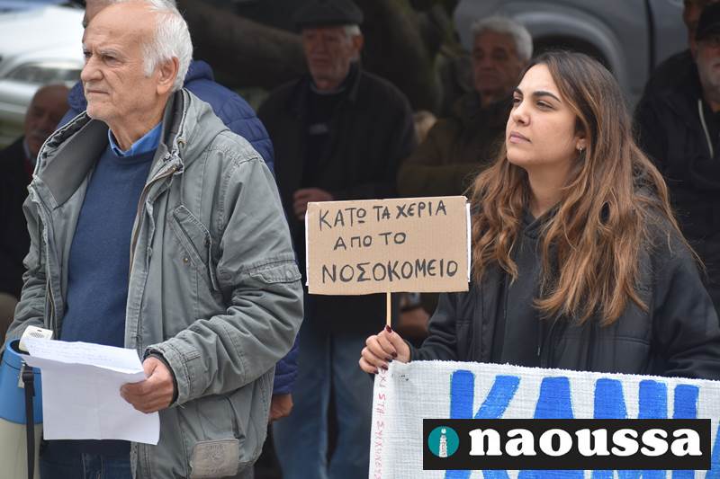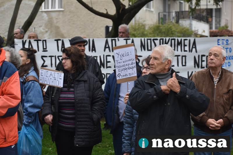 Μεγάλο συλλαλητήριο ενάντια στην συγχώνευση του Νοσοκομείου Νάουσας με το Νοσοκομείο Βέροιας πραγματοποιήθηκε το πρωί της Πέμπτης στην είσοδο του νοσοκομείου.