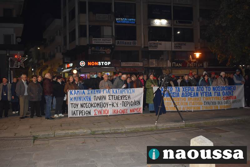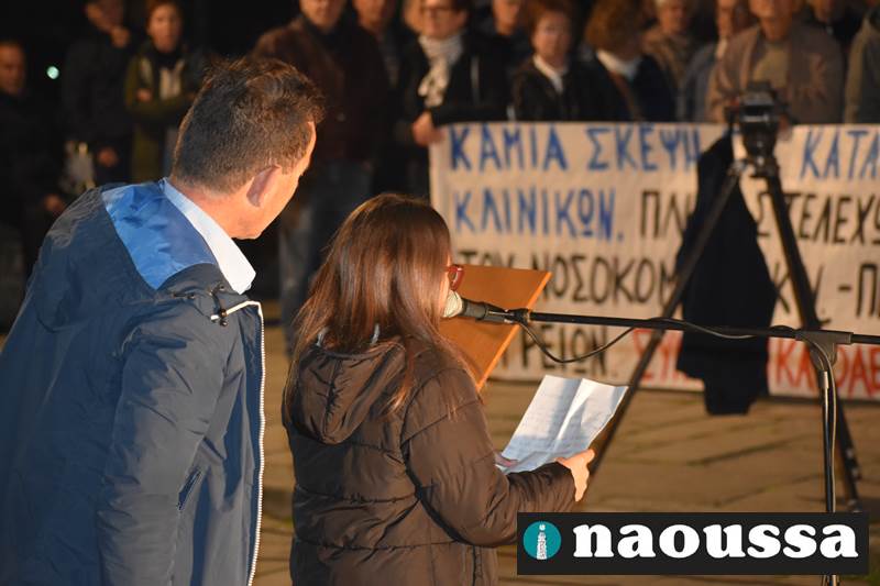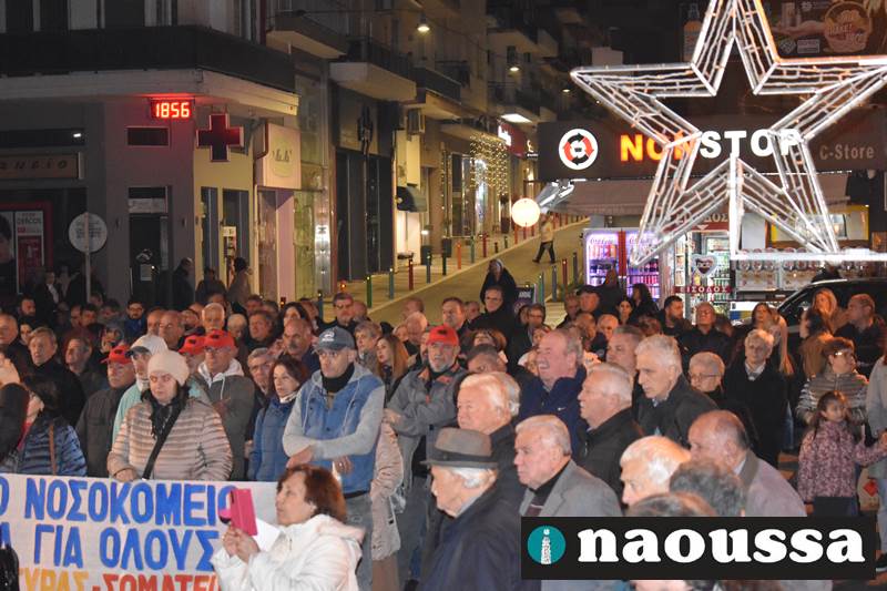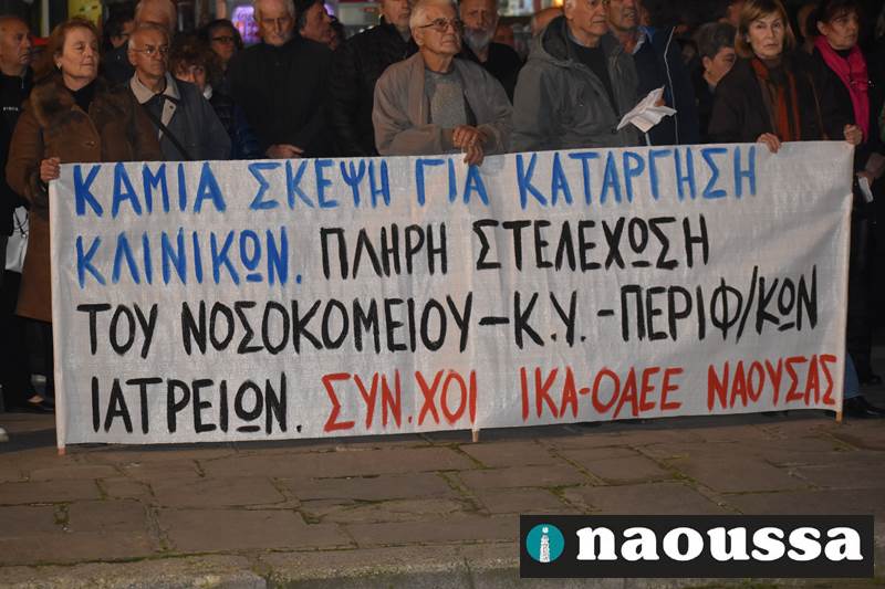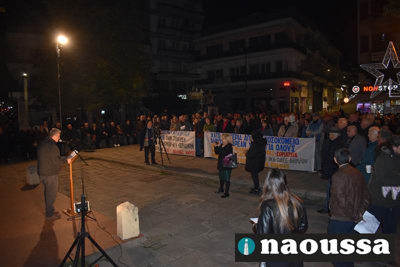 Με μεγάλη συμμετοχή κόσμου πραγματοποιήθηκε το απόγευμα του Σαββάτου το συλλαλητήριο για το νοσοκομείο Νάουσας στην πλατεία Καρατάσου.