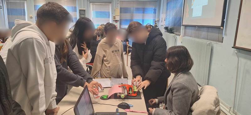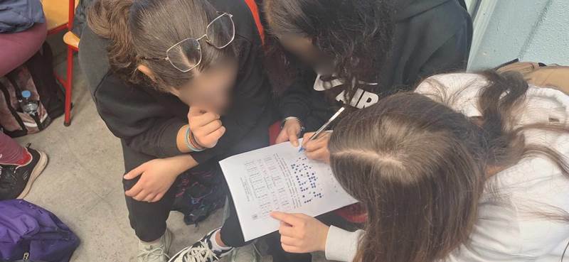 Ακολούθησε μια εξαιρετικά ζωντανή συνομιλία με την κα Ελένη Μάνου, άτομο με οπτική αναπηρία, κατά την οποία οι μαθητές της έθεσαν ερωτήματα σχετικά με εκπαιδευτικά και πρακτικά ζητήματα της καθημερινότητας, τεχνολογικά βοηθήματα, τρόπους μετακίνησης και προσωπικές εμπειρίες. Στη συνέχεια η κα Μάνου παρουσίασε τη γραφή Braille, εξηγώντας τη χρησιμότητα και τη σημασία της για τα άτομα με οπτική αναπηρία ως εργαλείο ισότιμης πρόσβασης στη γνώση. Μάλιστα οι μαθητές είχαν τη μοναδική ευκαιρία να γράψουν και οι ίδιοι σε γραφομηχανή Braille, βιώνοντας από κοντά την διαδικασία αποτύπωσης των ανάγλυφων χαρακτήρων.