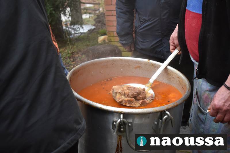 Οι συμμετέχοντες απόλαυσαν καζάνια με πεντανόστιμο στιφάδο και κ σούπα κοτόπουλου, όπως και κρασί και τσίπουρο που ετοίμασαν και πρόσφεραν τα μέλη της Κουρμπανικής Επιτροπής.