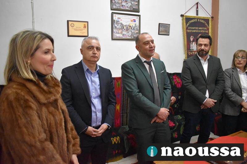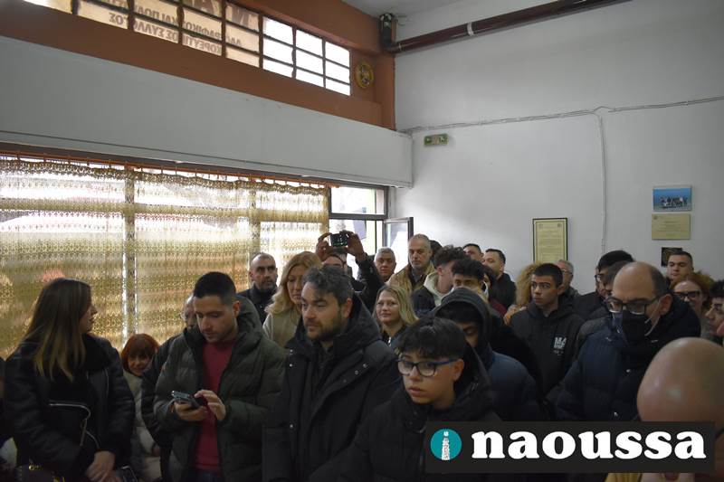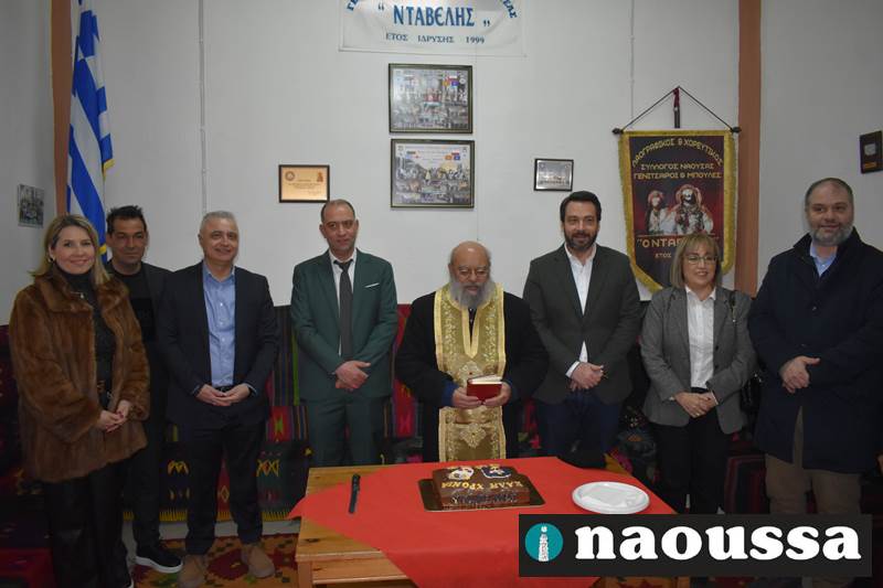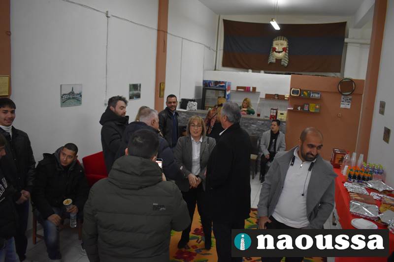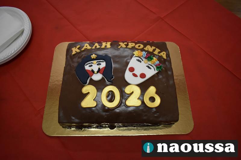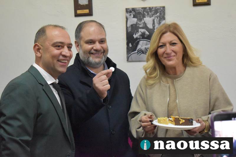Ακολούθησαν οι χαιρετισμοί των επισήμων και η κοπή της βασιλόπιτας που συνοδεύτηκε με κεράσματα και ευχές για καλή αποκριά. Το φλουρί της βασιλόπιτας ήταν στο κομμάτι του δημάρχου Νάουσας κ. Νίκου Κουτσογιάννη.