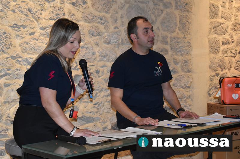 Την παρουσίαση της εκδήλωσης ανέλαβαν ο Νίκος Βαρούδης και η Μαρία Δανηλάτου, οι οποίοι αναφέρθηκαν στη μακρόχρονη πορεία του Συλλόγου, στις δράσεις των 14 χρόνων λειτουργίας του, καθώς και στη σταθερή προσφορά απινιδωτών σε σχολεία και χώρους συνάθροισης του Δήμου Νάουσας.