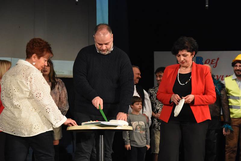 Στη συνέχεια, ο Δήμαρχος Ηρωικής Πόλεως Νάουσας κ. Νίκος Κουτσογιάννης έκοψε την καθιερωμένη βασιλόπιτα, απευθύνοντας ευχές για μια δημιουργική και χαρούμενη αποκριά, υπογραμμίζοντας τη σημασία της διατήρησης και ανάδειξης των παραδοσιακών εθίμων της Νάουσας, που αποτελούν αναπόσπαστο κομμάτι της πολιτιστικής της ταυτότητας.