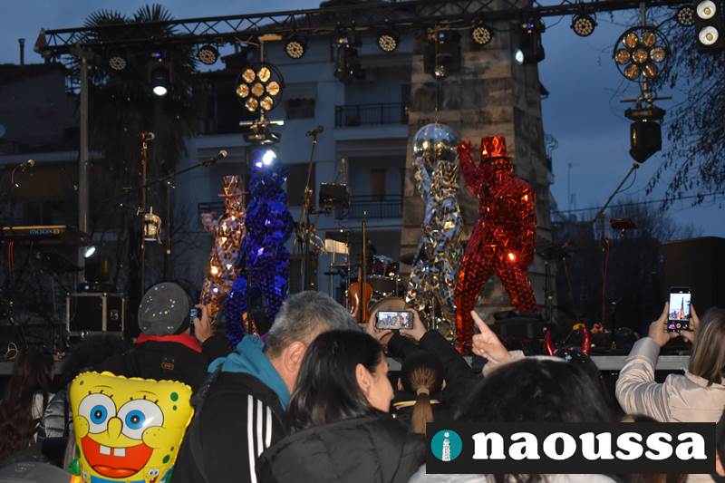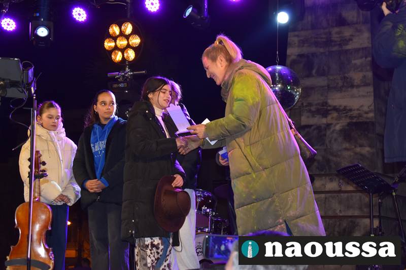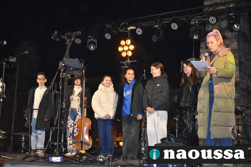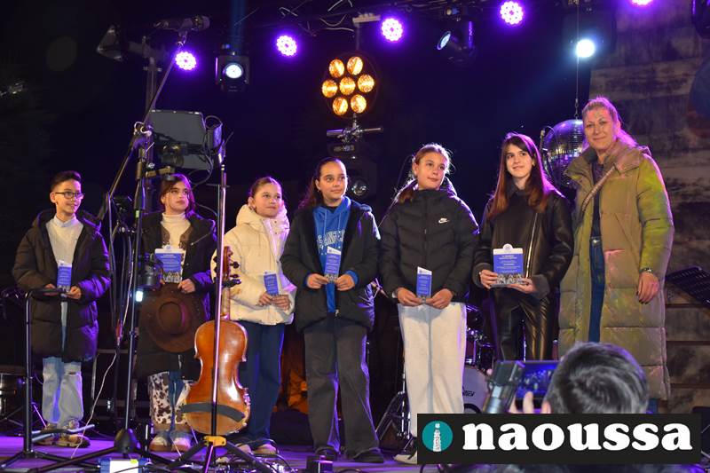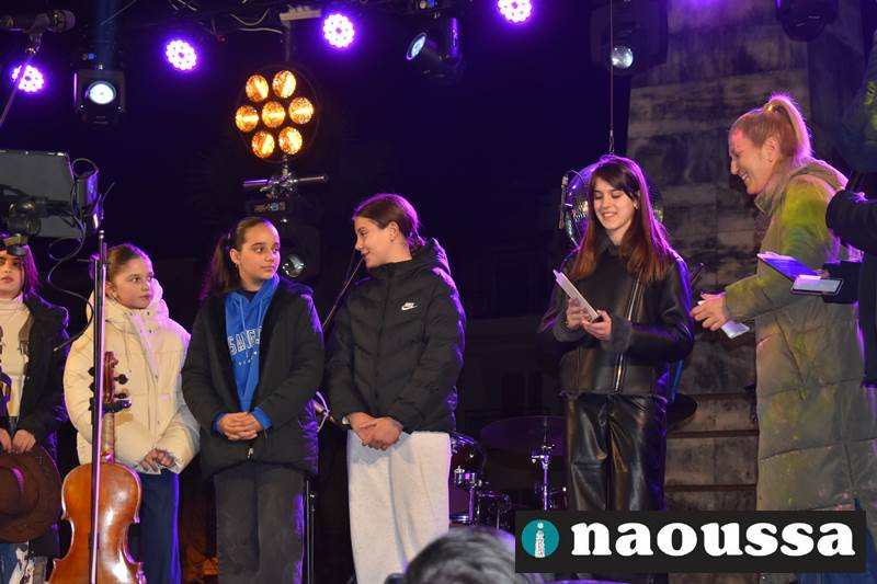 Πριν από την έναρξη της συναυλίας πραγματοποιήθηκαν οι απονομές των βραβείων του μαθητικού εικαστικού διαγωνισμού «Γίνε νονός της Αποκριάς 2026», με τη συμμετοχή μαθητών που απέδειξαν μέσα από τη φαντασία και τη δημιουργικότητά τους ότι η Αποκριά της Νάουσας είχε παρόν και μέλλον.