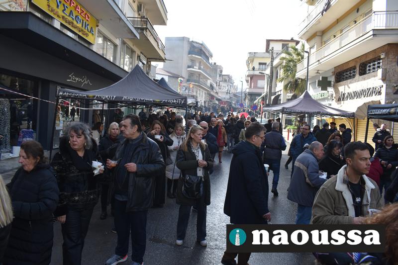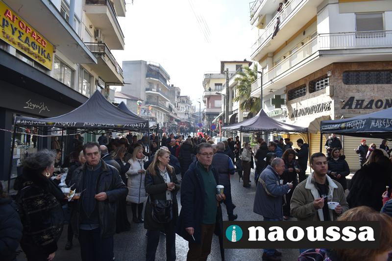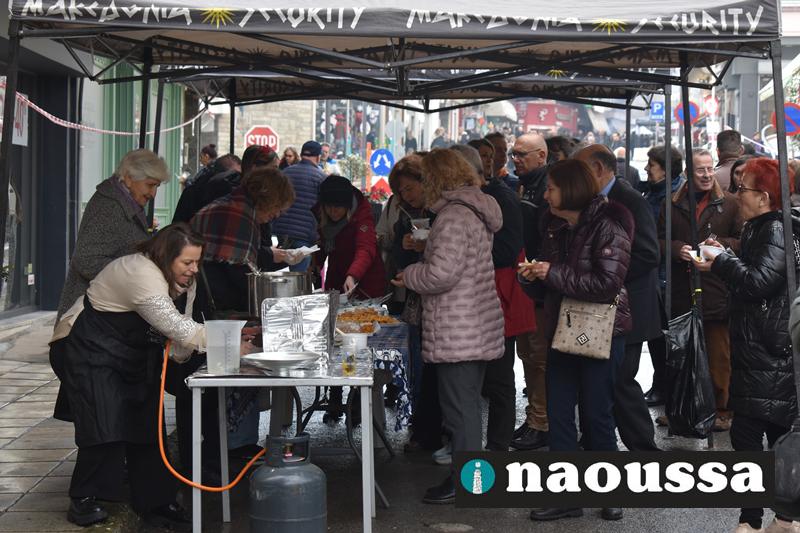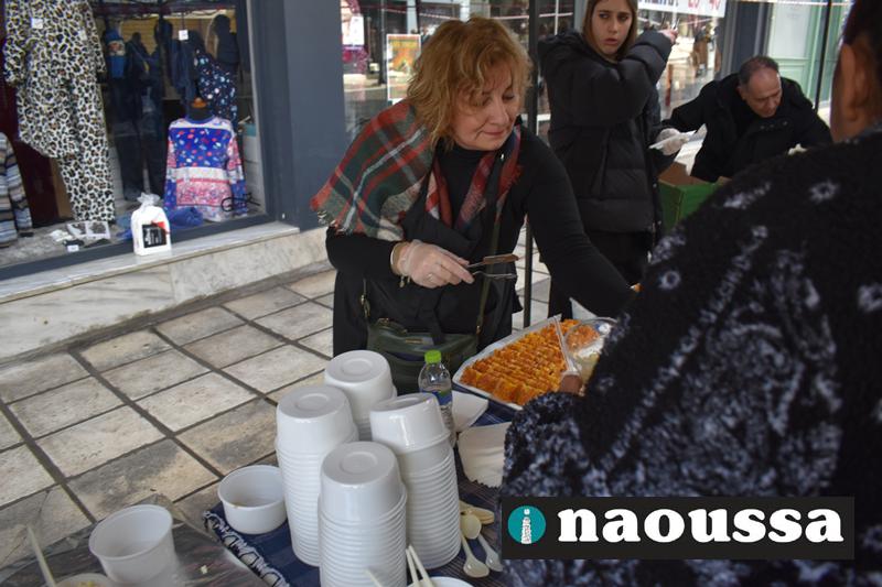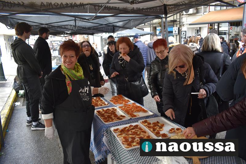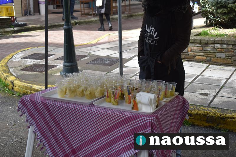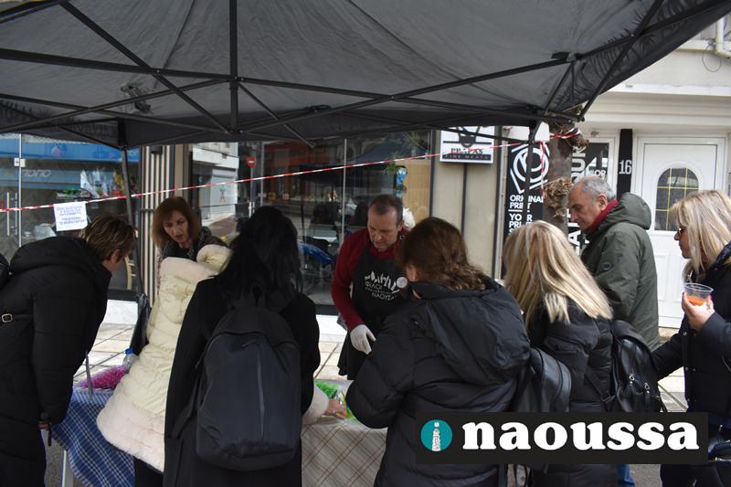 Τα μέλη των φίλων Καρναβαλιού με πολύ αγάπη και μεράκι ετοίμασαν παραδοσιακά εδέσματα της Νάουσας και της περιοχής ώστε να γνωρίσουν οι επισκέπτες την φιλοξενία αλλά και τις γεύσεις του τόπου.