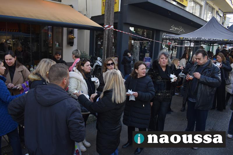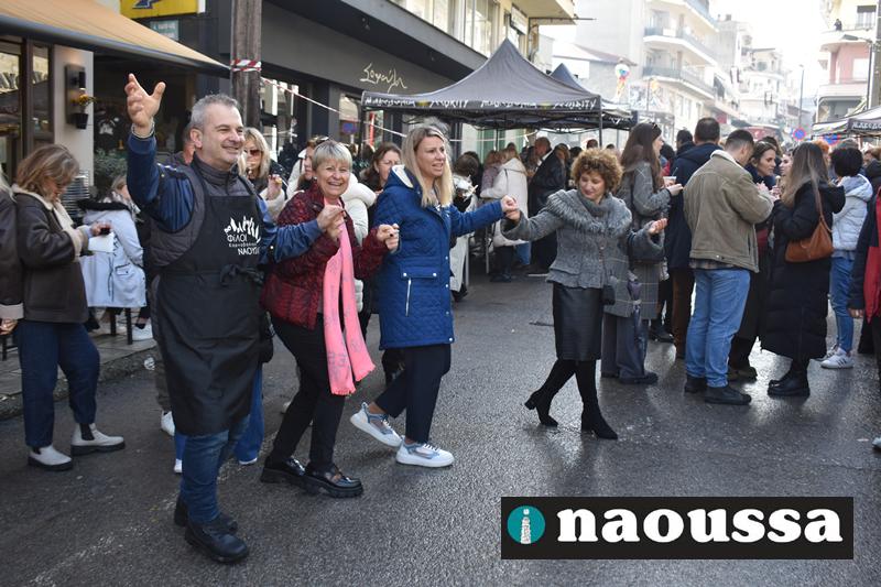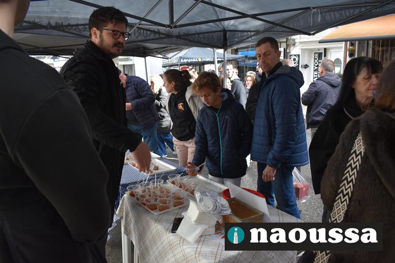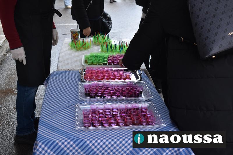 Με τοπικά εδέσματα, ξινόμαυρο κρασί και τσίπουρο υποδέχτηκαν τους επισκέπτες της Νάουσας οι Φίλοι του Καρναβαλιού το πρωί της Κυριακής.