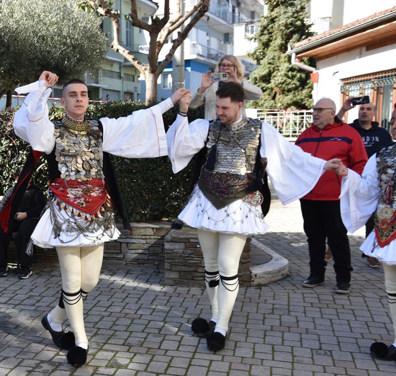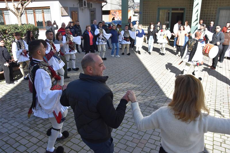 Στο πλαίσιο της επίσκεψης, οι χορευτές δέχθηκαν τα καθιερωμένα παραδοσιακά κεράσματα και τσίπουρο, ενώ ακολούθησε χορός στον χώρο του Δημαρχείου, μέσα σε κλίμα σεβασμού στην παράδοση, συγκίνησης και γιορτινής διάθεσης.