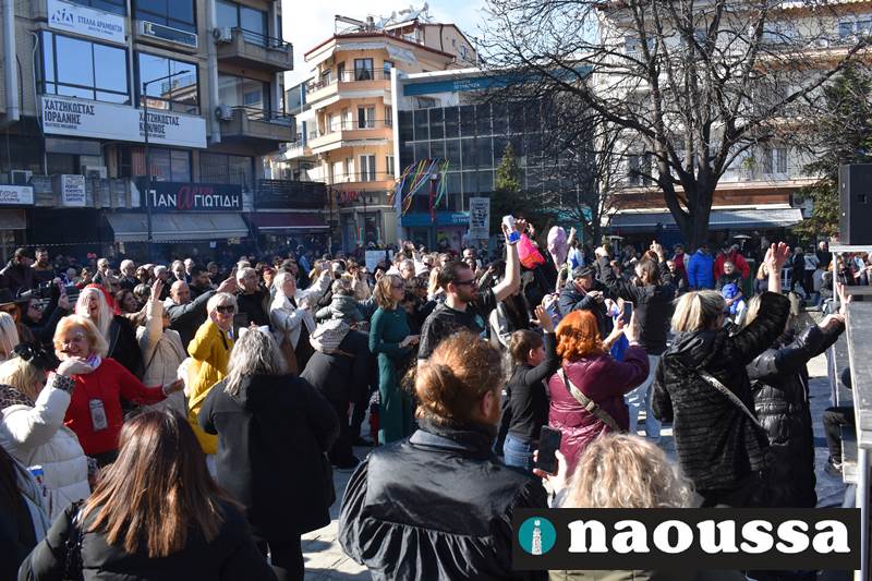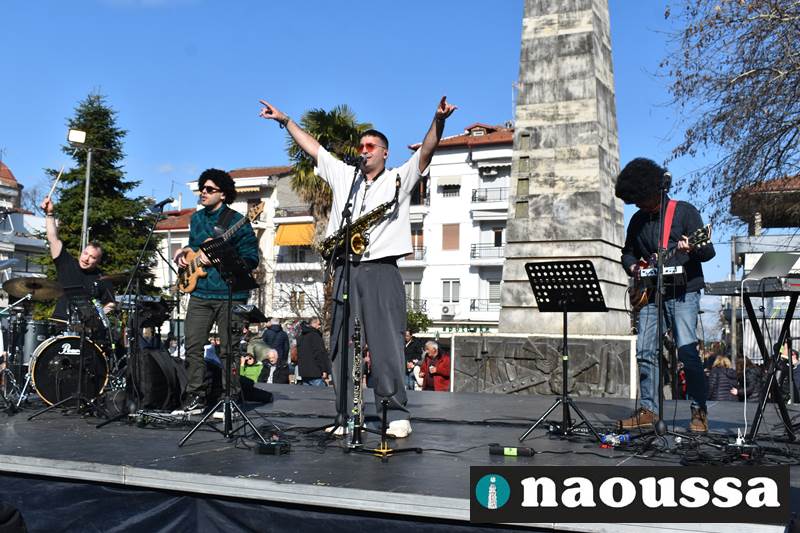 Ο κόσμος από θαύμασε το δρώμενο στο δημαρχείο ξεχύθηκε στους δρόμους της Νάουσας όπου ο δήμος και τα καταστήματα φρόντισαν να του χαρίσουν μοναδικές στιγμές διασκέδασης. Στην πλατεία Καρατάσου η MaCho Band με παραδοσιακά ακούσματα στην σύγχρονη εκδοχή τους ξεσήκωσε τον κόσμο που χόρεψε, απολαμβάνοντας την παραμονή του, στη Νάουσα.
