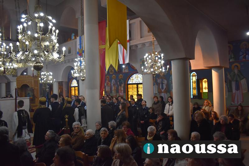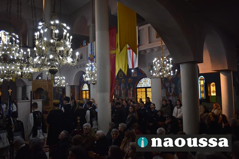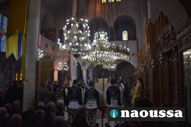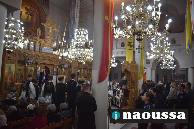 Παρουσία πλήθος κόσμου τελέσθηκε η Πανηγυρική Αρχιερατική Θεία Λειτουργία, προεξάρχοντος του Σεβασμιωτάτου Μητροπολίτου μας κ. Παντελεήμονος το πρωί της Κυριακής στον Ιερό Ναό Αγίου Δημητρίου Ναούσης.