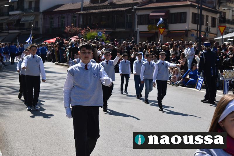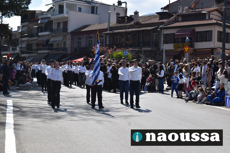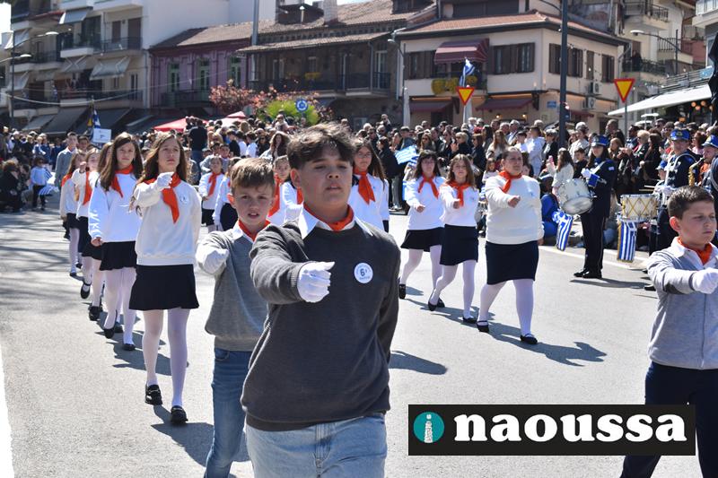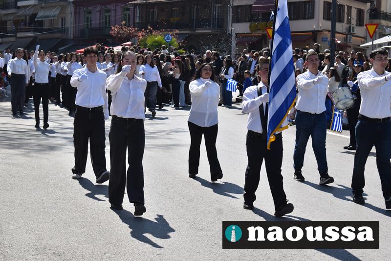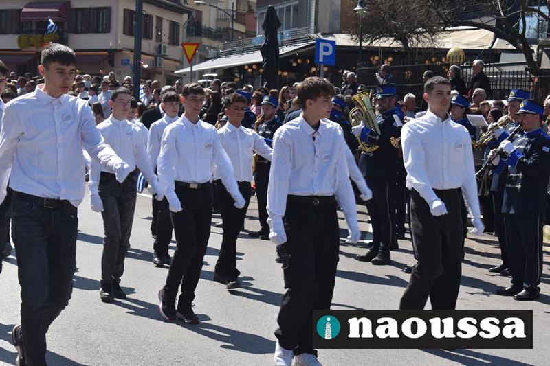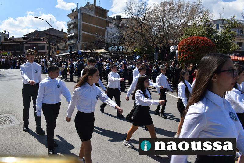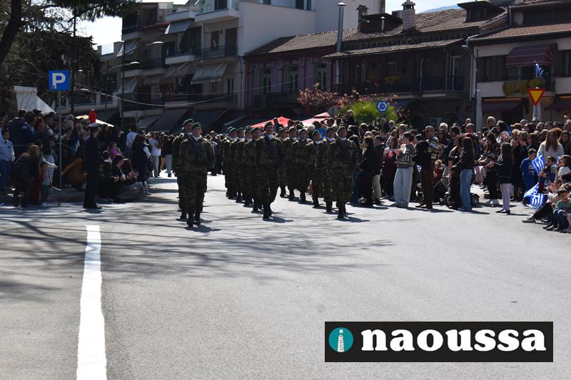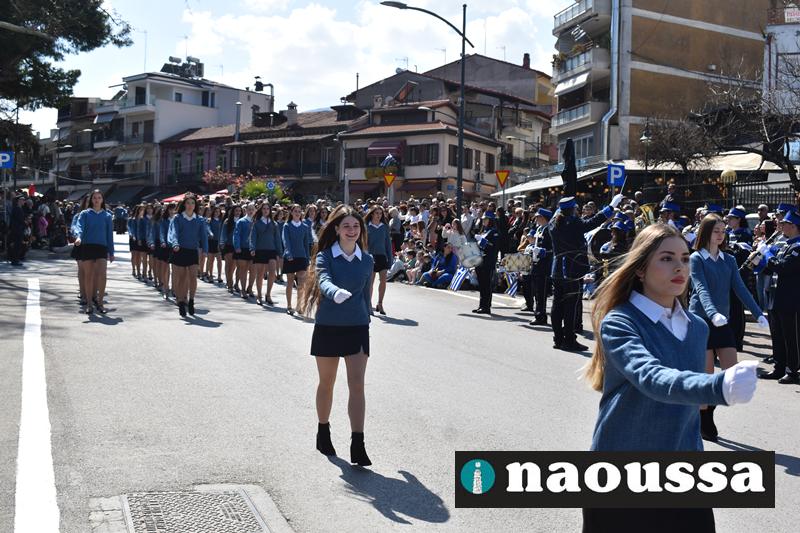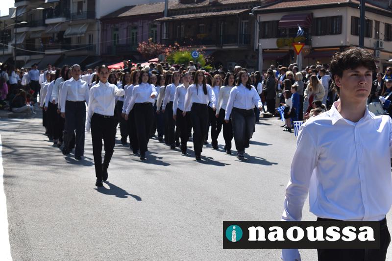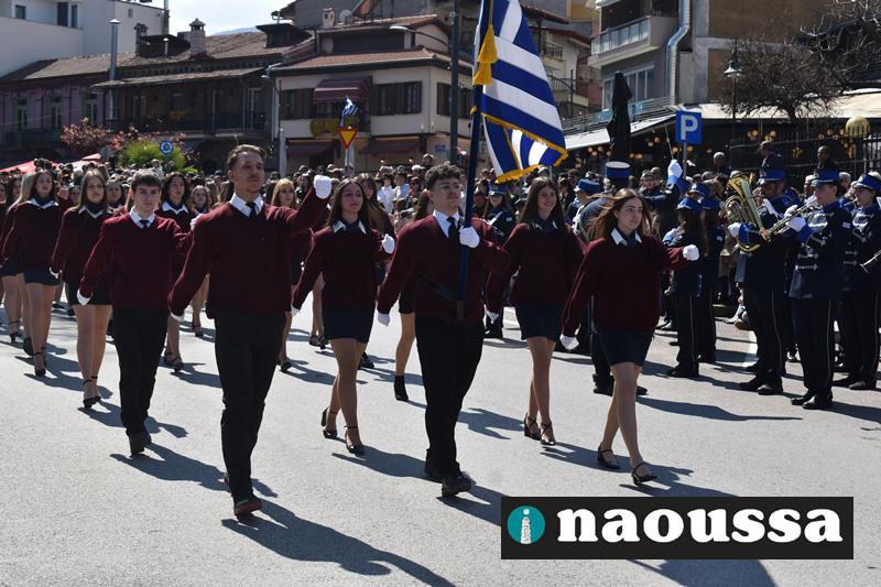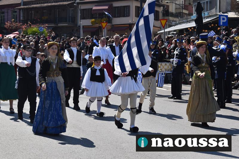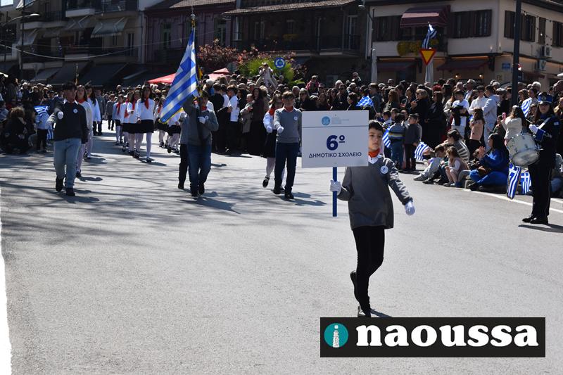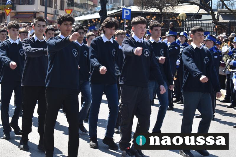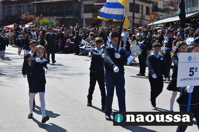 Τα μέλη των πολιτιστικών, οι μαθητές των σχολείων, οι σπουδαστές της σχολής Αστυφυλάκων και άνδρες της Β΄Μοίρας Καταδρομών παρήλασαν καταχειροκροτούμενοι από τους κατοίκους της Νάουσας.