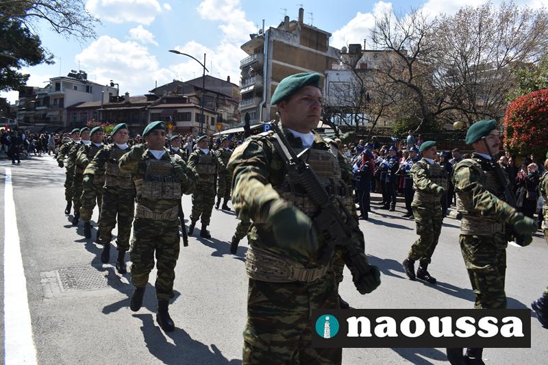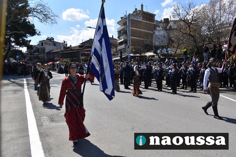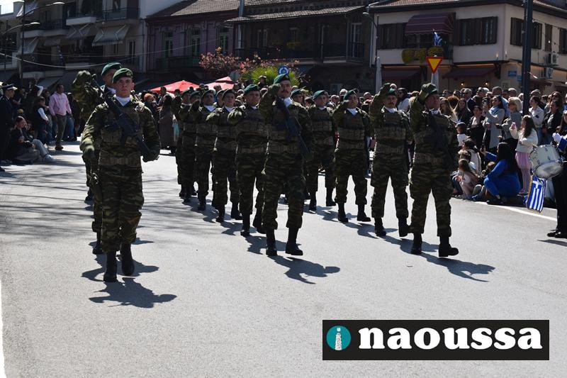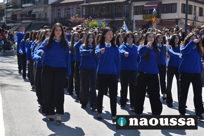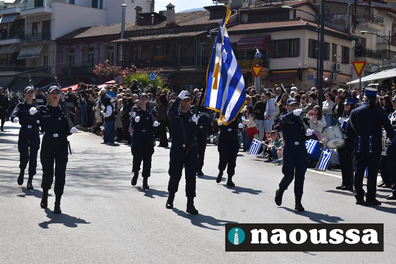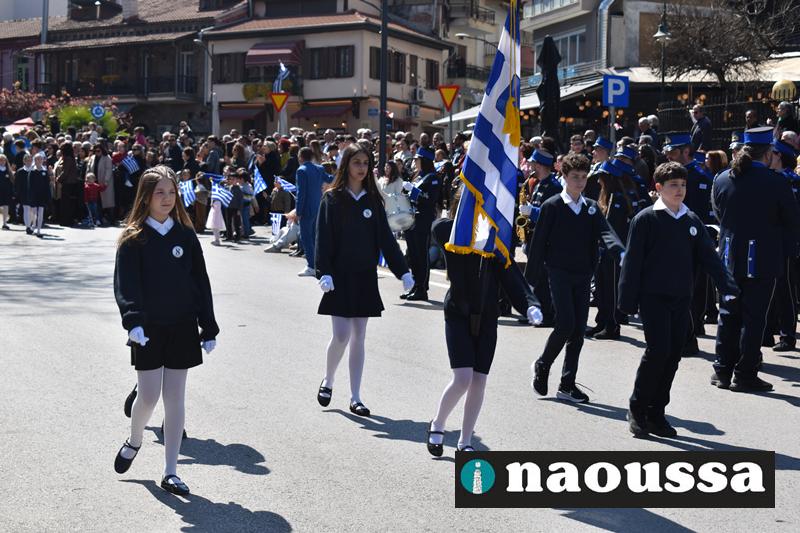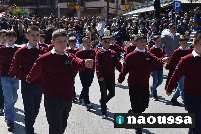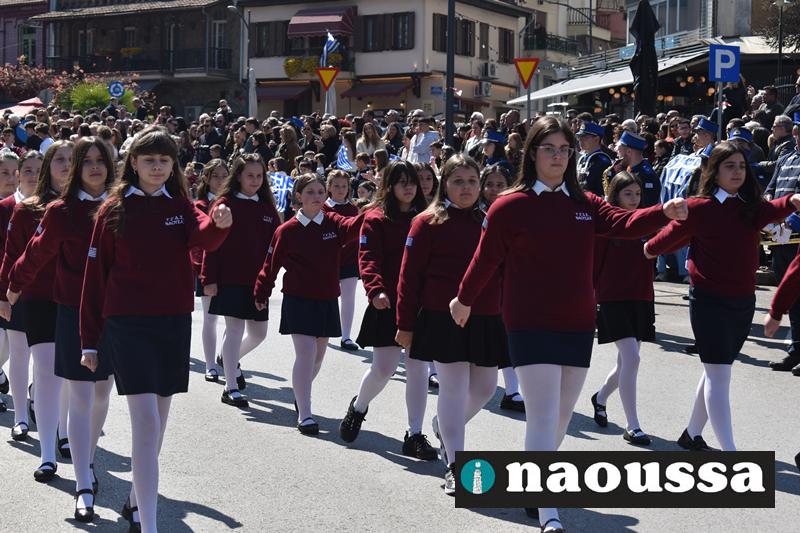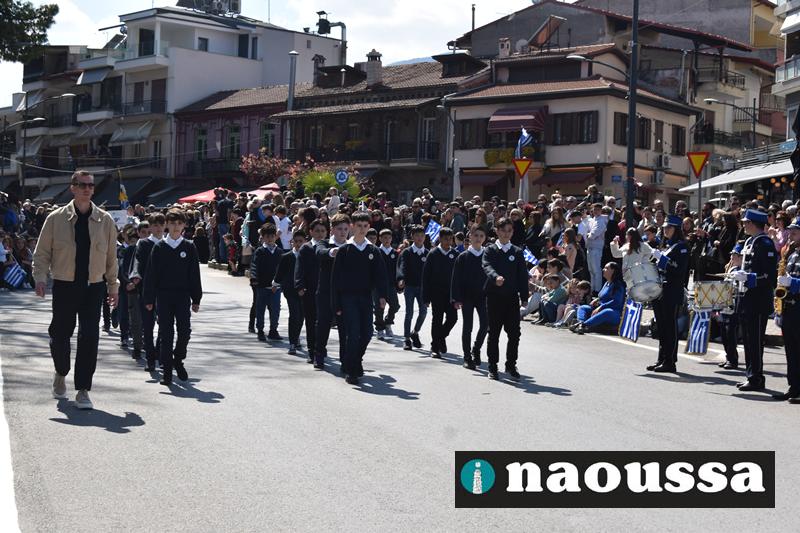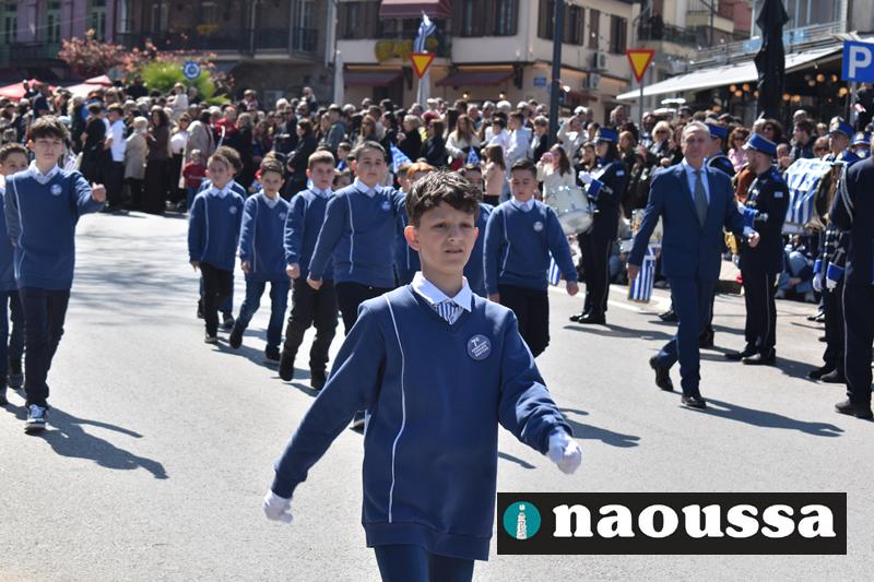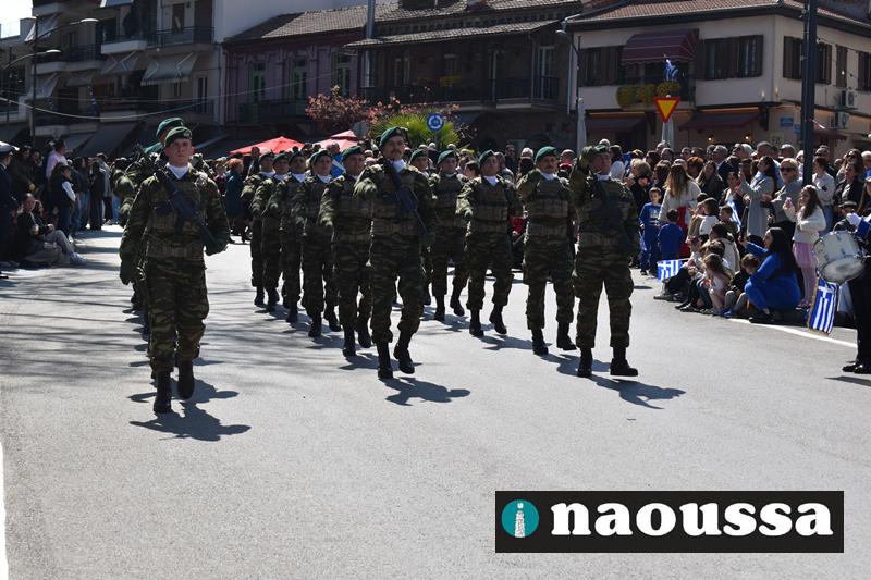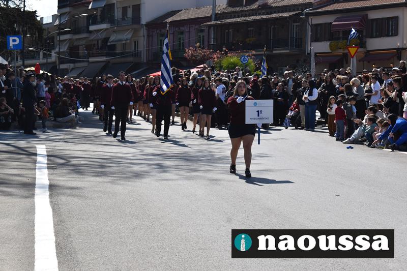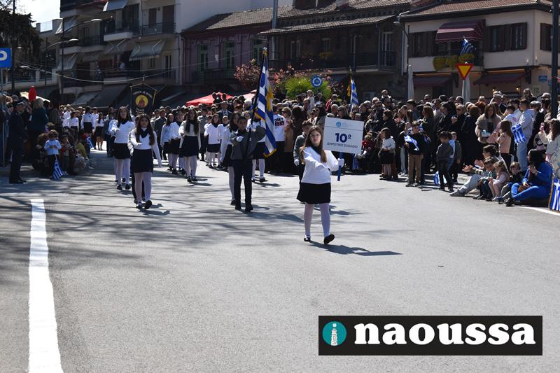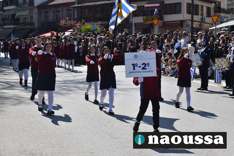 Τα μέλη των πολιτιστικών, οι μαθητές των σχολείων, οι σπουδαστές της σχολής Αστυφυλάκων και άνδρες της Β΄Μοίρας Καταδρομών παρήλασαν καταχειροκροτούμενοι από τους κατοίκους της Νάουσας.