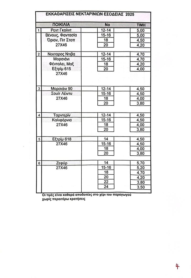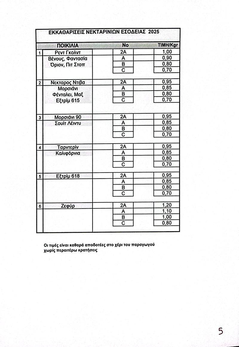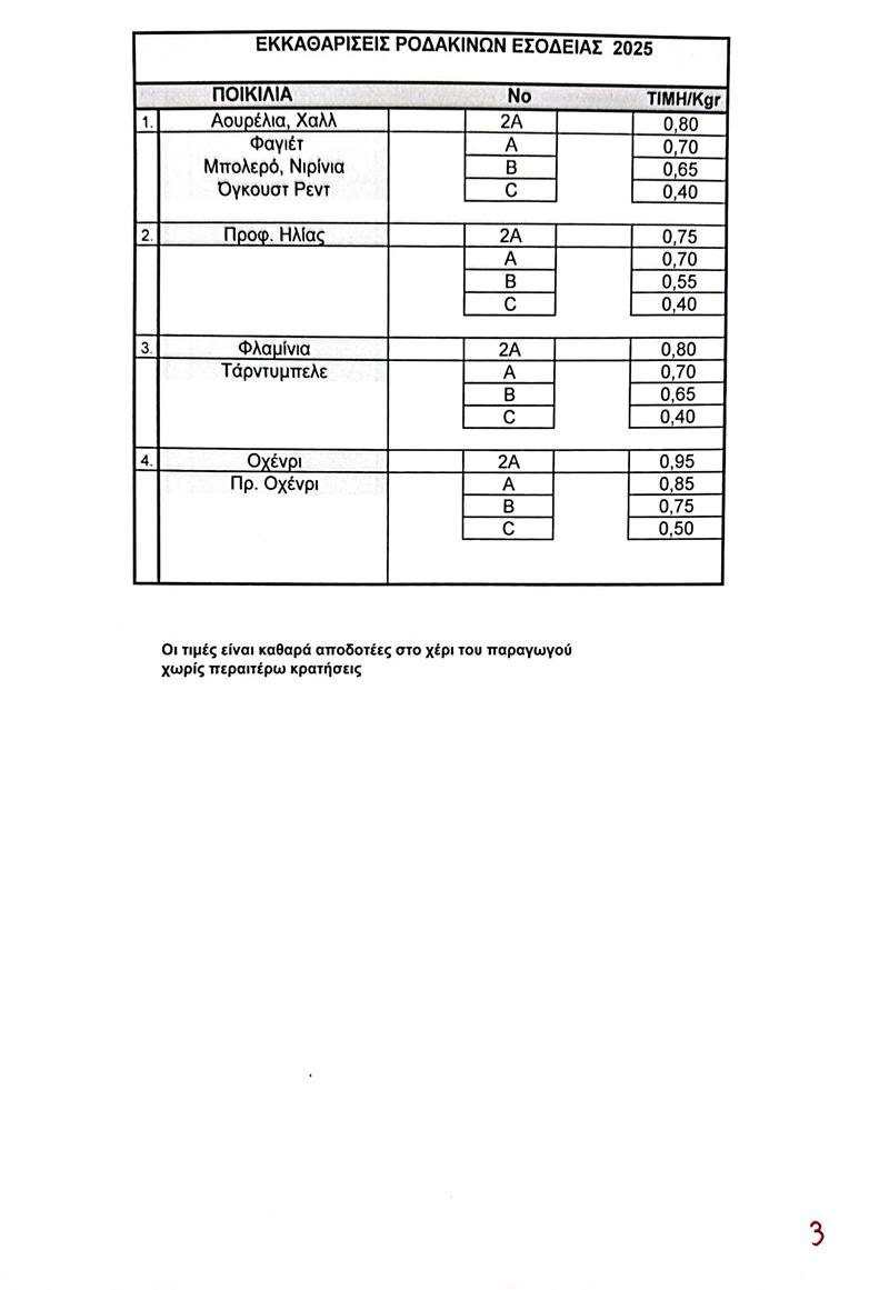 O Αγροτικός Συνεταιρισμός Νάουσας ανακοίνωσε τις εξής τιμές:
