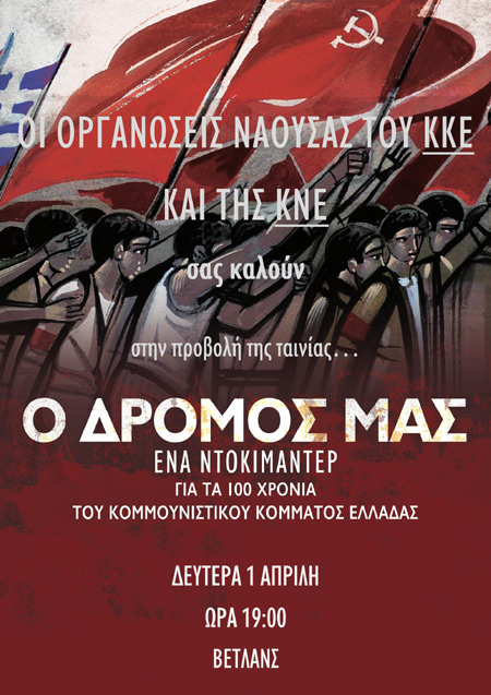 Οι Κομματικές Οργανώσεις Νάουσας του ΚΚΕ και της ΚΝΕ σας προσκαλούν στην προβολή του ντοκιμαντέρ «Ο δρόμος μας».