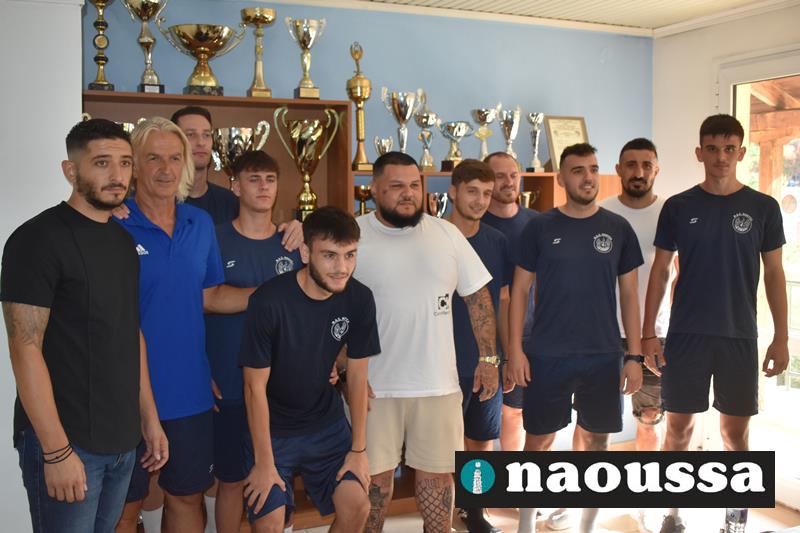 Οι νέοι αθλητές της ομάδας φωτογραφήθηκαν με τον κ. Αντώνη Αργυράκη που θα είναι μετά της εκλογές της Παρασκευής ο νέος πρόεδρος της ομάδας, έχοντας πλάι του τόσο δικούς του συνεργάτες όσο και μέλη της παλιάς διοίκησης της Νάουσας. Τα νέα αποκτήματα της ομάδας είναι οι: Κώστας Κυριακίδης, Δημήτρης Ασλαμπάλογλου, Δημήτρης Μεληκιώτης, Τάσος Καραγιάννης, Γιώργος Τσιάμπας, Τάσος Αδαμίδης, Δημήτρης Σαρακατσιάνος, Θανάσης Φωτόπουλος.