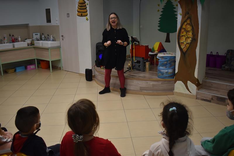Οι εορταστικές εκδηλώσεις του ΚΔΑΠ Bee Happy συνεχίστηκαν το πρωί της Τετάρτης με την Δήμητρα Μητρέντζη να ζωντανεύει τον μαγικό κόσμο του παραμυθιού στα παιδιά. Μουσική, παιχνίδι, χορός και παραμύθι έγιναν ένα, χάρη στην ταλαντούχα κα. Μητρέντζη.