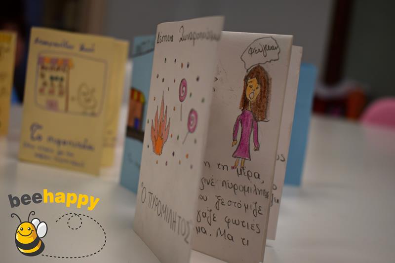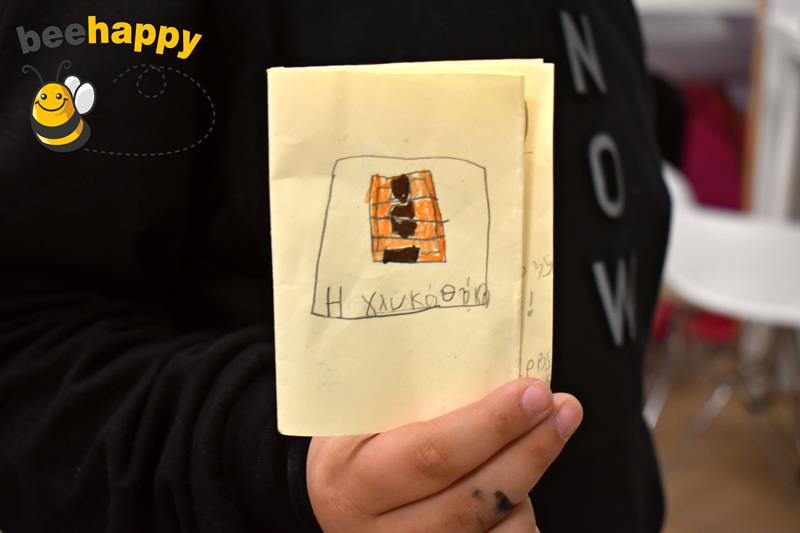 Υπεύθυνη του εργαστηρίου δημιουργικής γραφής η κα. Κική Σταυριανίδου μαζί με τις υπεύθυνες παιδαγωγούς του Κέντρου Δημιουργικής Απασχόλησης Παιδιών (ΚΔΑΠ) Bee Happy και τα παιδιά δημιούργησαν τα δικά τους μικρά βιβλία.