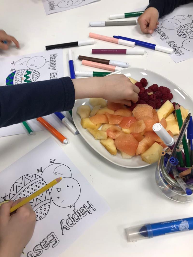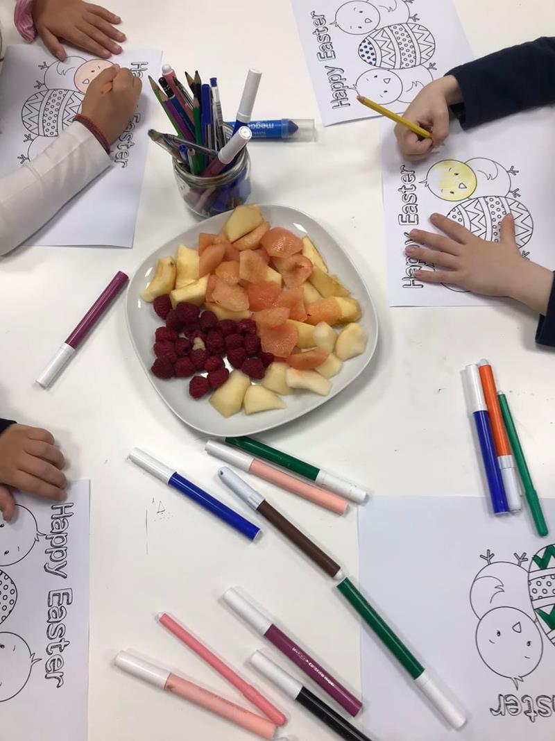 Στα πλαίσια της ενημέρωσης τα παιδιά απόλαυσαν φρούτα εποχής που ετοίμασαν για αυτά οι εκπαιδευτικοί του ΚΔΑΠ Bee Happy.